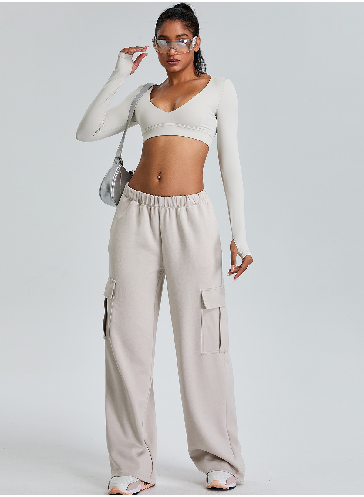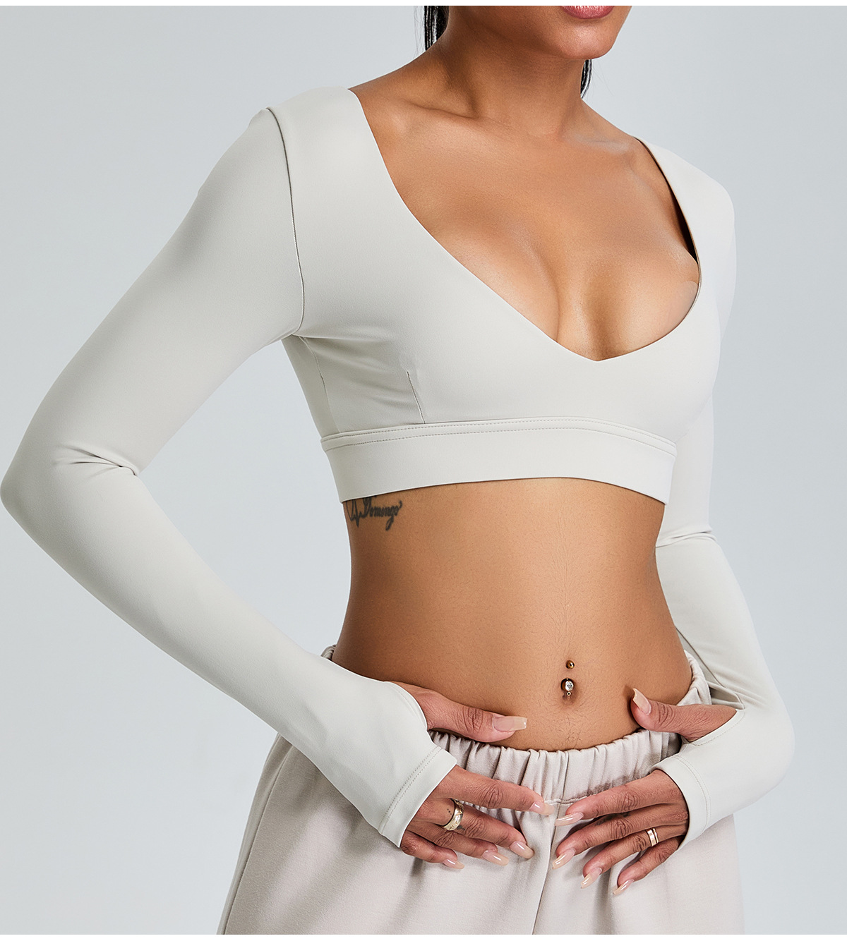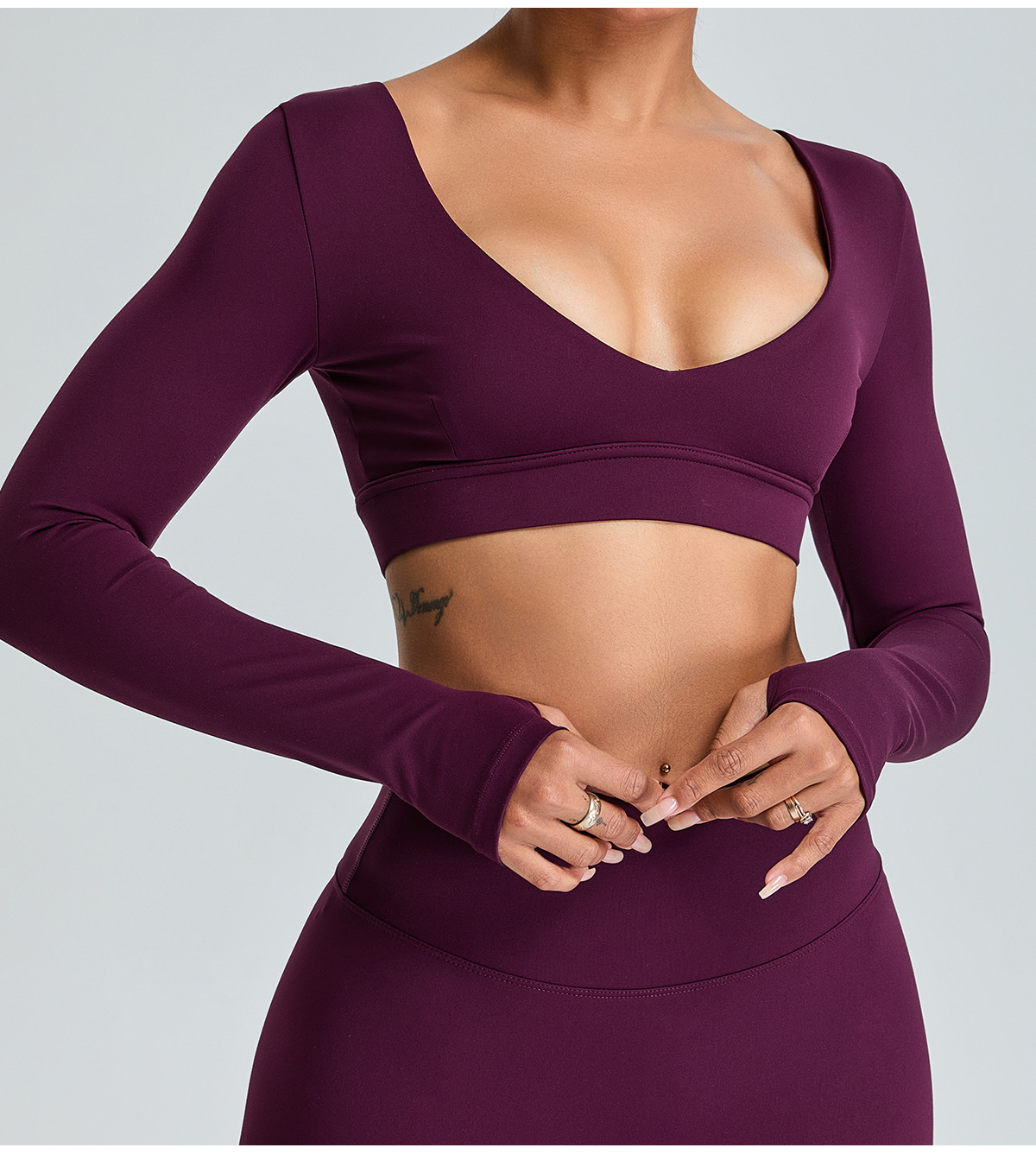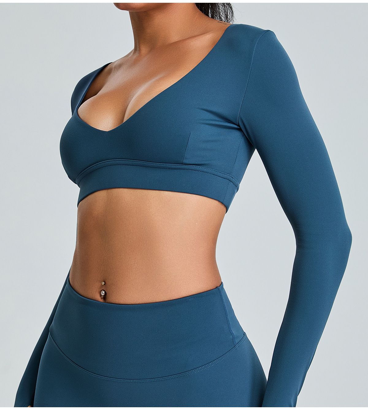 국경 간 새로운 순수 V 넥 요가 탑 여성용 슬림 핏 짧은 긴팔 티셔츠 야외 빠른 건조 꽉 끼는 피트니스 옷