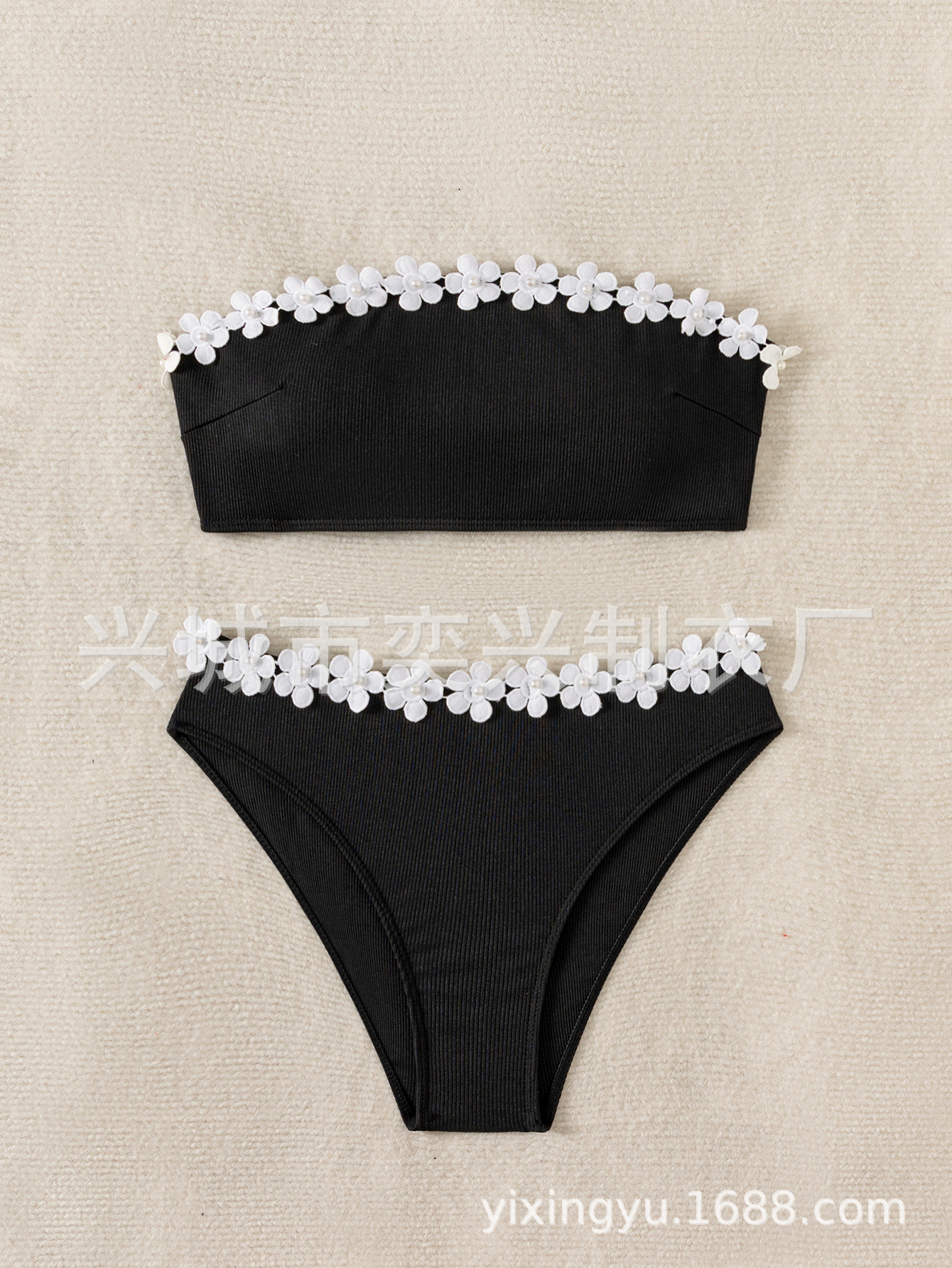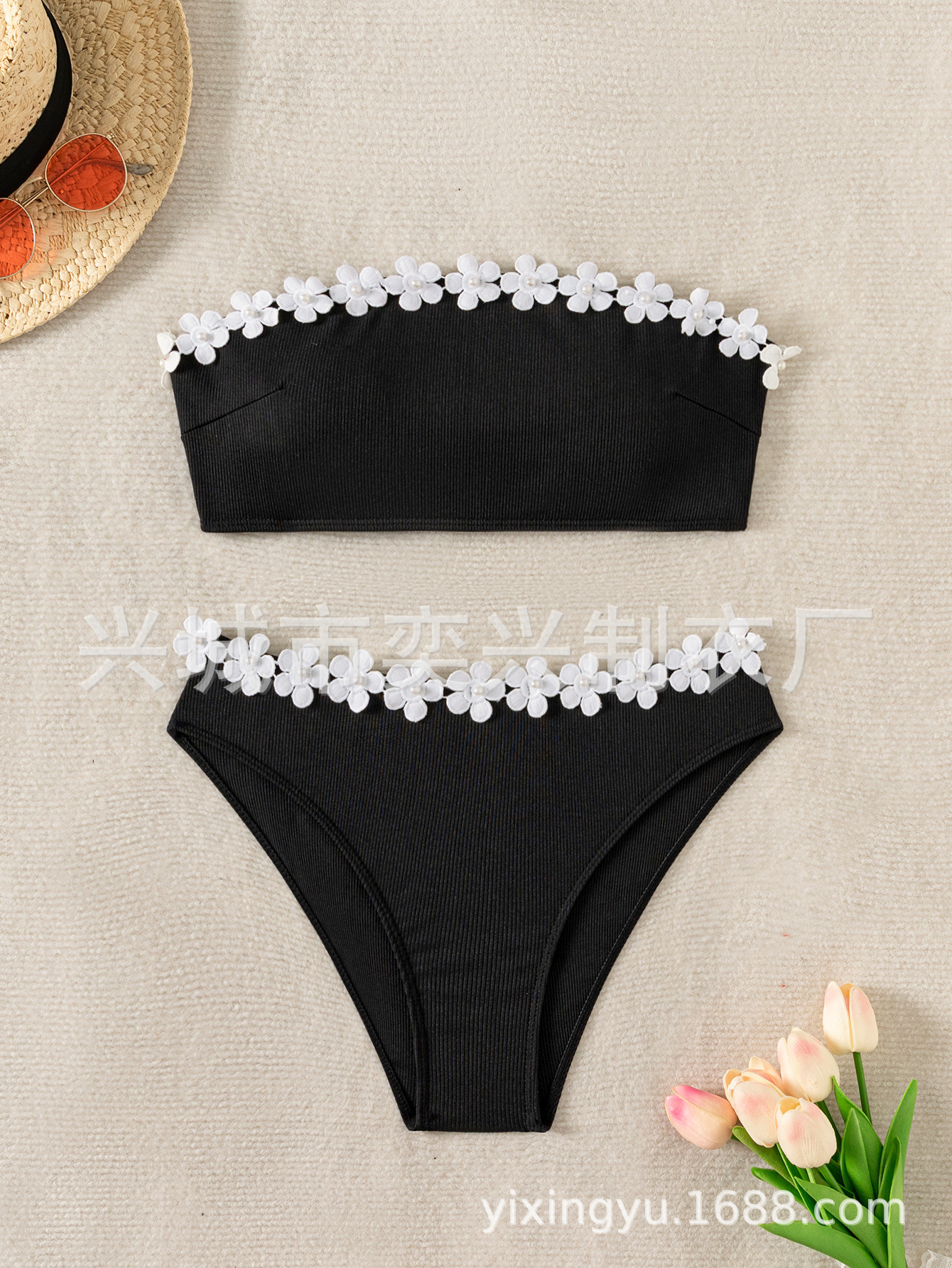 2025 새로운 유럽과 미국의 수영복 여성 AliExpress 단색 꽃 비키니 섹시한 자수 삼각형 수영복 도매스토어 가기