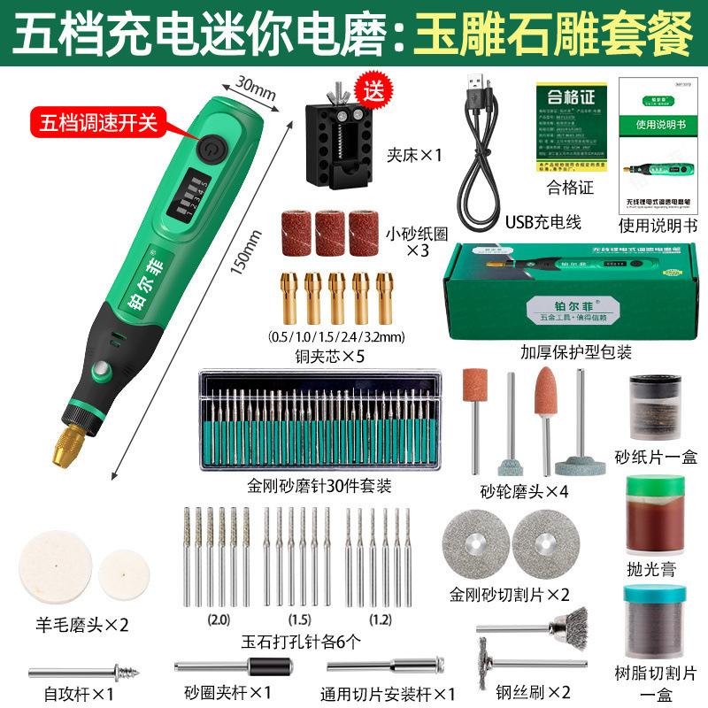 • 충전식 모델 [5단 속도 조절] 옥 조각 및 돌 조각 패키지