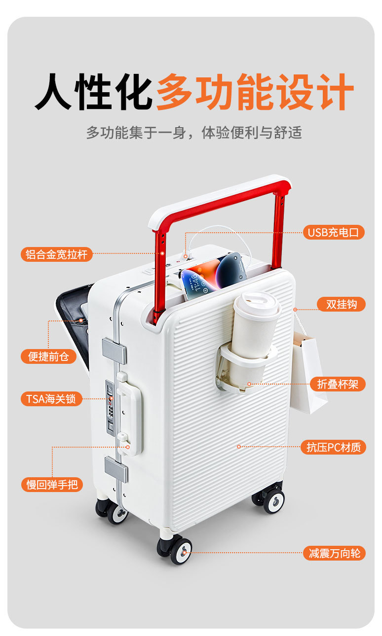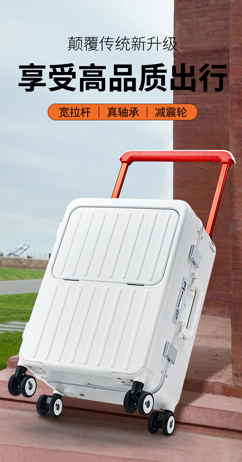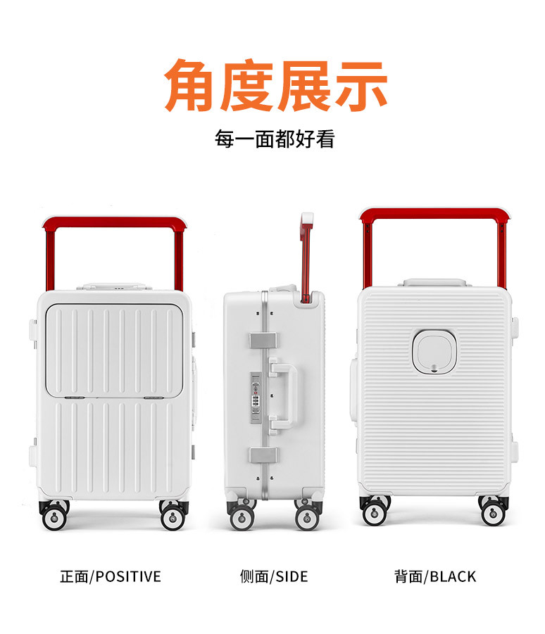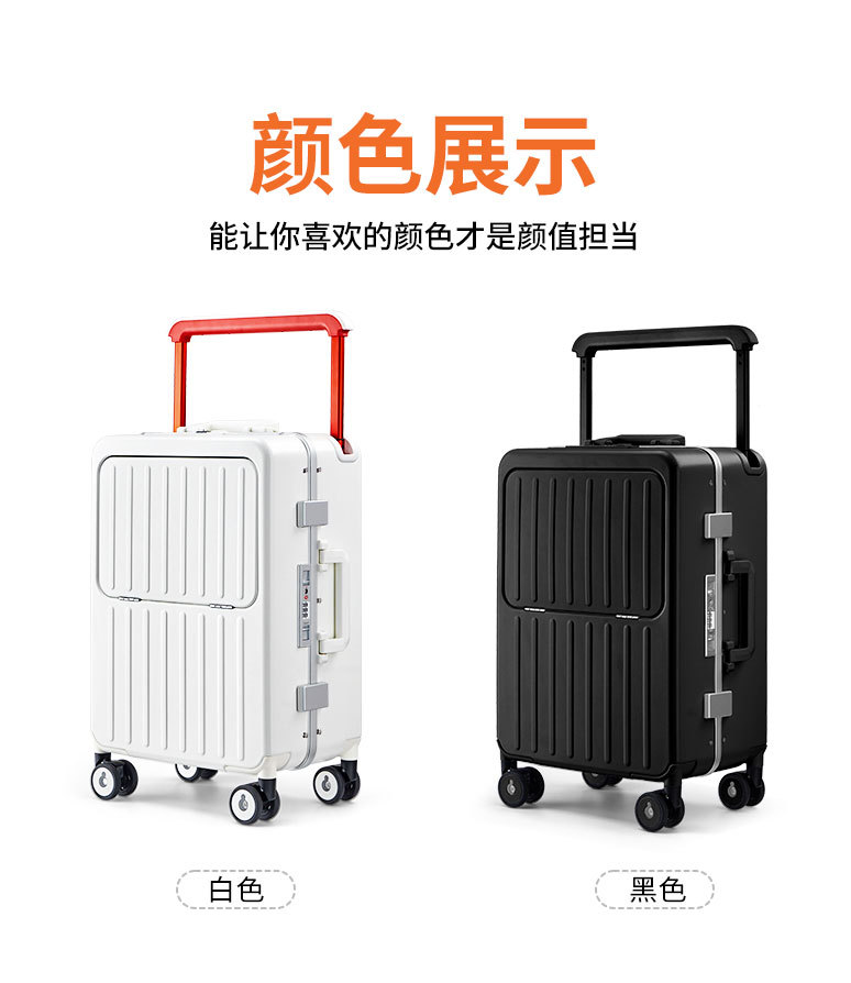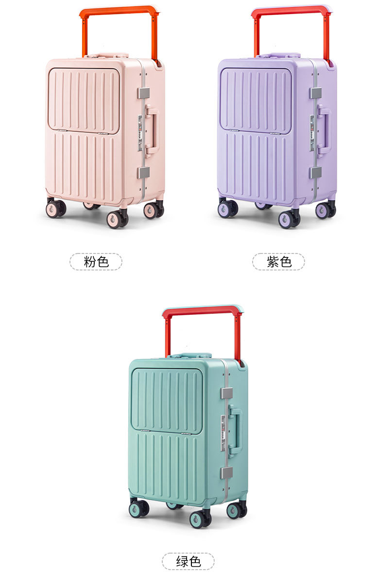 새로운 PC 알루미늄 프레임 넓은 타이로드 전면 개방 24 인치 수하물 높은 색상 가치 20 인치 가방 트롤리 케이스 도매스토어 가기