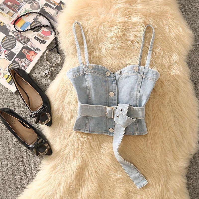 프랑스 스타일 틈새 퍼프 슬리브 원피스 여성 2025 디자인 센스 셔츠 원피스 데님 조끼 투피스 세트스토어 가기