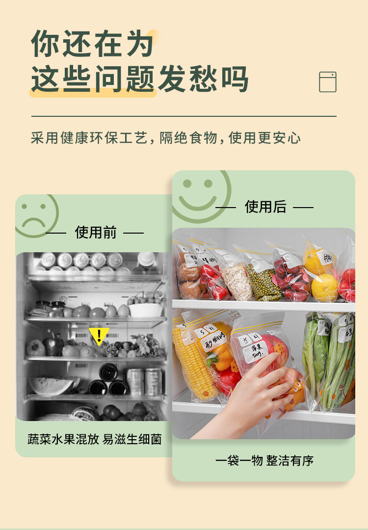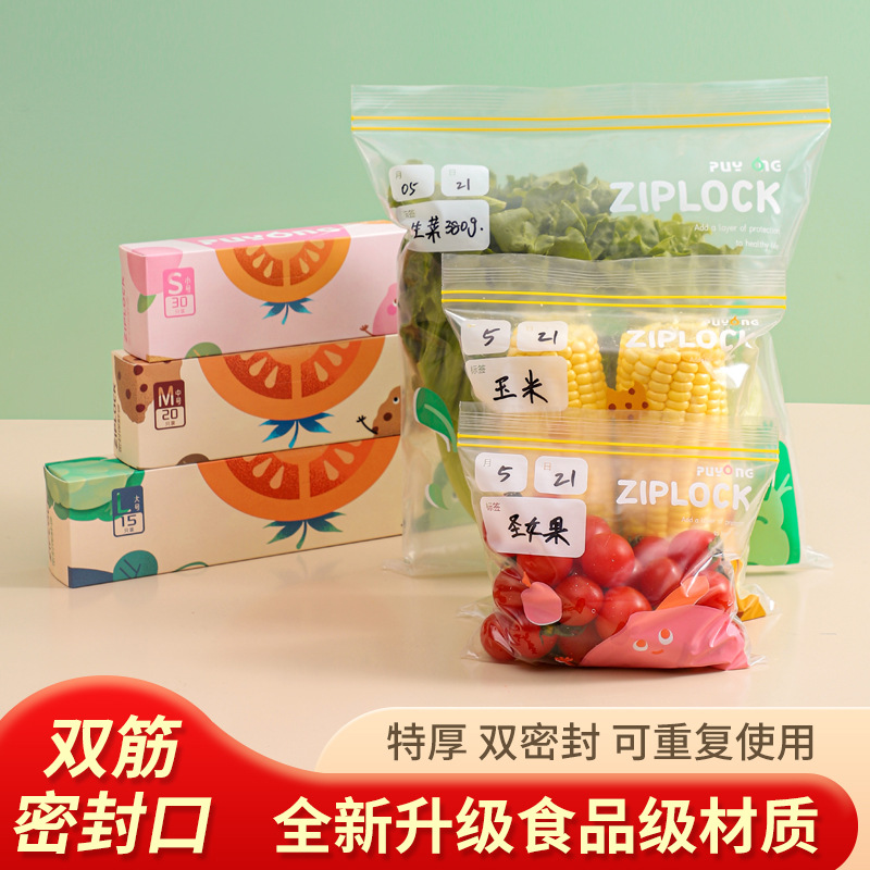 식품 등급 신선한 가방 더블 리브 밀봉 냉장고 주방 슬라이딩 케이블 보관 서브 포장 가방 가정용 지퍼 봉인 가방스토어 가기
