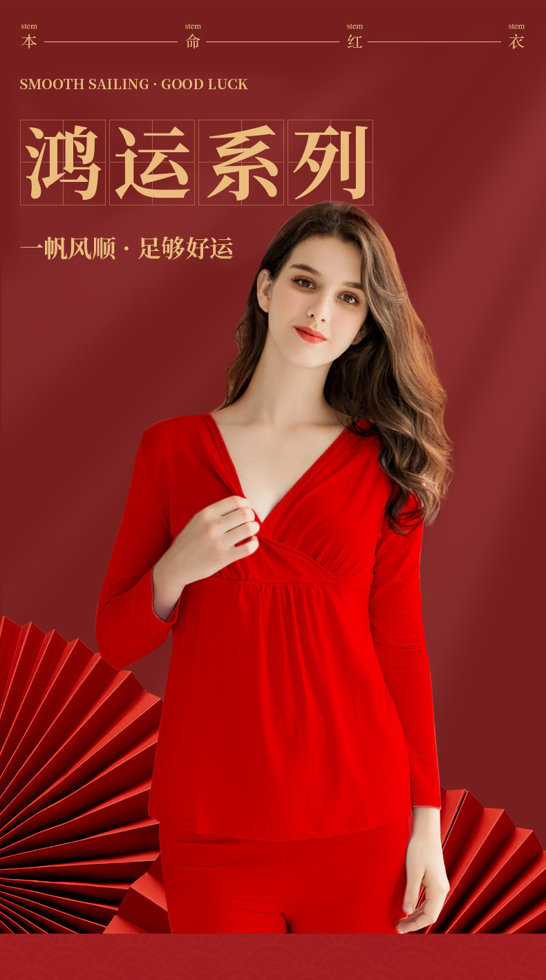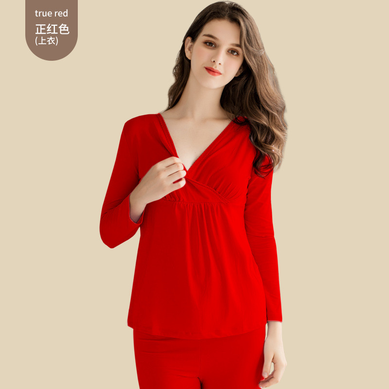 큰 붉은 가을 옷 인생의 해에 임산부를위한 탑 가을과 겨울 임신 기간 간호 뱀 결혼식 면화 스웨터의 열 속옷 년스토어 가기