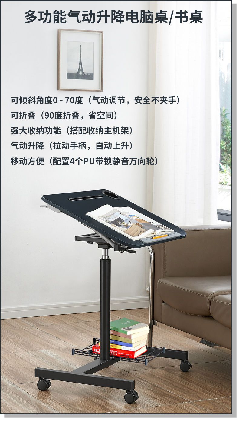 이동식 리프팅 컴퓨터 데스크 침대 옆 테이블 연구 테이블 게으른 테이블 공압 리프팅 데스크탑 틸트 폴딩스토어 가기