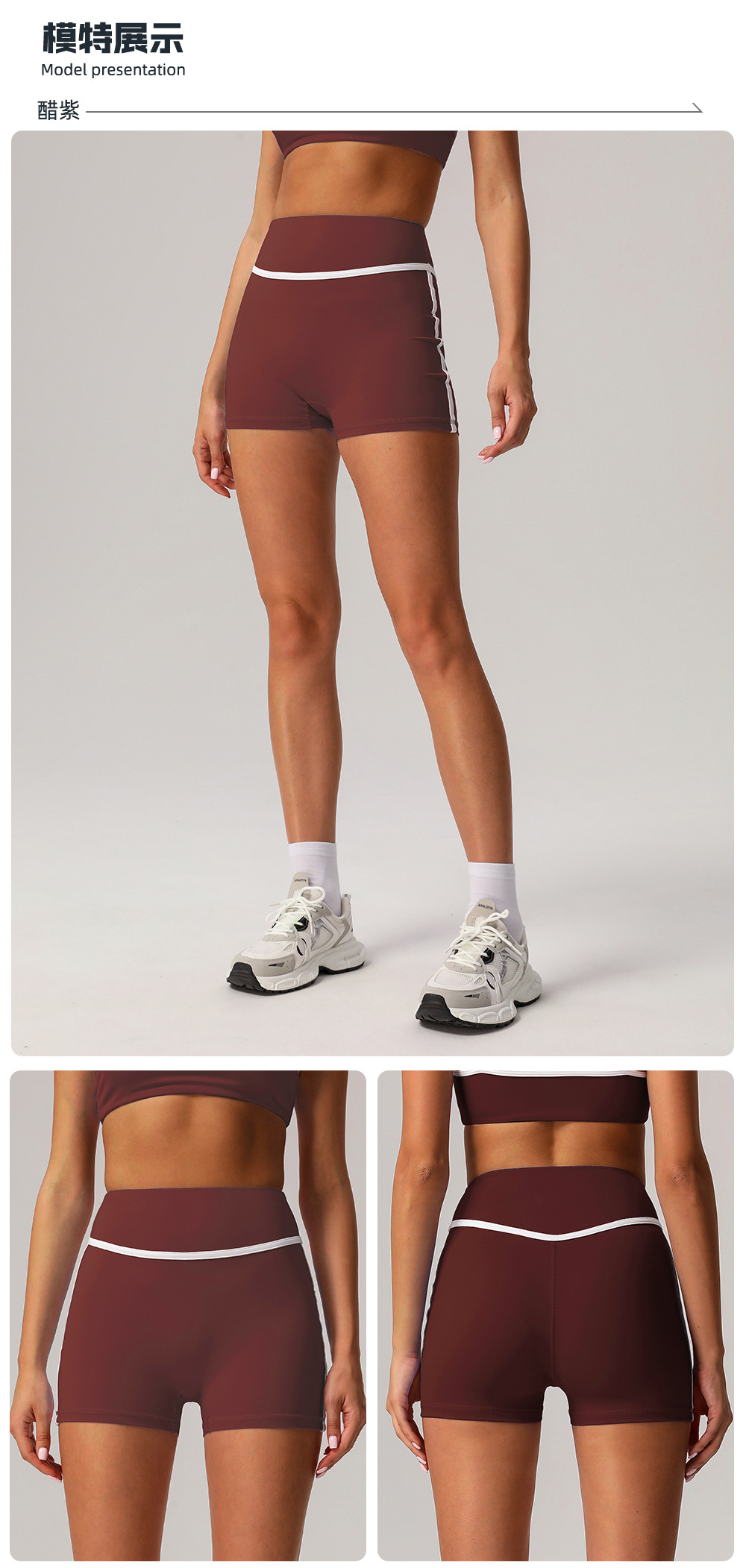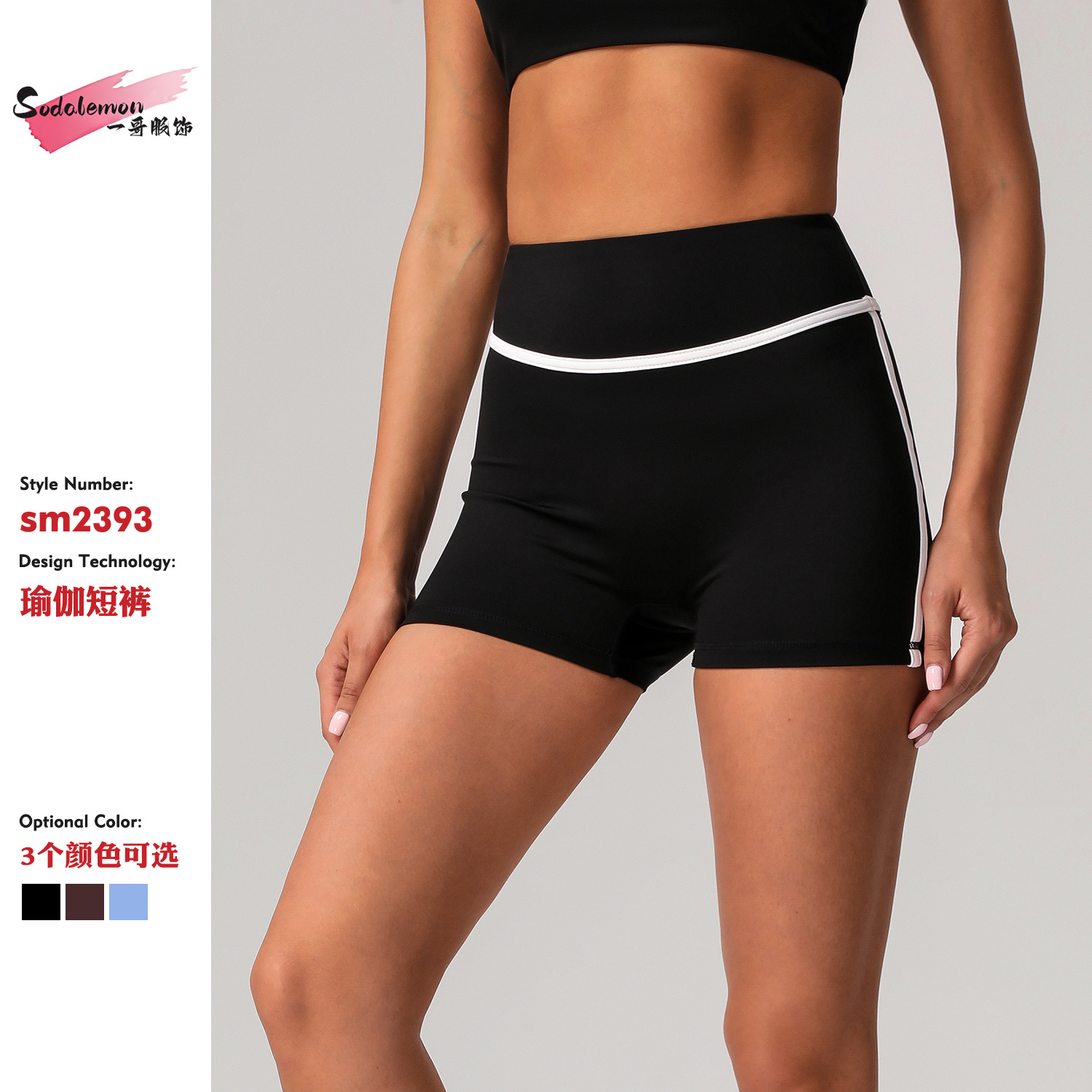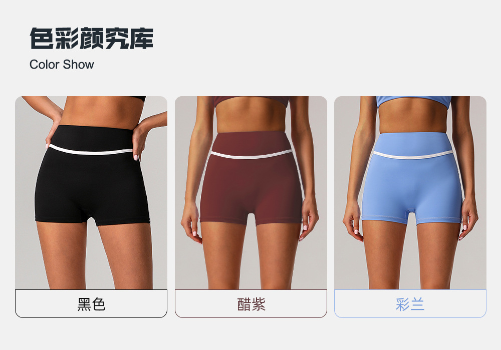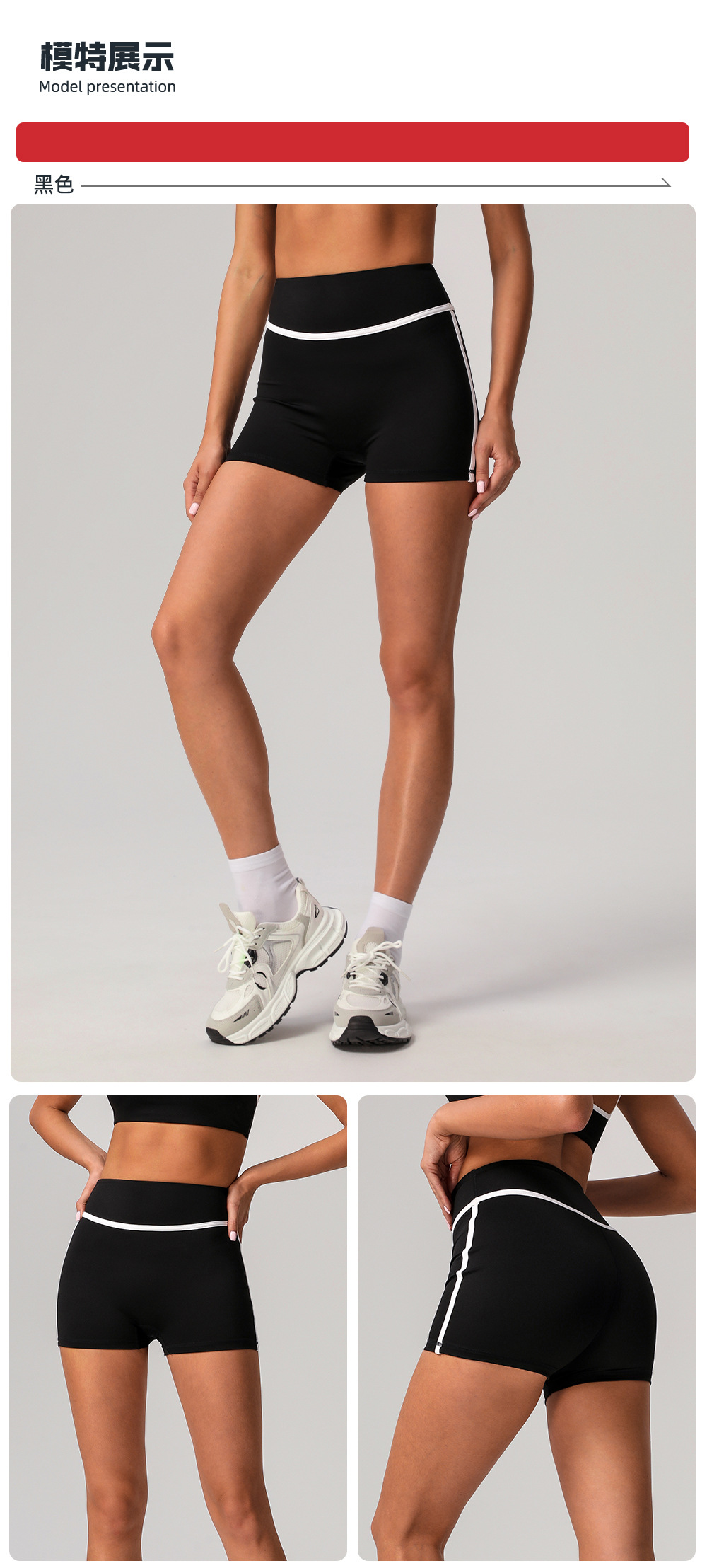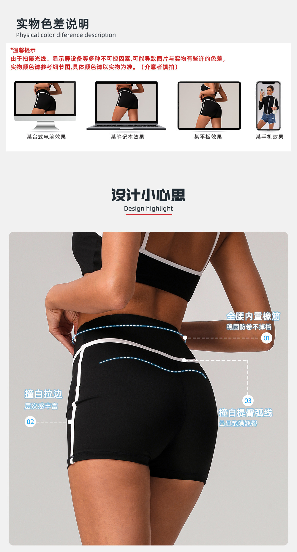 유럽과 미국의 색상 대비 높은 허리 벨리 타이트 요가 반바지 꽉 손잡이 엉덩이 리프팅 빠른 건조 스포츠 반바지 여성 외부 착용 피트니스 바지스토어 가기