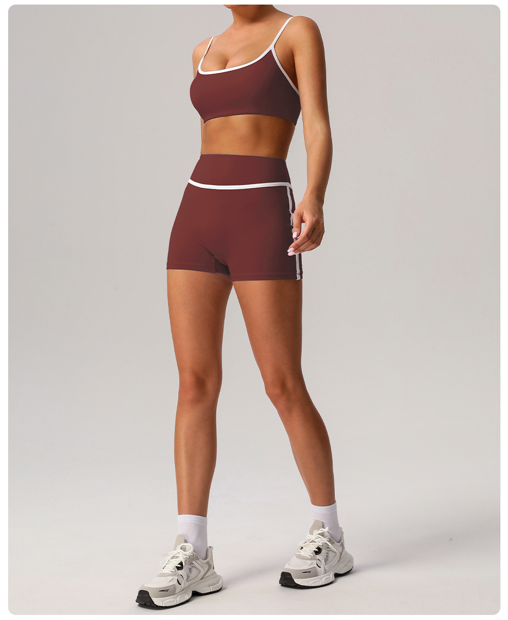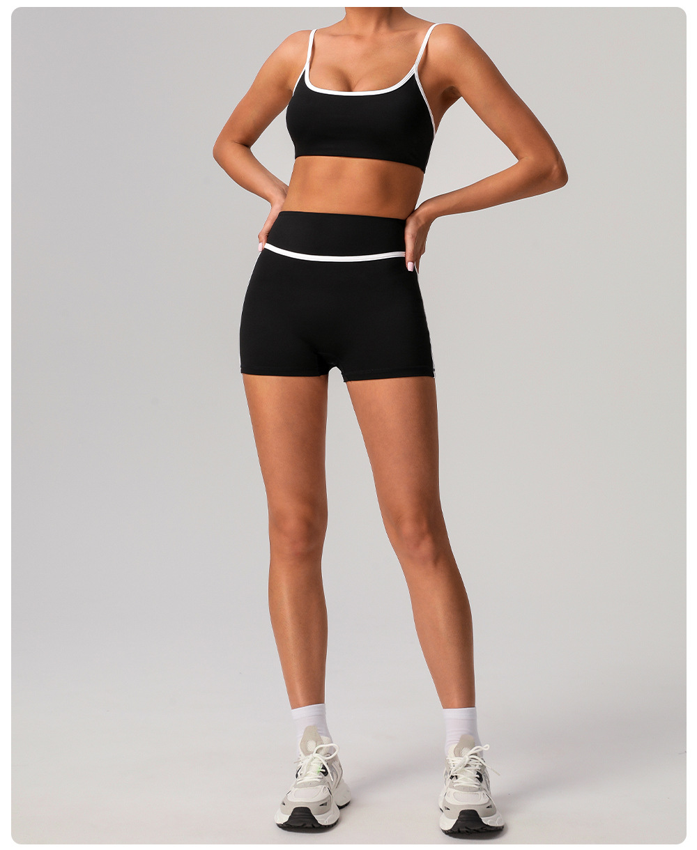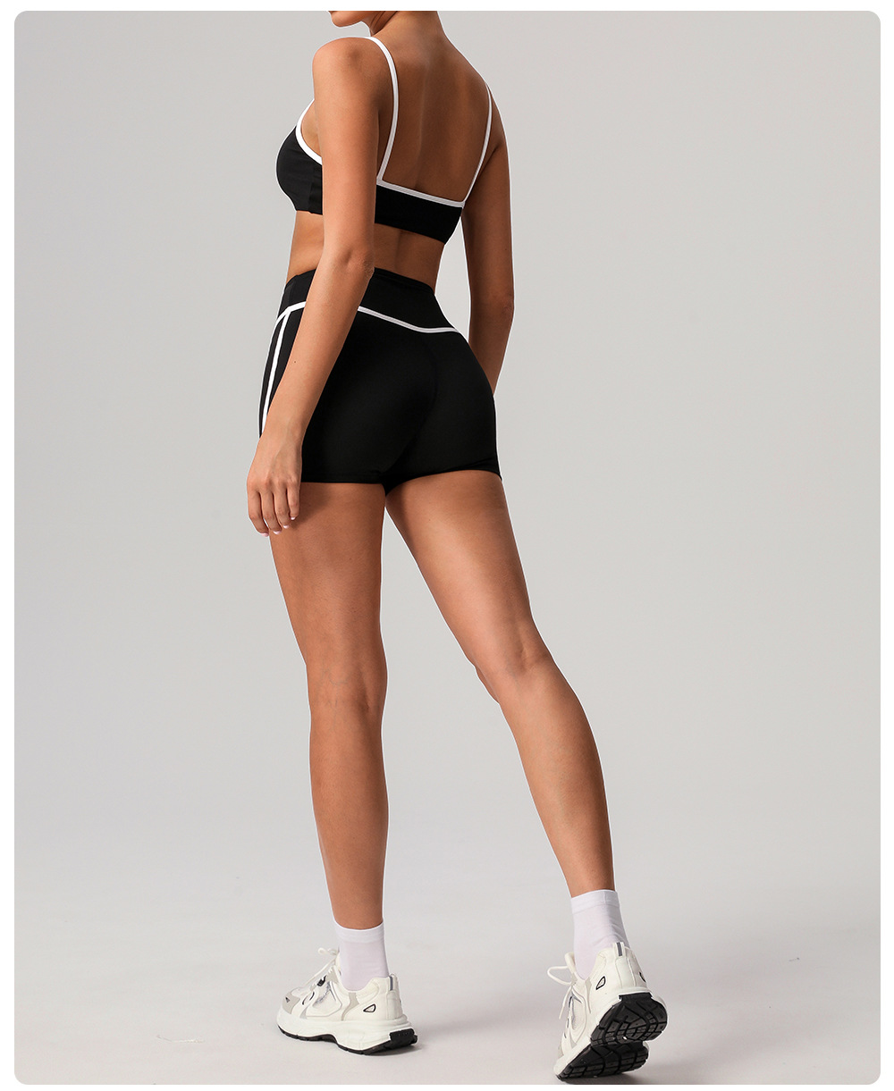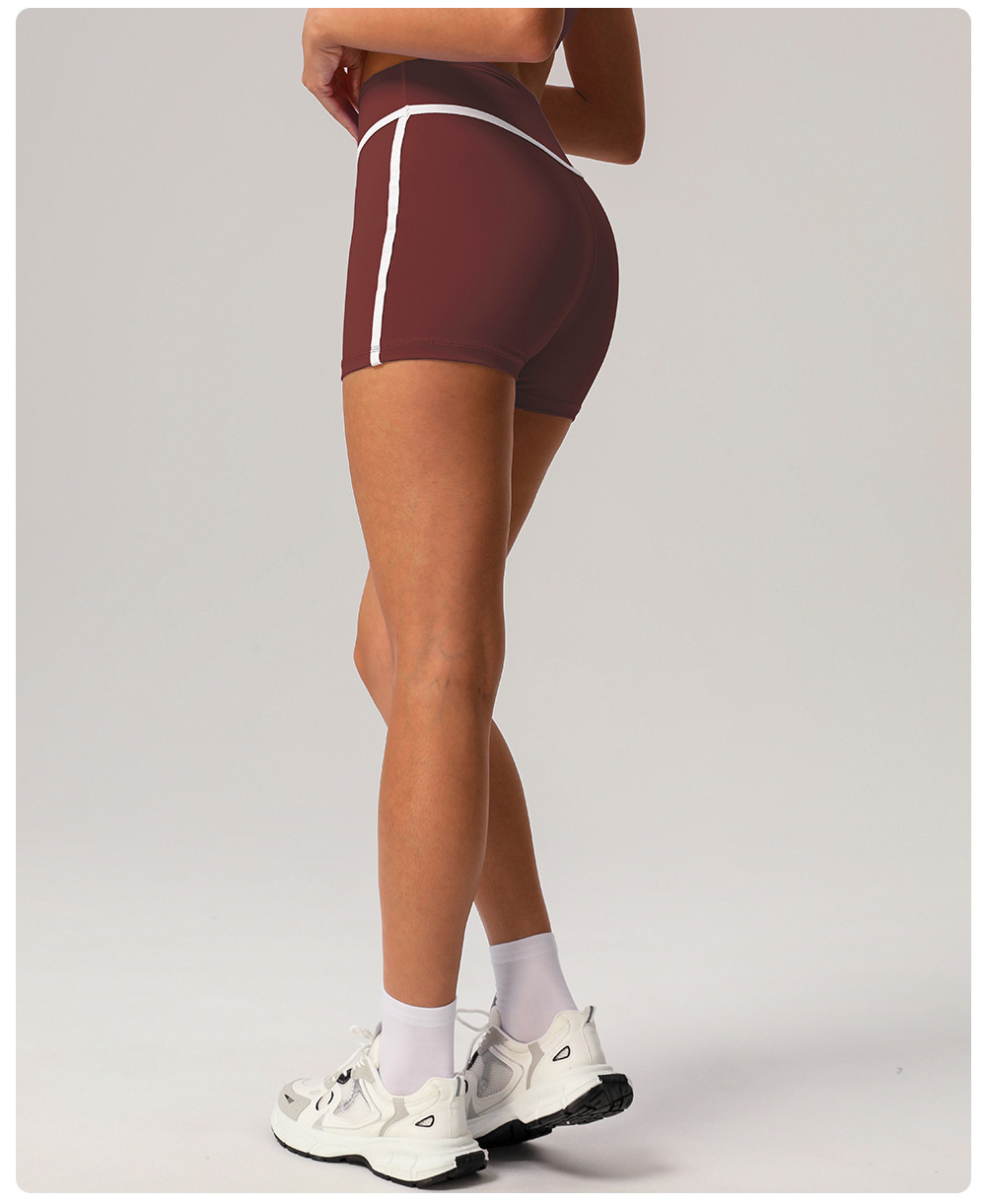 유럽과 미국의 색상 대비 높은 허리 벨리 타이트 요가 반바지 꽉 손잡이 엉덩이 리프팅 빠른 건조 스포츠 반바지 여성 외부 착용 피트니스 바지스토어 가기
