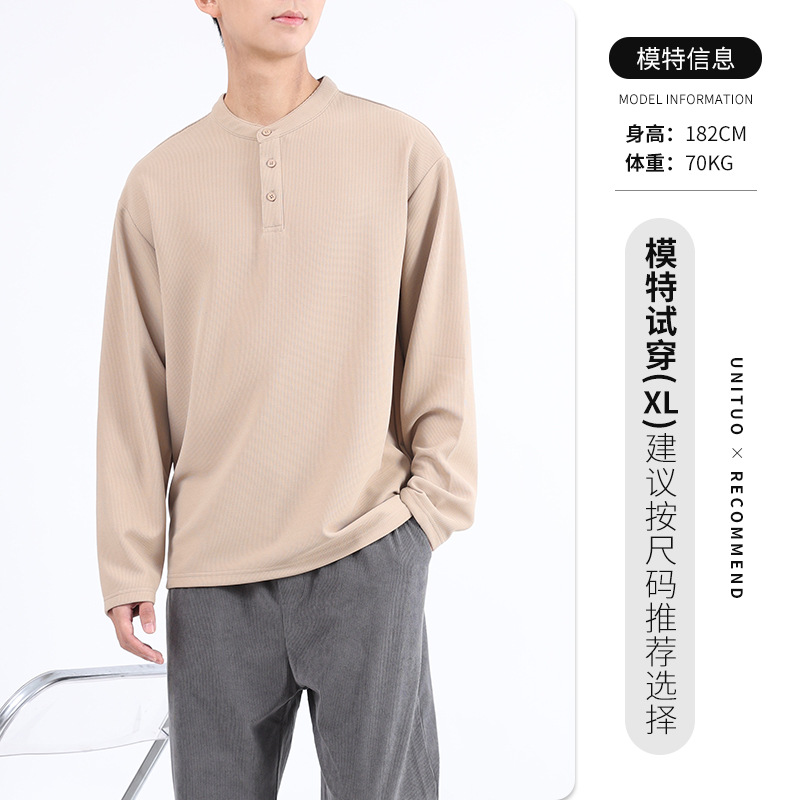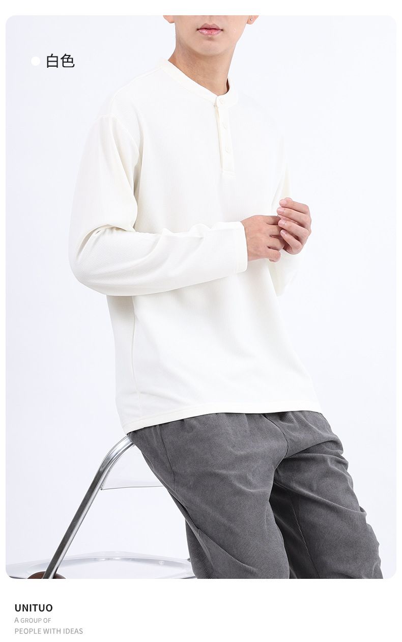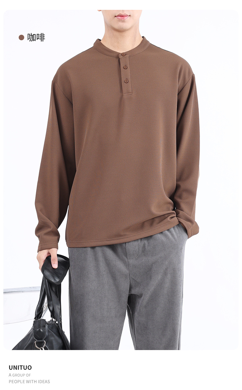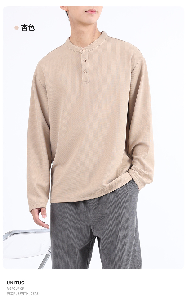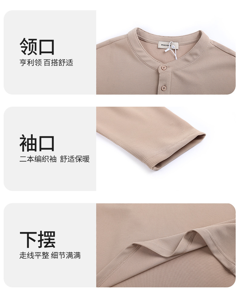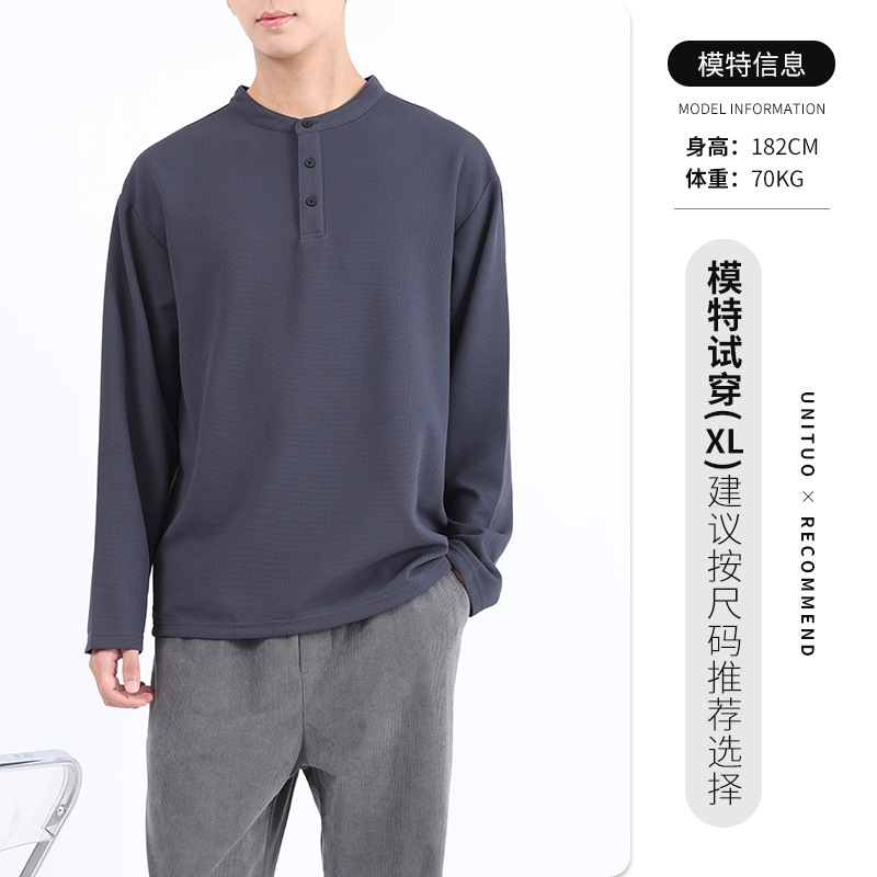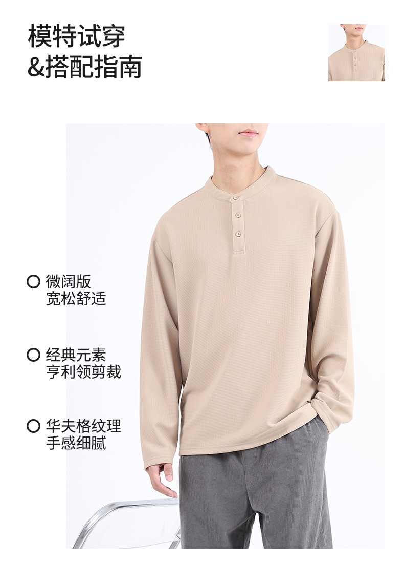 남성용 와플 헨리 칼라 긴팔 티셔츠 트렌디 브랜드 루즈 하프 버튼 가을 하이 엔드 캐주얼 베이스 셔츠스토어 가기