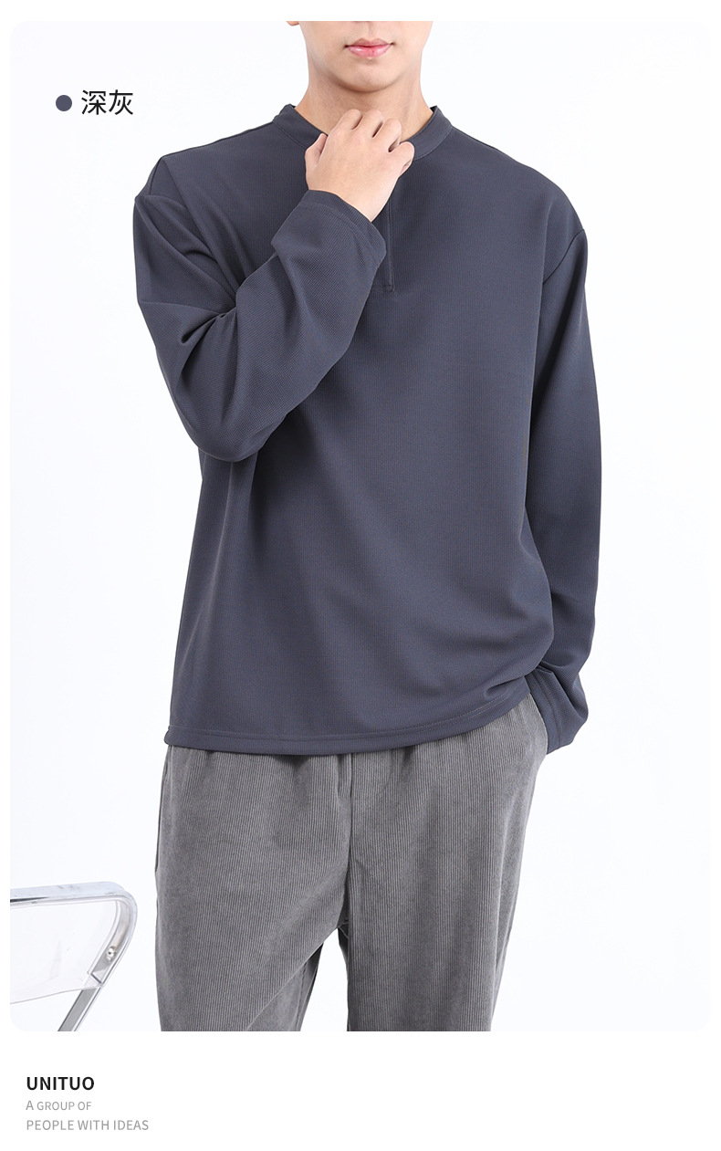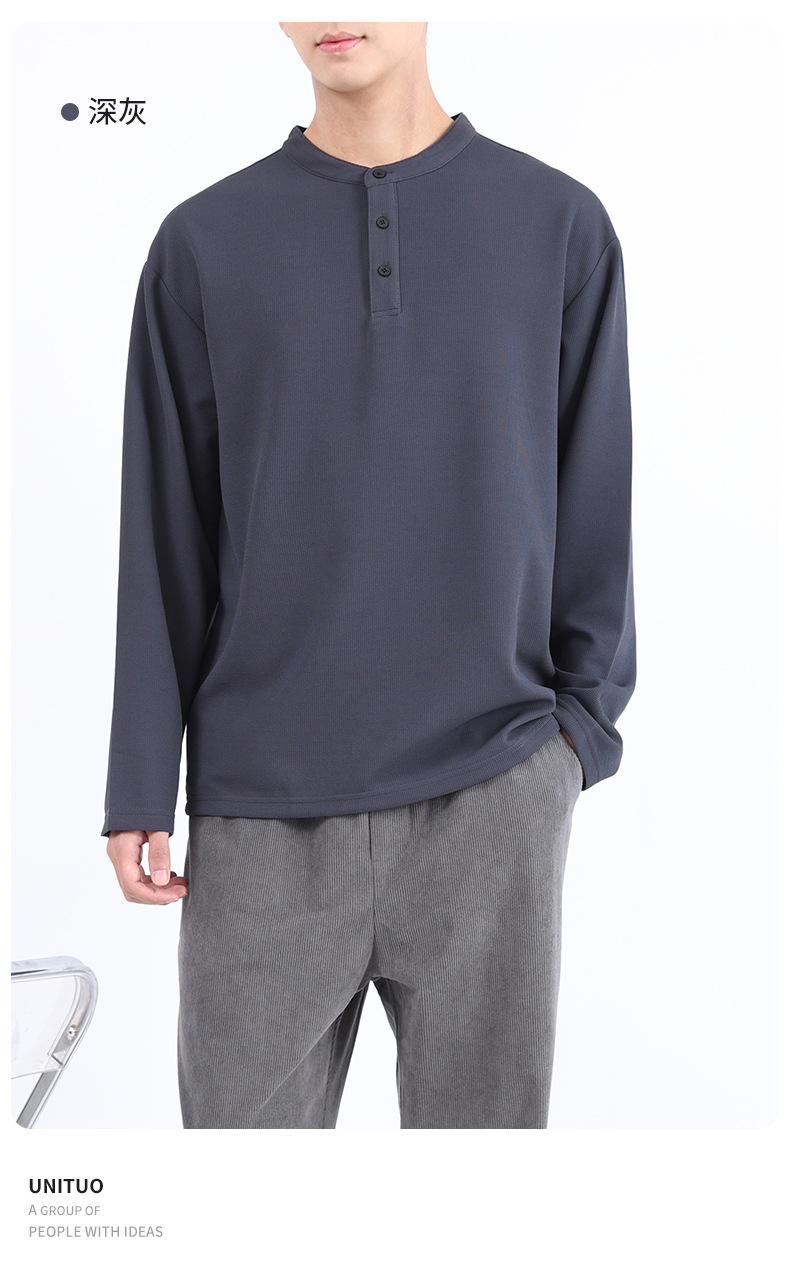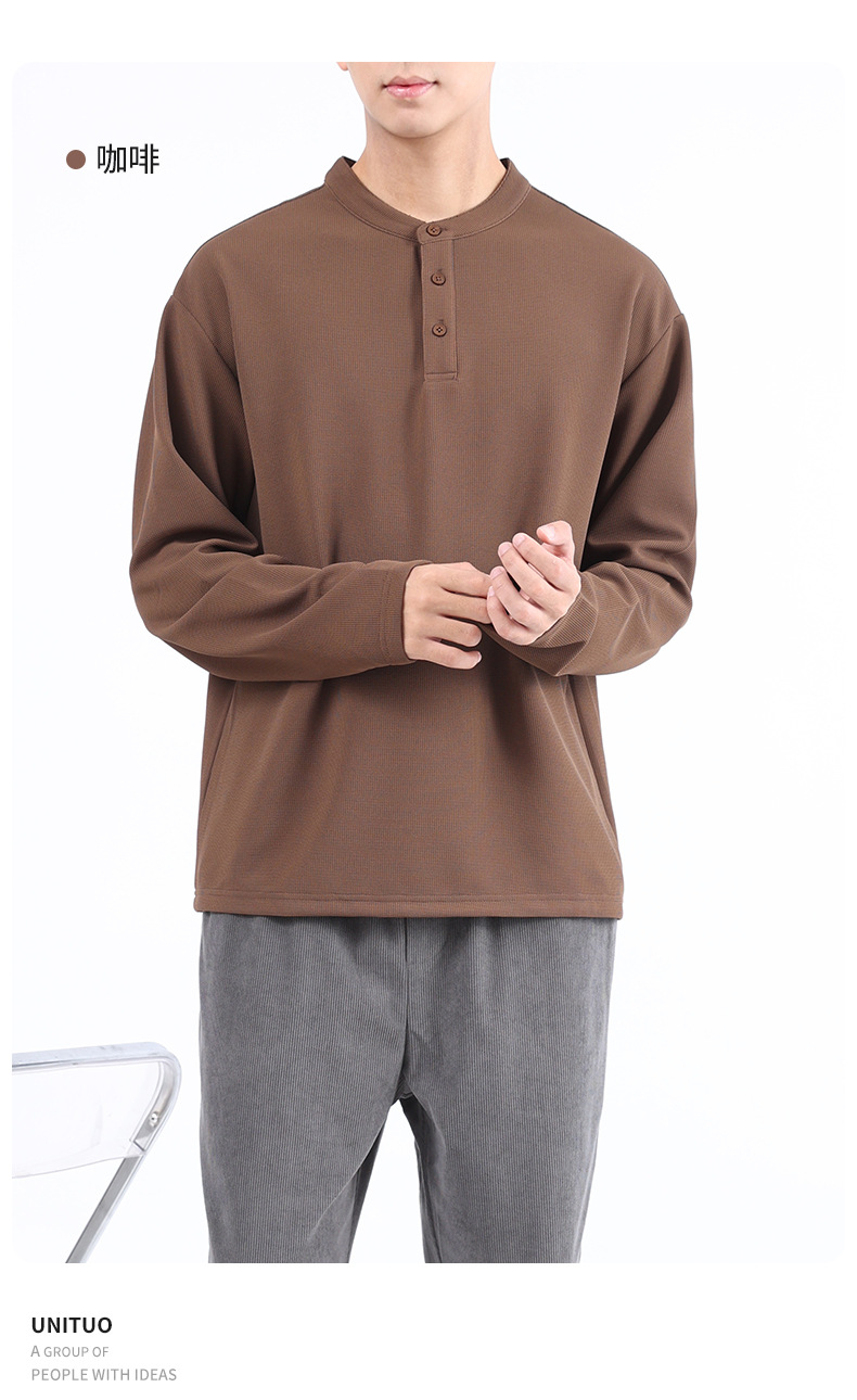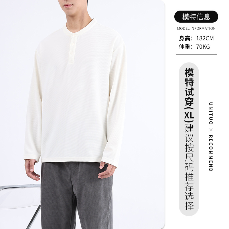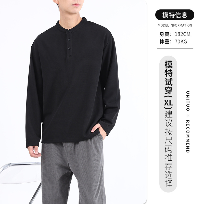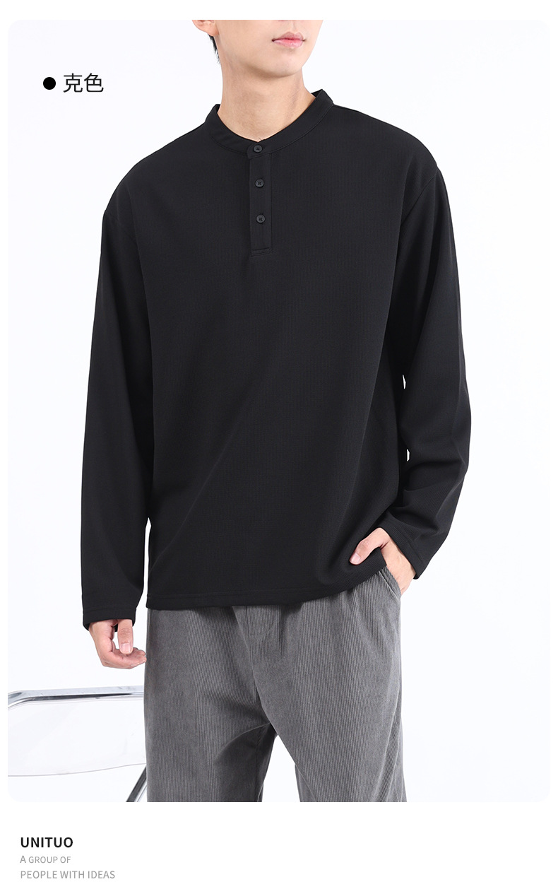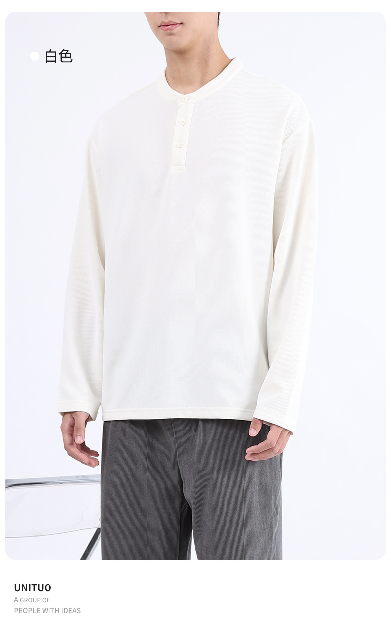 남성용 와플 헨리 칼라 긴팔 티셔츠 트렌디 브랜드 루즈 하프 버튼 가을 하이 엔드 캐주얼 베이스 셔츠스토어 가기