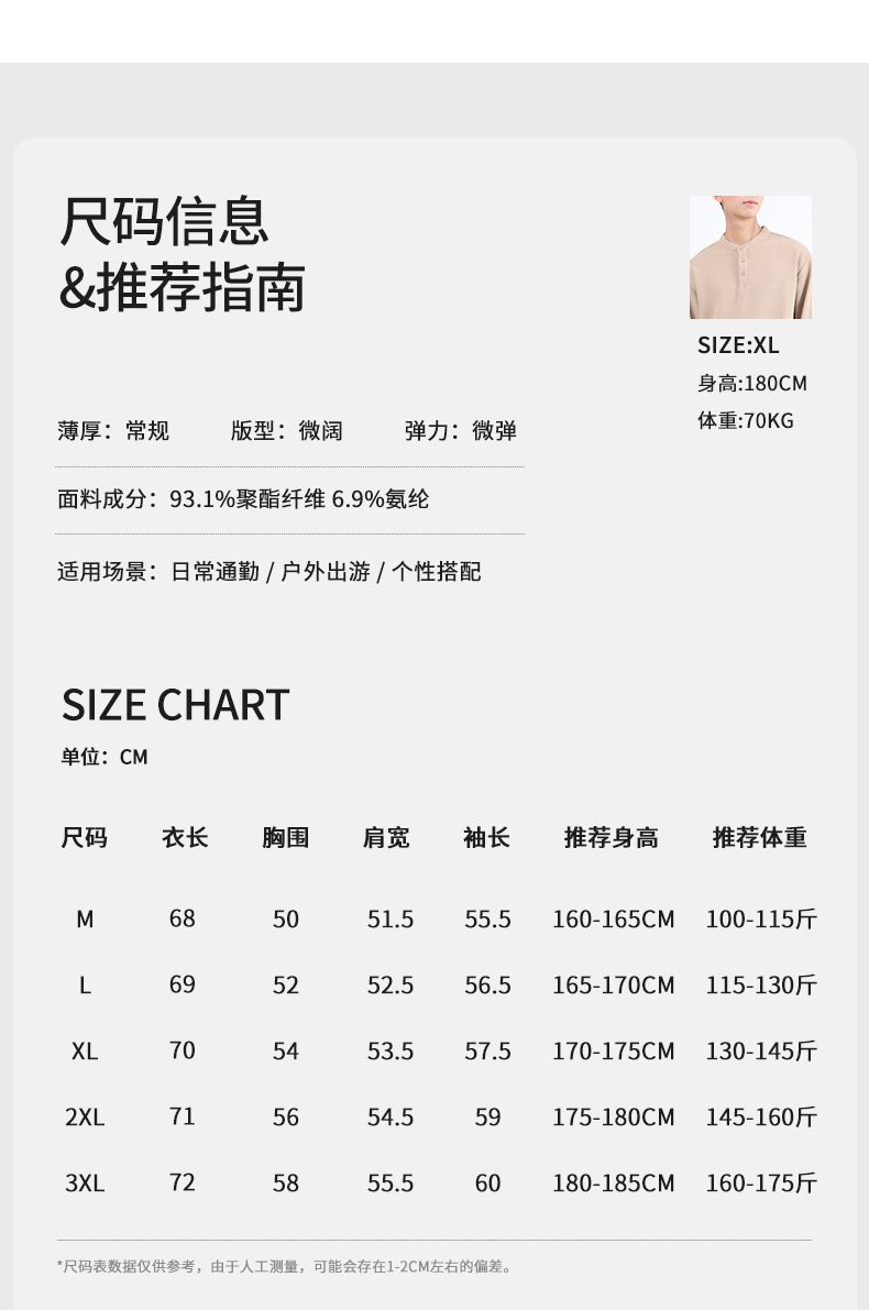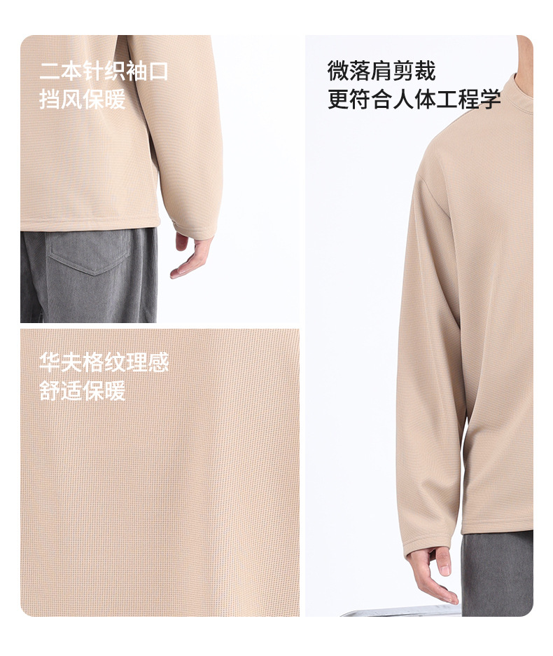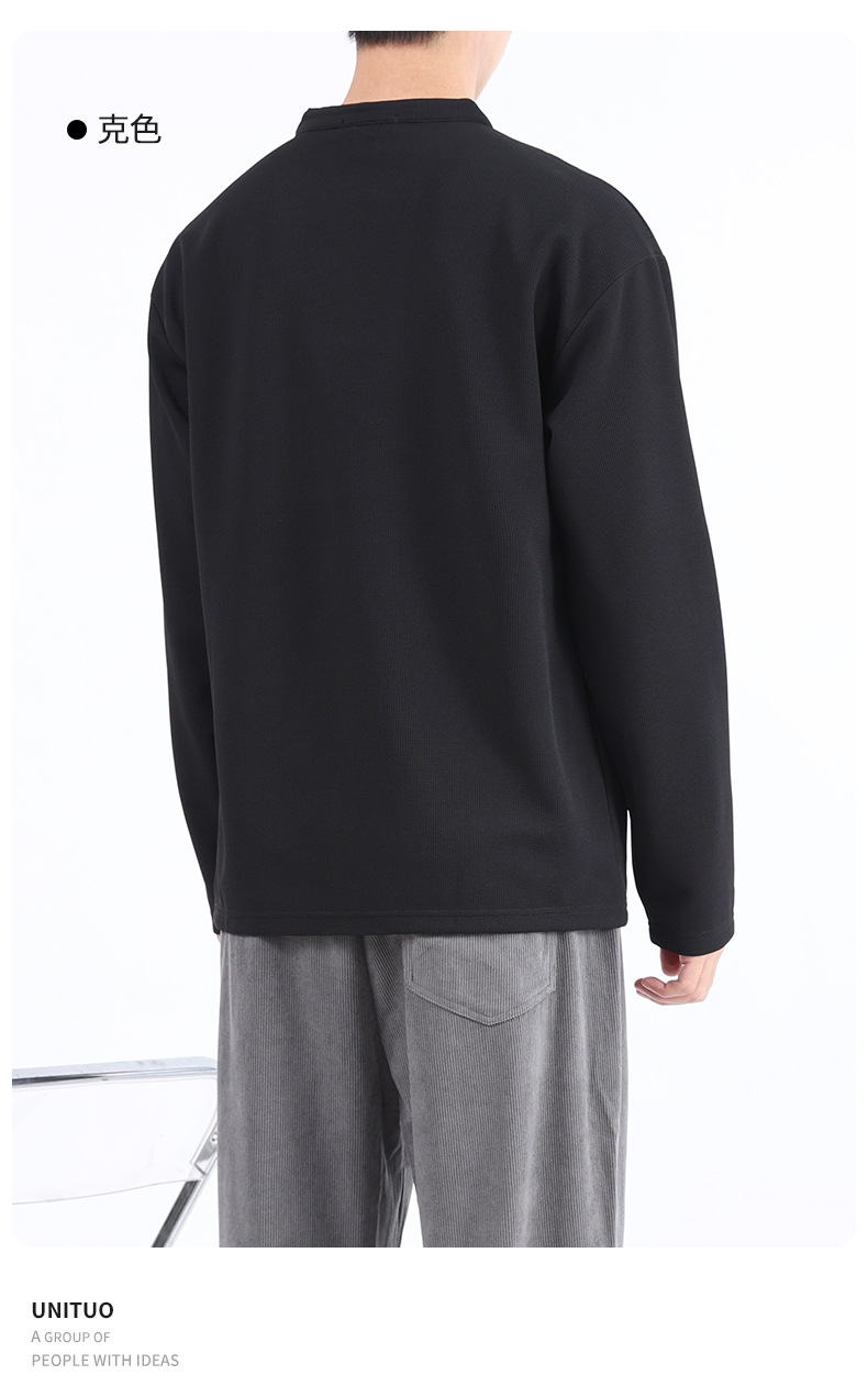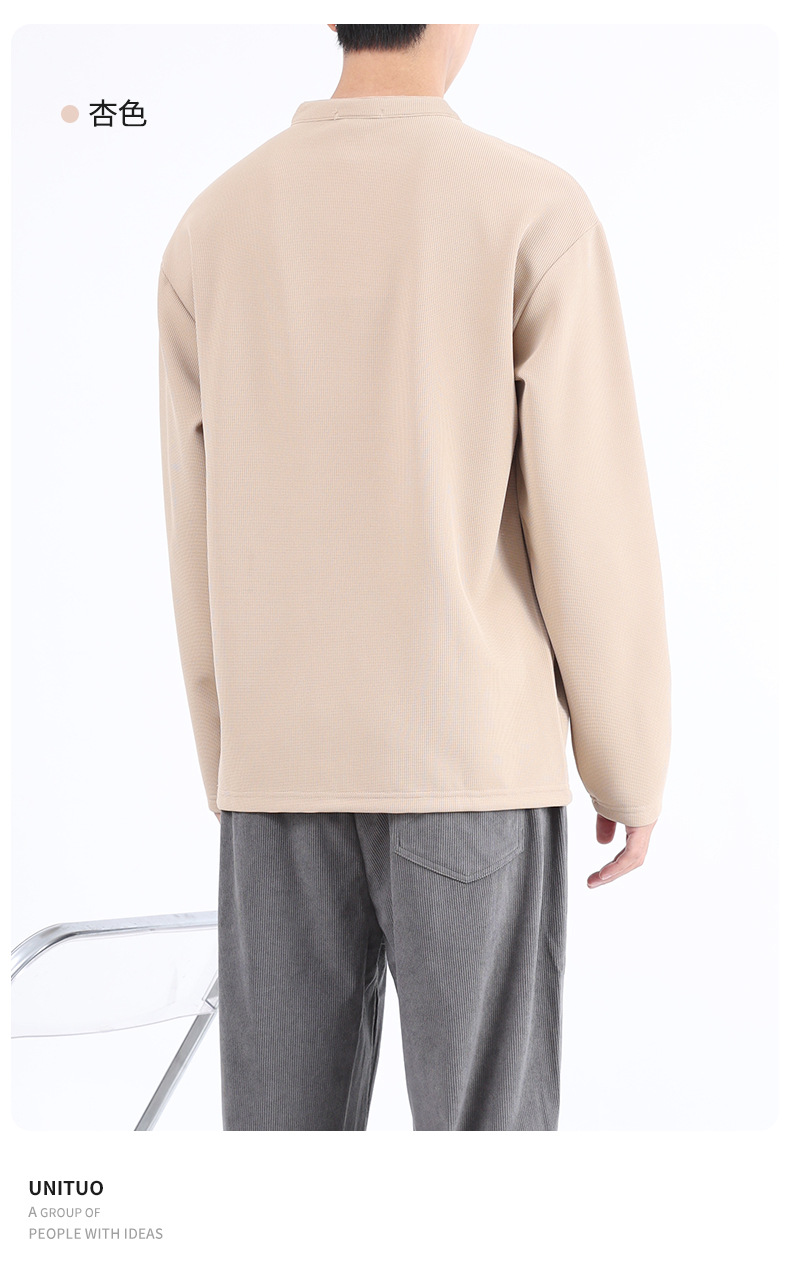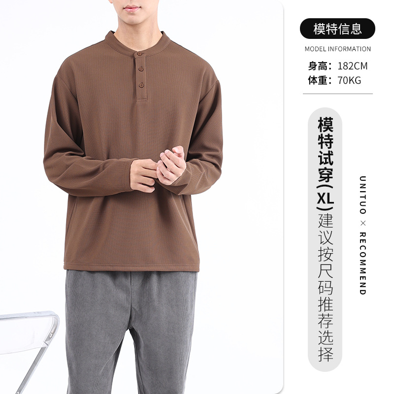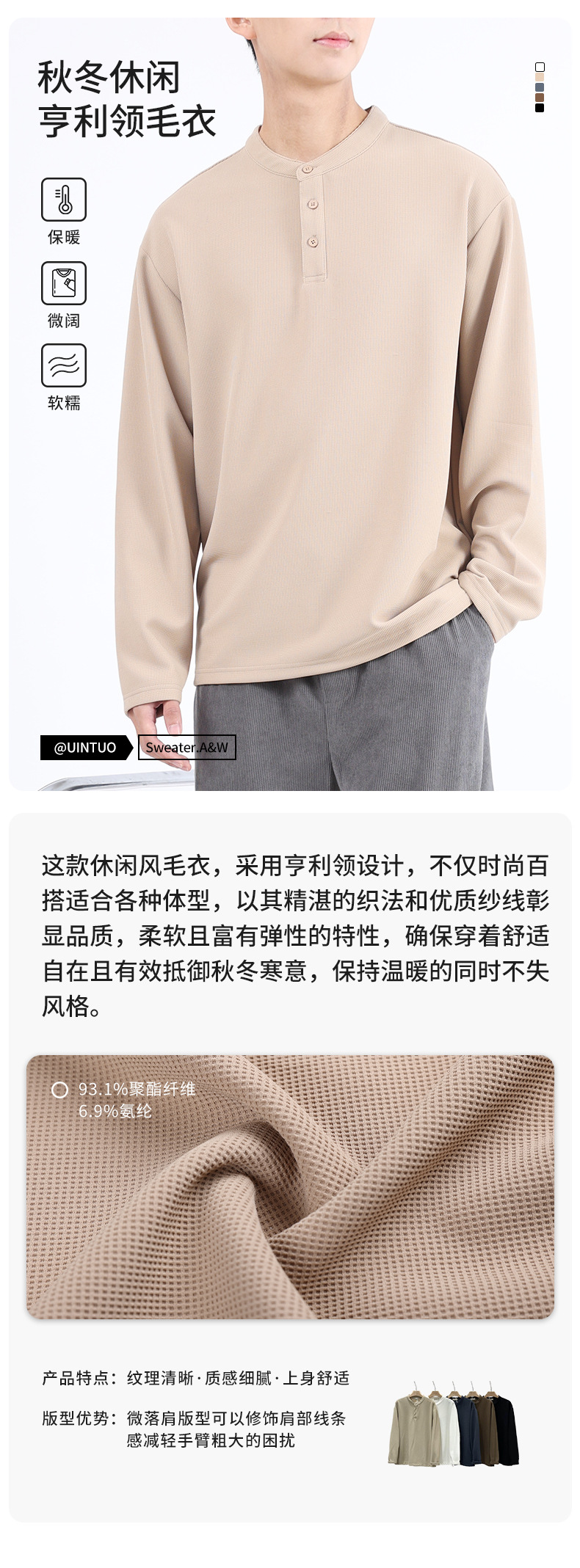 남성용 와플 헨리 칼라 긴팔 티셔츠 트렌디 브랜드 루즈 하프 버튼 가을 하이 엔드 캐주얼 베이스 셔츠스토어 가기