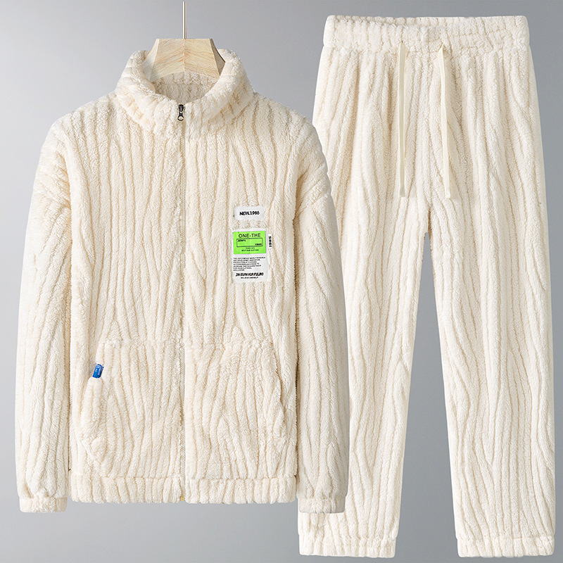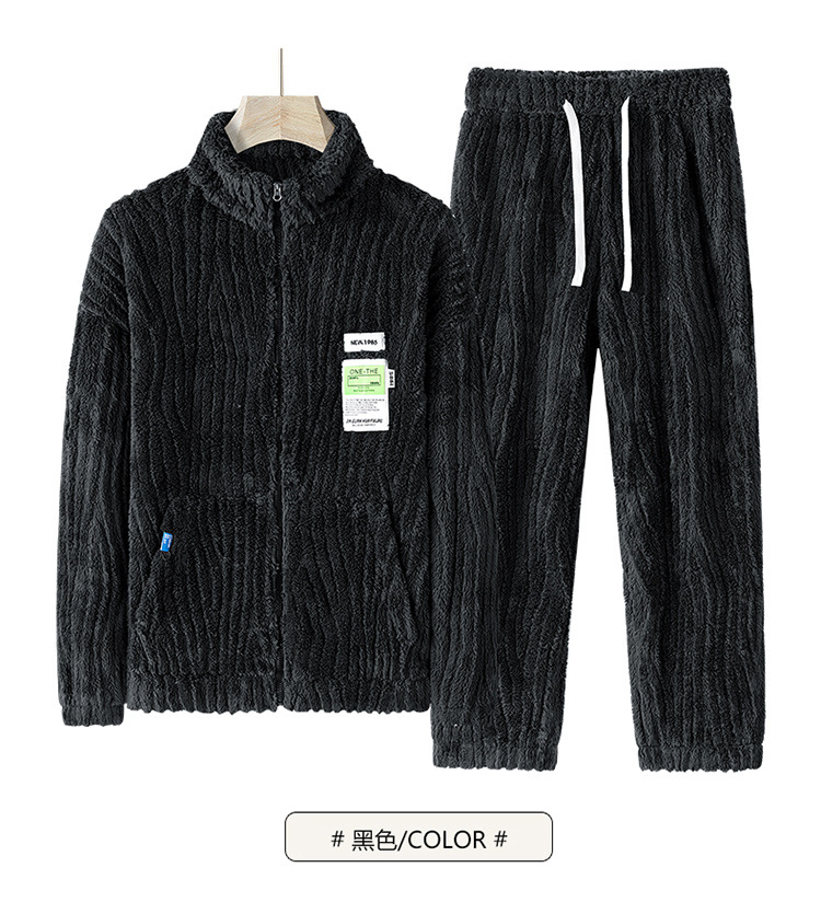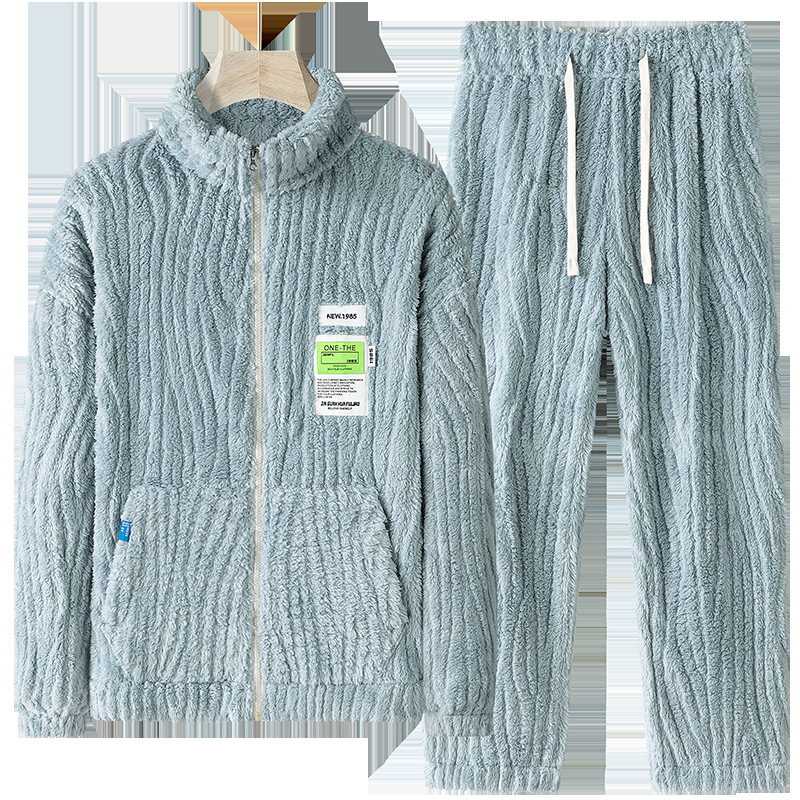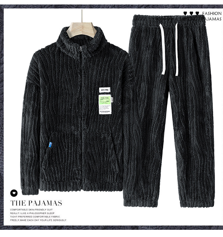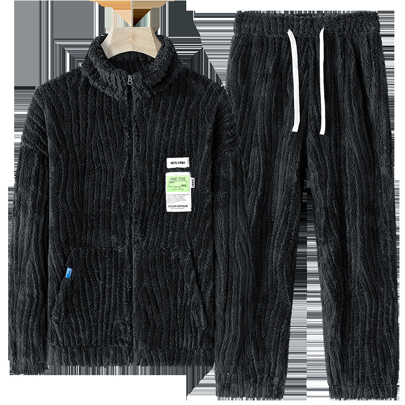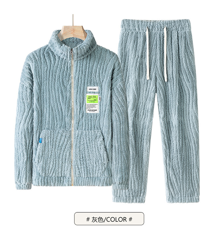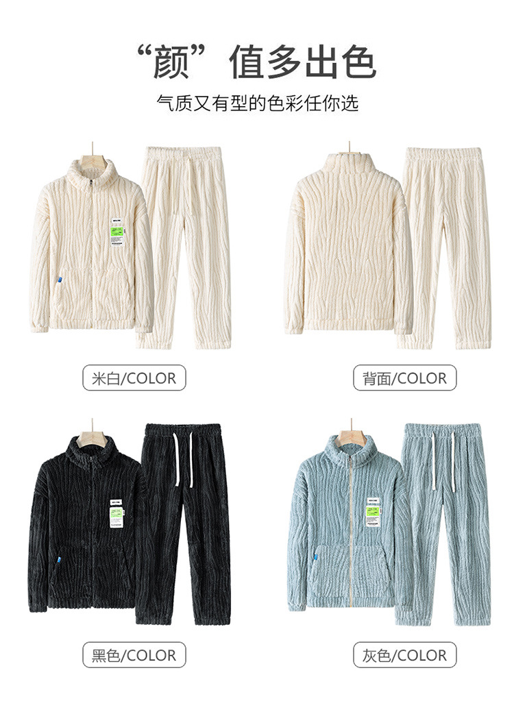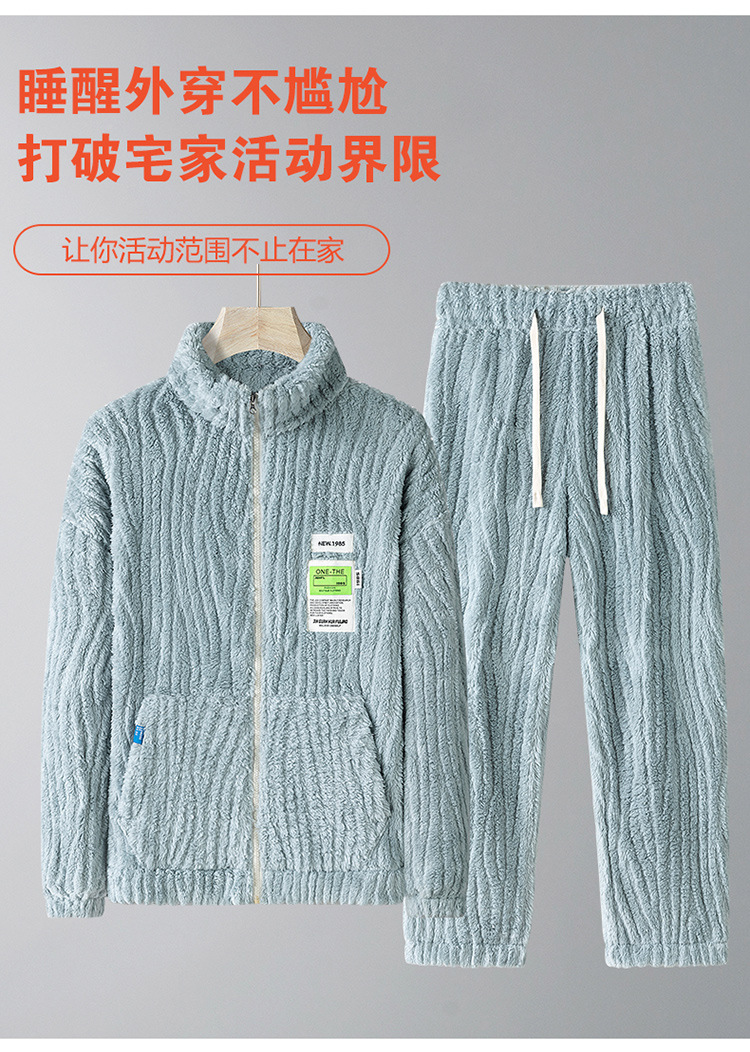 겨울 산호 양털 무거운 기모 두꺼운 지퍼 카디건 플러스 사이즈 파자마 플란넬 플러스 사이즈 남성용 따뜻한 집 옷스토어 가기