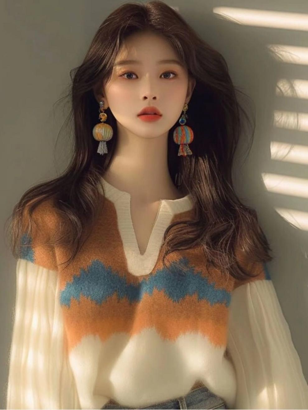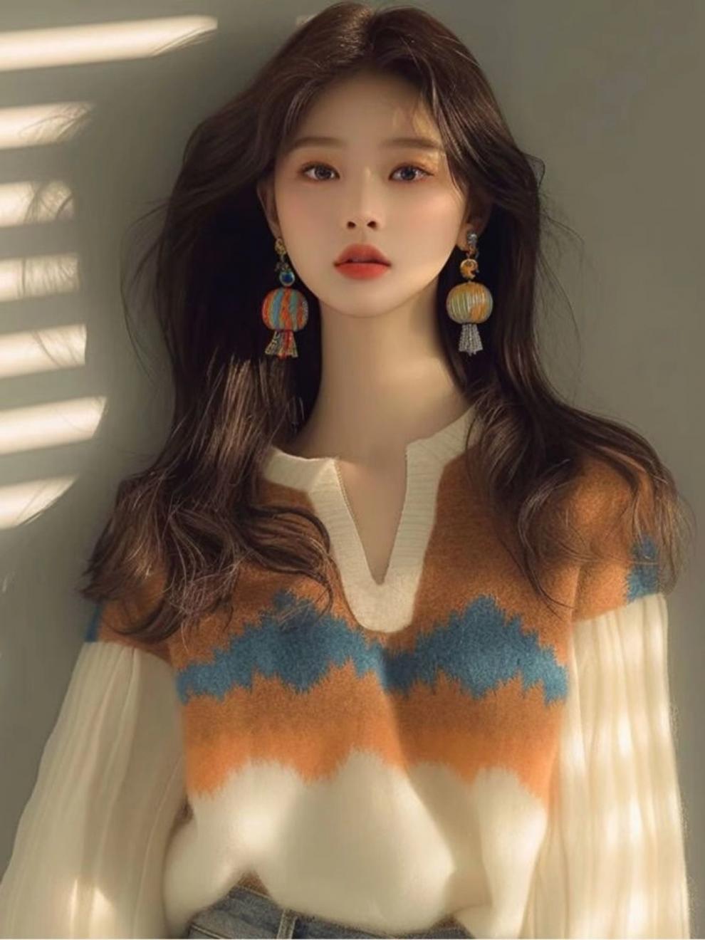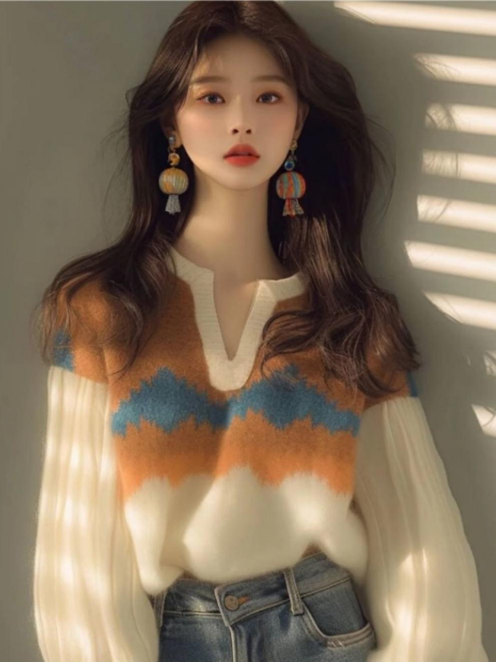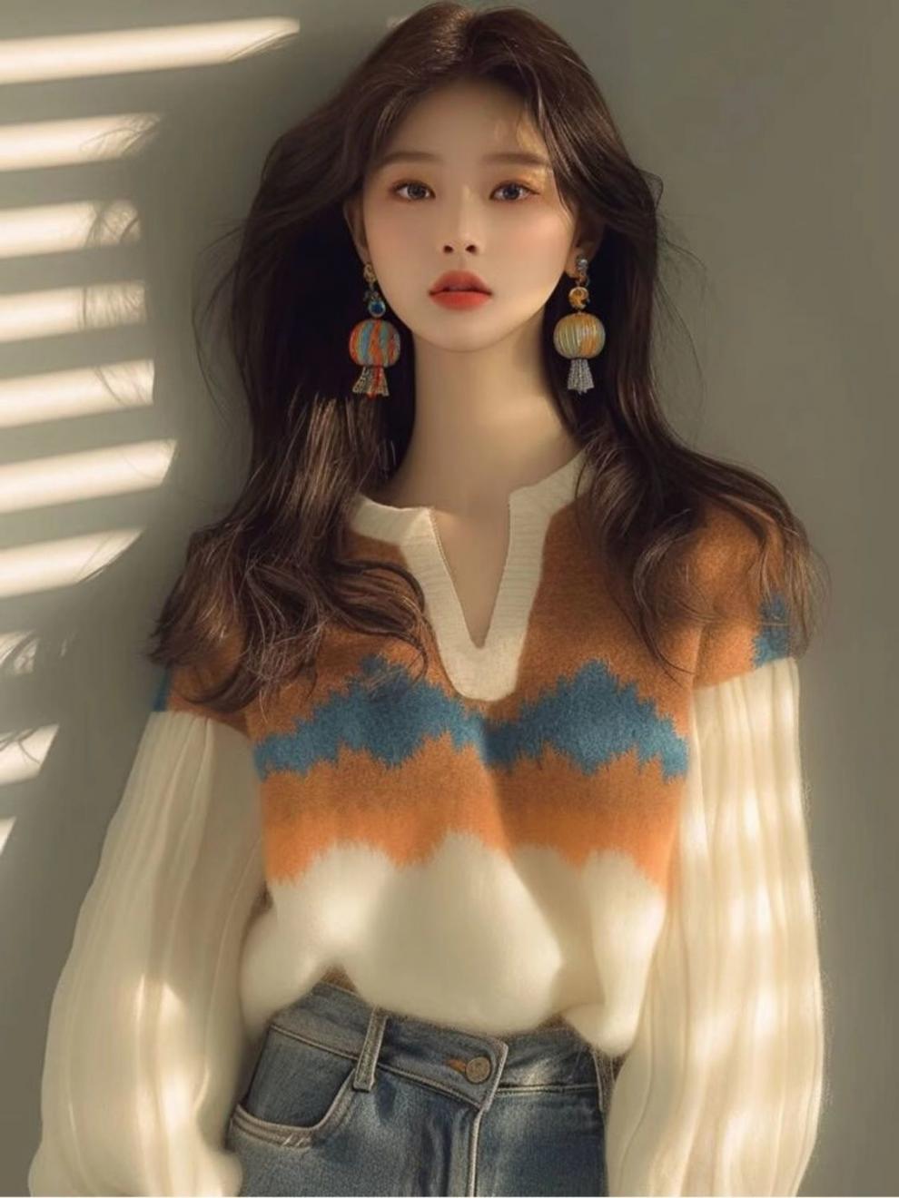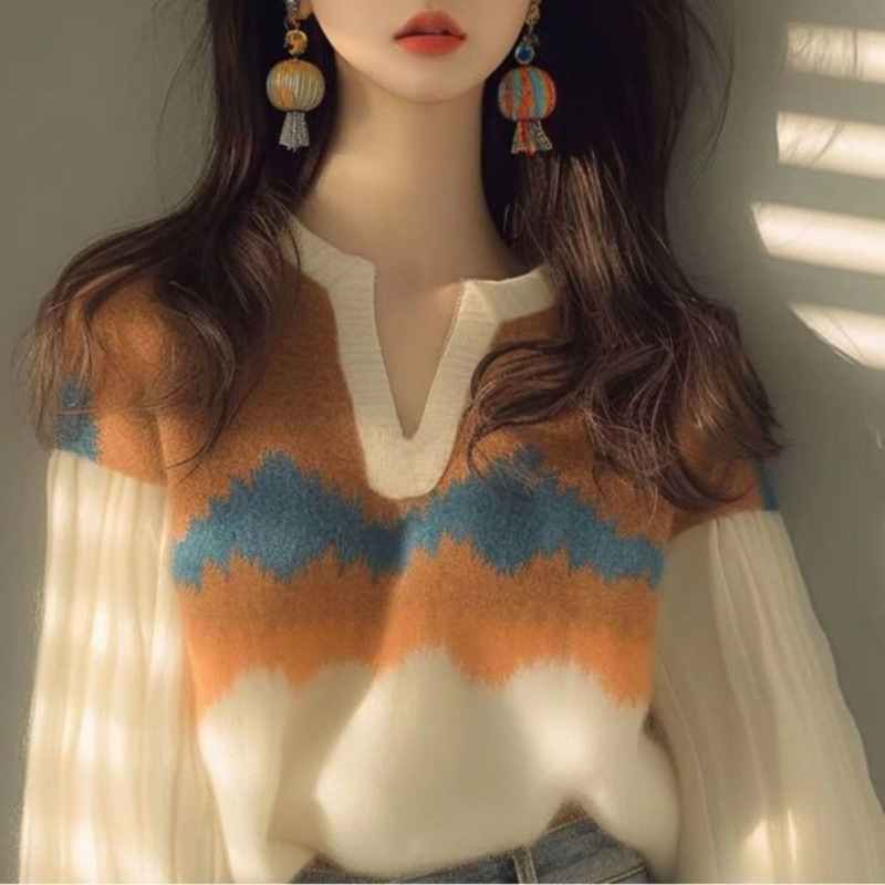 이른 가을 새로운 여성의 최고 틈새 독특한 세련된 하이 엔드 보헤미안 인쇄 니트 스웨터