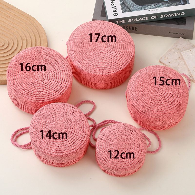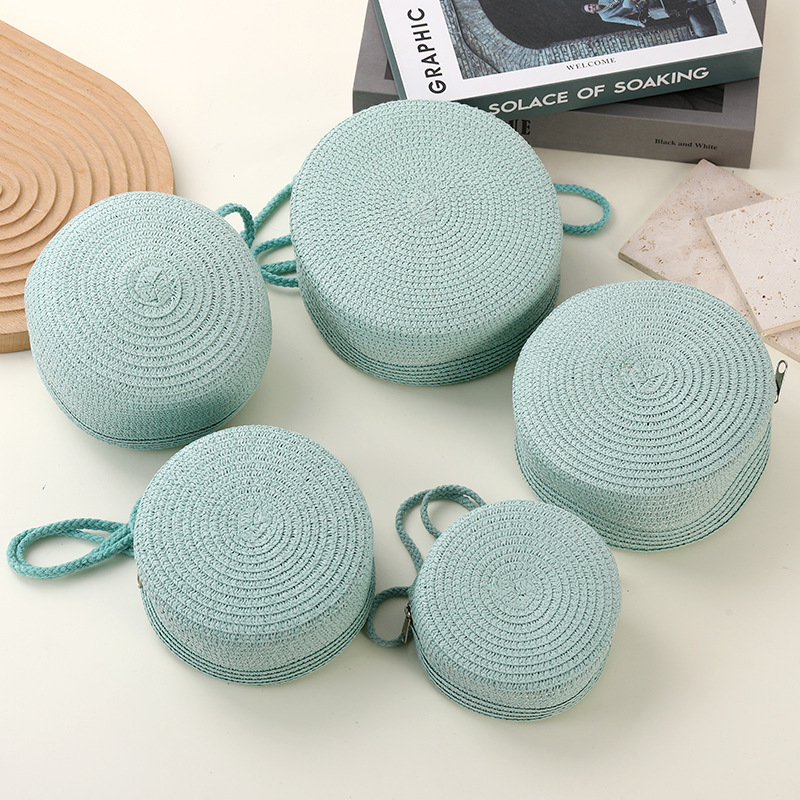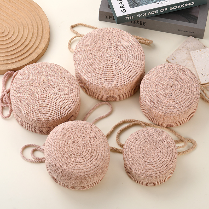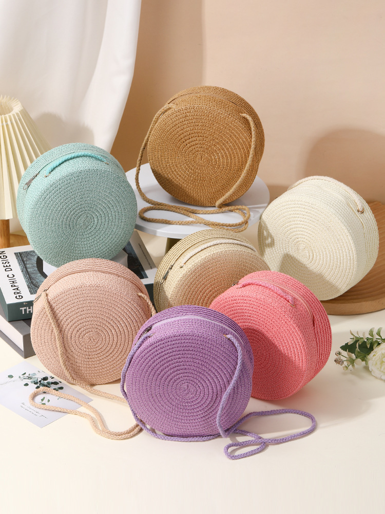 밀짚 가방 해변 짠 가방 여성 2025 새로운 입장 빛 럭셔리 스타일 밀짚 작은 라운드 가방 어린이 크로스 바디 작은 가방 비치 휴가