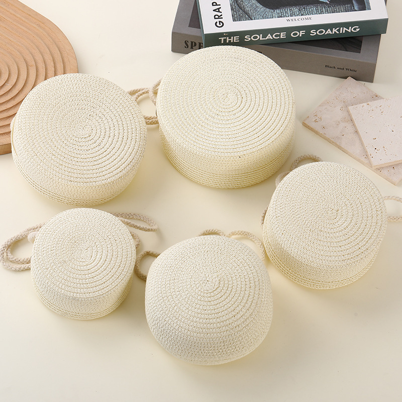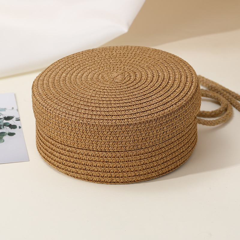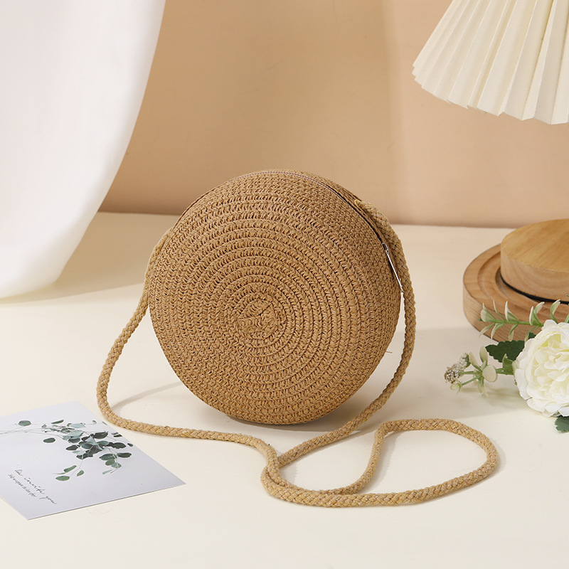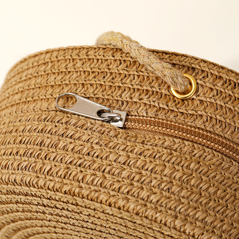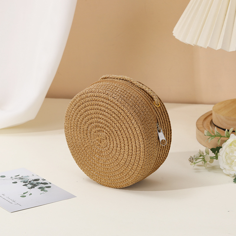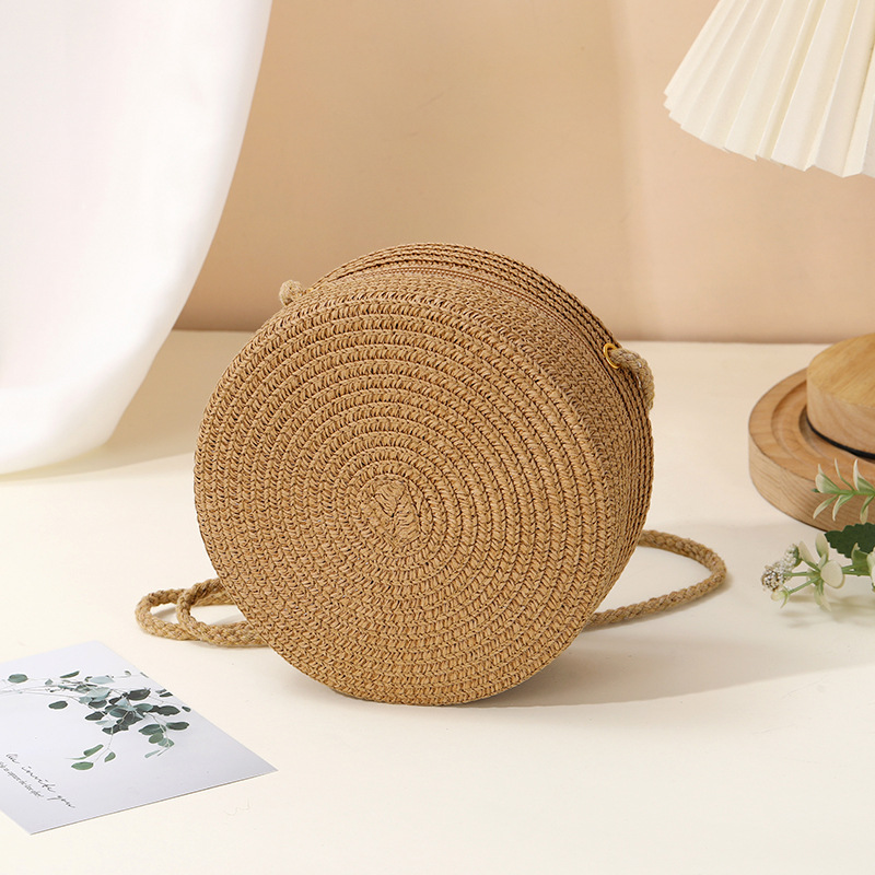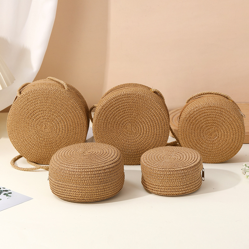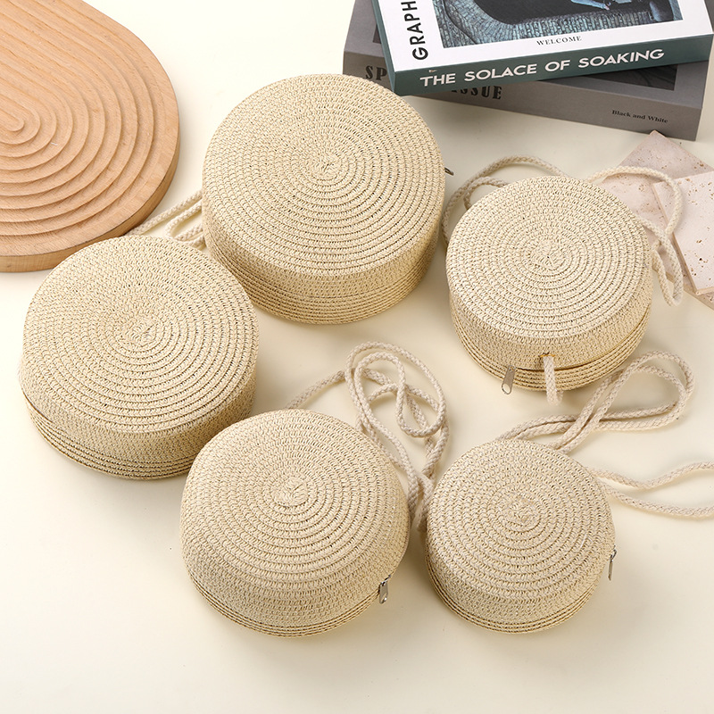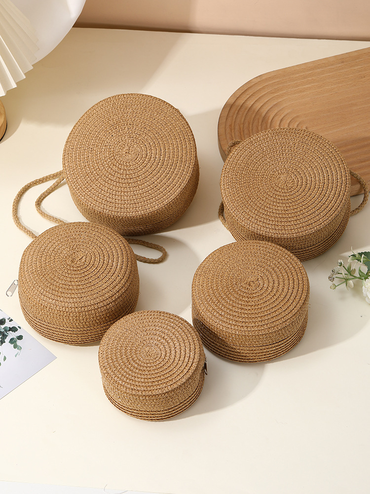 밀짚 가방 해변 짠 가방 여성 2025 새로운 입장 빛 럭셔리 스타일 밀짚 작은 라운드 가방 어린이 크로스 바디 작은 가방 비치 휴가스토어 가기