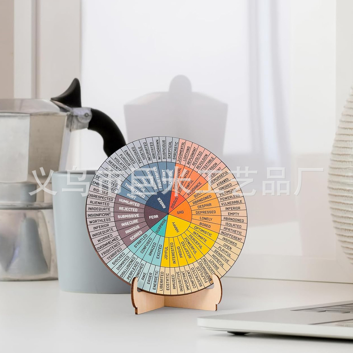 여성 남성을위한 스탠드가있는 양면 나무 정신 건강 사무실 감정 다이어그램 디스크 선물