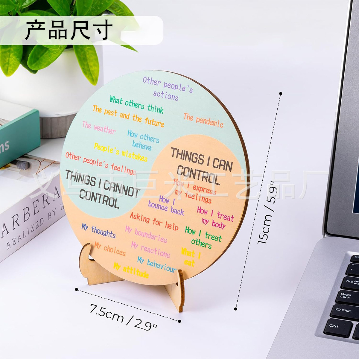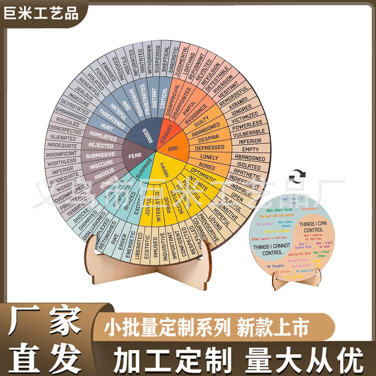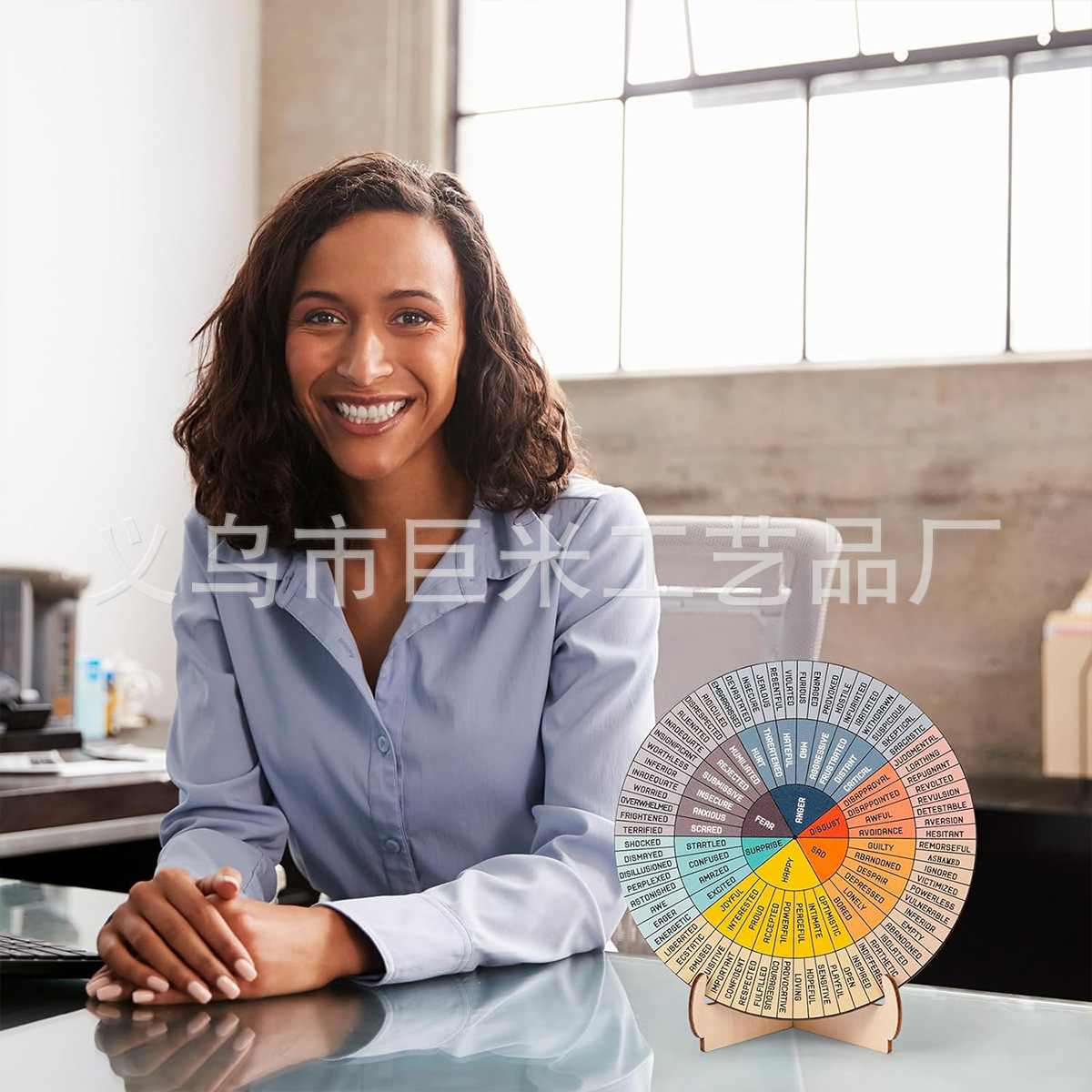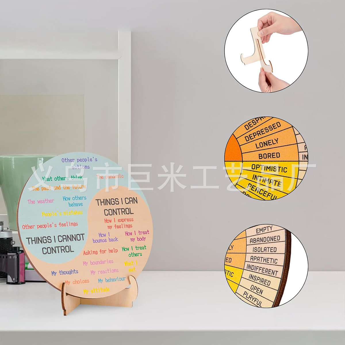 여성 남성을위한 스탠드가있는 양면 나무 정신 건강 사무실 감정 다이어그램 디스크 선물스토어 가기