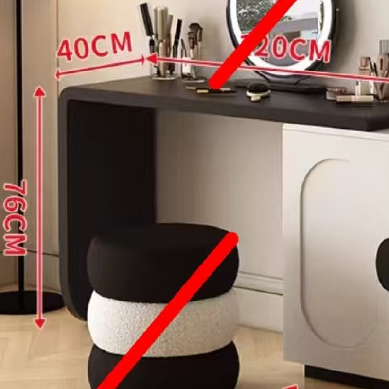 • 1.2m 화장대 + 1.2m 오픈 도어 서랍장 + 거울 + 원형 스툴