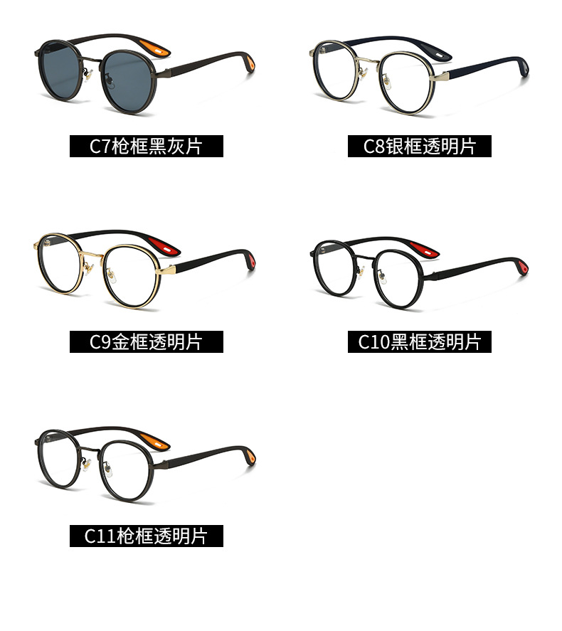 2025 새로운 국경 TR90 탄성 페인트 선글라스 사이버 유명한 선글라스 레트로 라운드 프레임 남성과 여성의 패션 안경스토어 가기