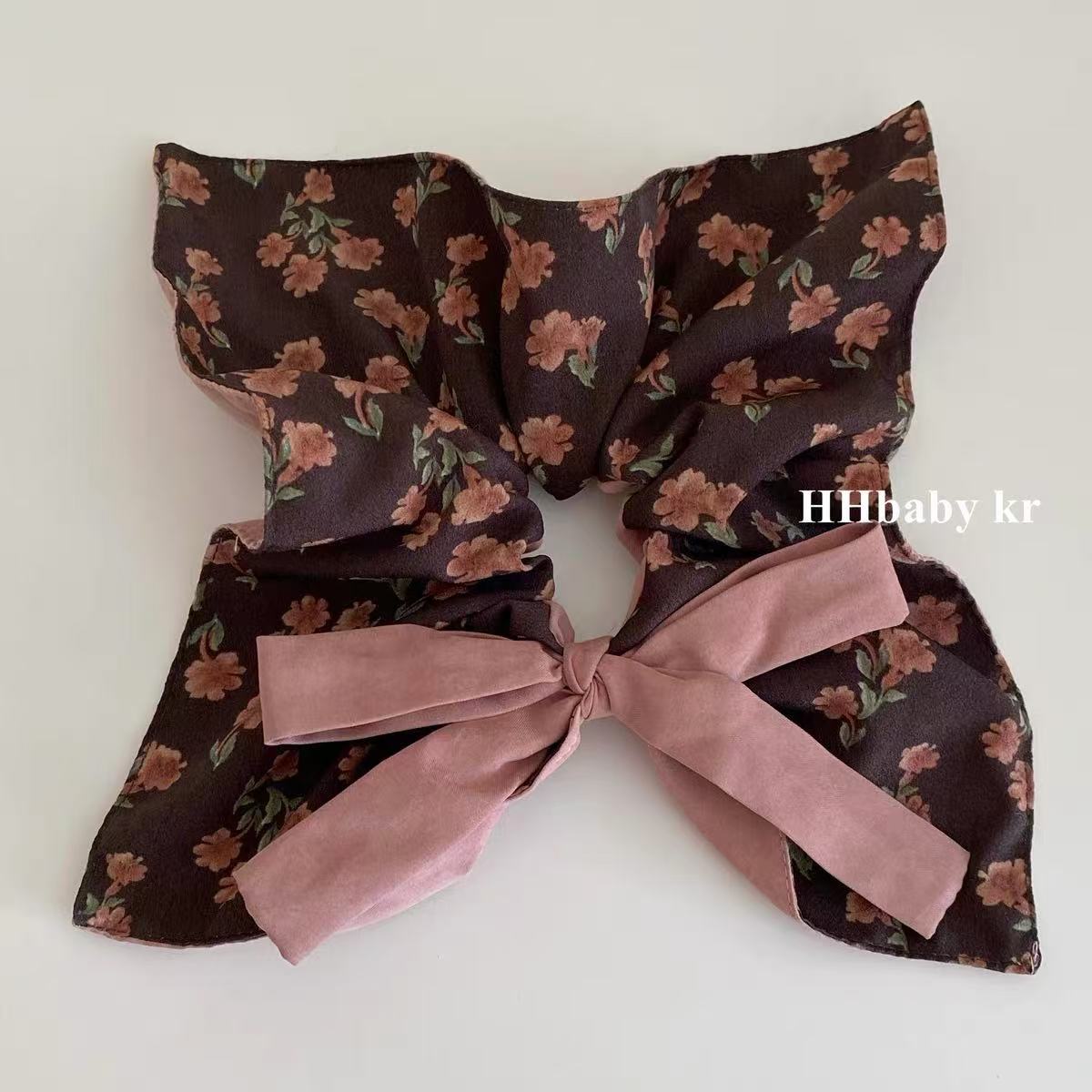 야마노 꽃 다크 브라운 활 꽃 광장 스카프 큰 장내 머리 반지 여성의 하이 엔드 낮은 느낌 포니 테일 스퀘어 머리 장식 헤드 라인스토어 가기