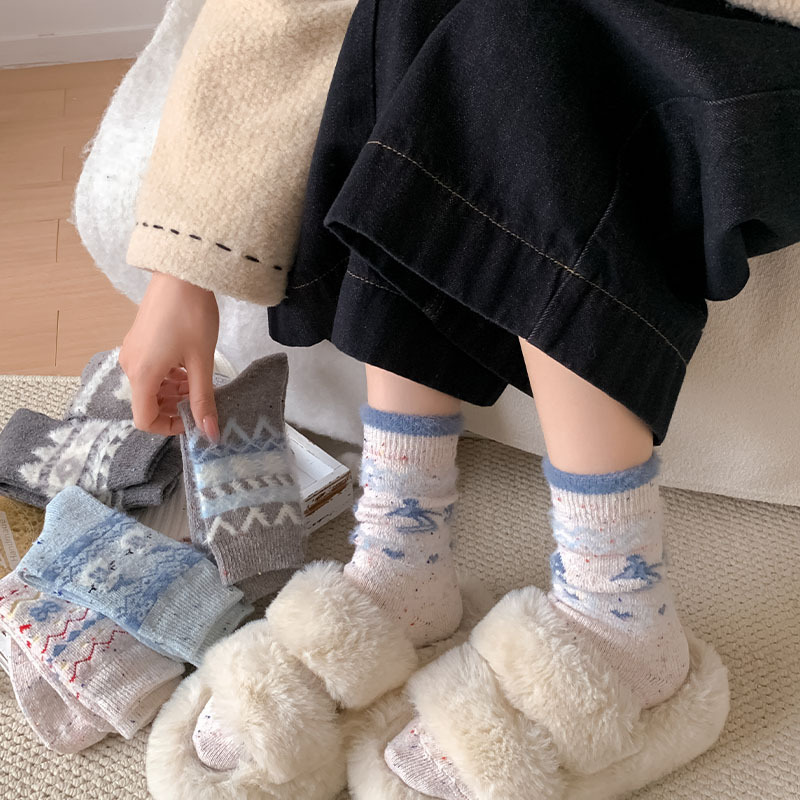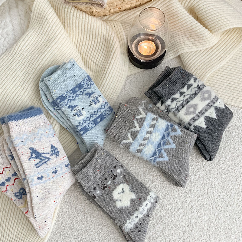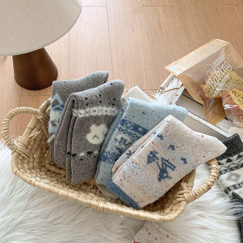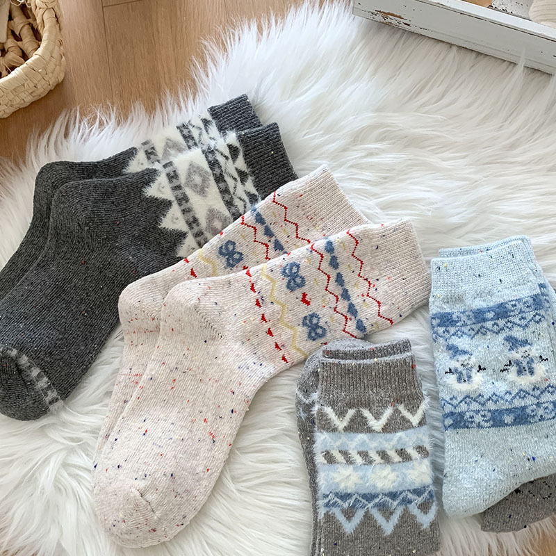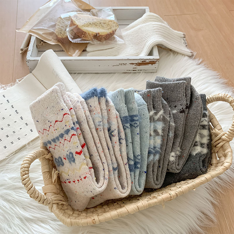 한국 스타일의 부드러운 아이보리 활 양말 여성의 가을과 겨울 두꺼운 따뜻한 일본 스타일 간단한 회색 다이아몬드 양모 양말스토어 가기