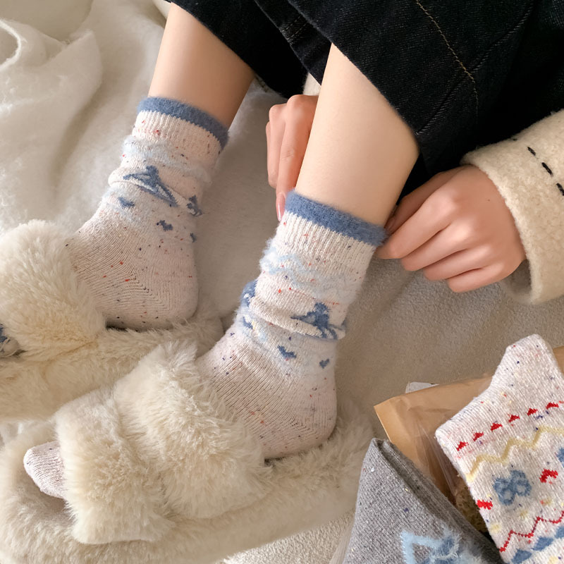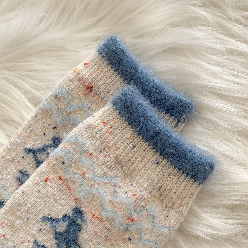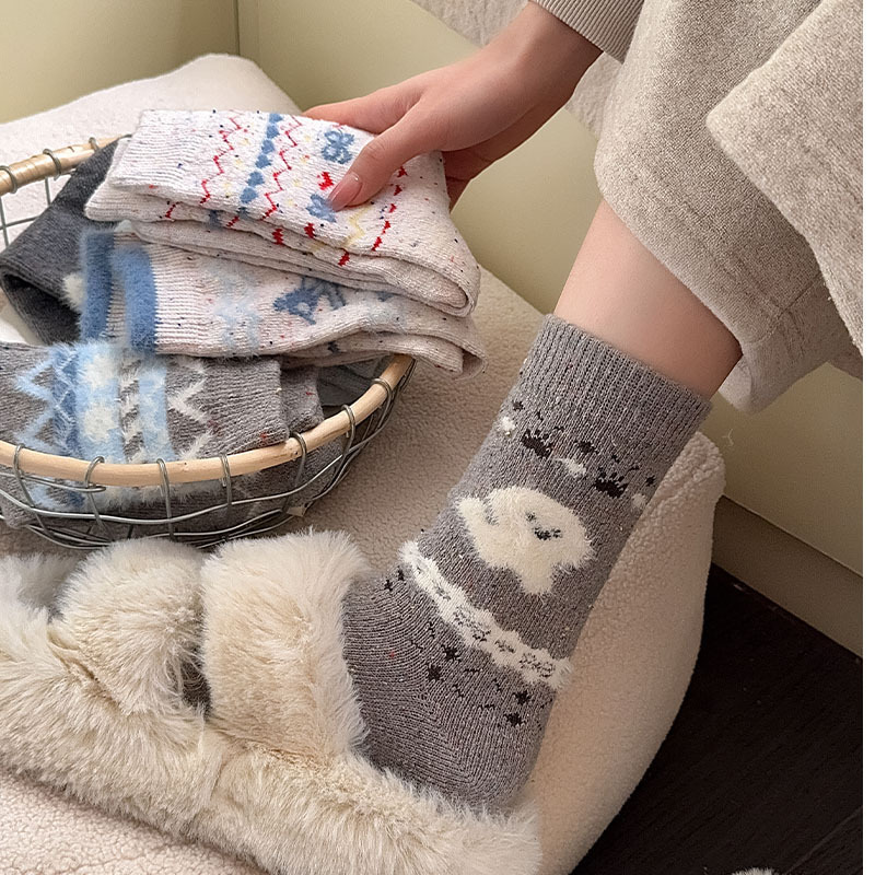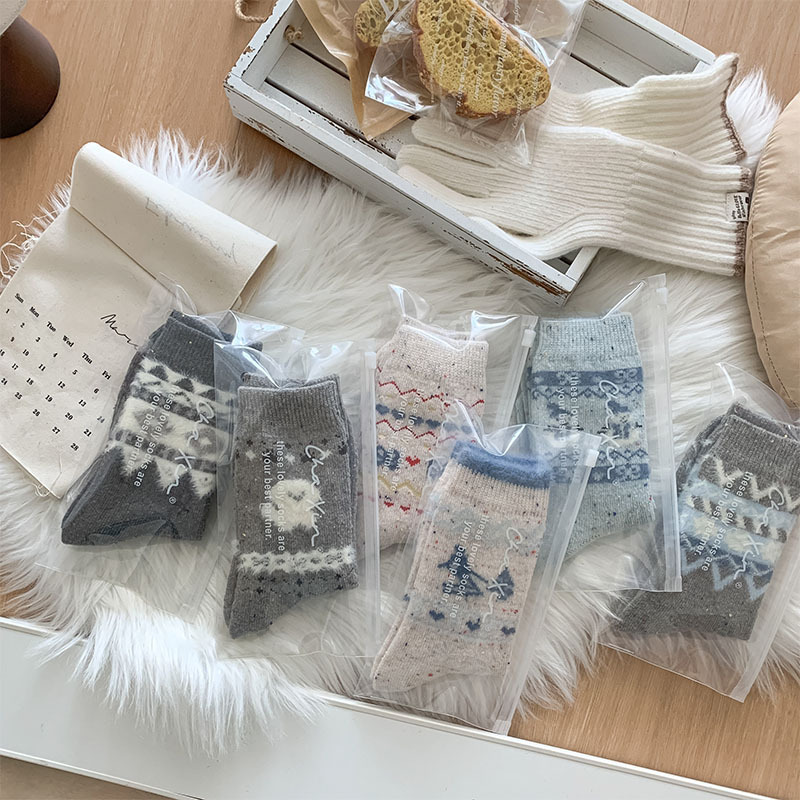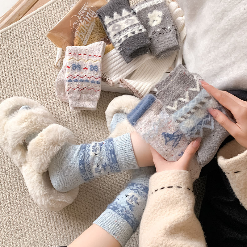 한국 스타일의 부드러운 아이보리 활 양말 여성의 가을과 겨울 두꺼운 따뜻한 일본 스타일 간단한 회색 다이아몬드 양모 양말스토어 가기