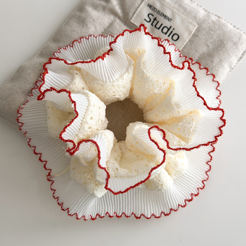 빈티지 한국식 틈새 디자인 수제 레이스 플리츠 레이스 헤어 링 더블 레이어 장내 링 헤어 로프 여성을위한 간단한 헤어 액세서리