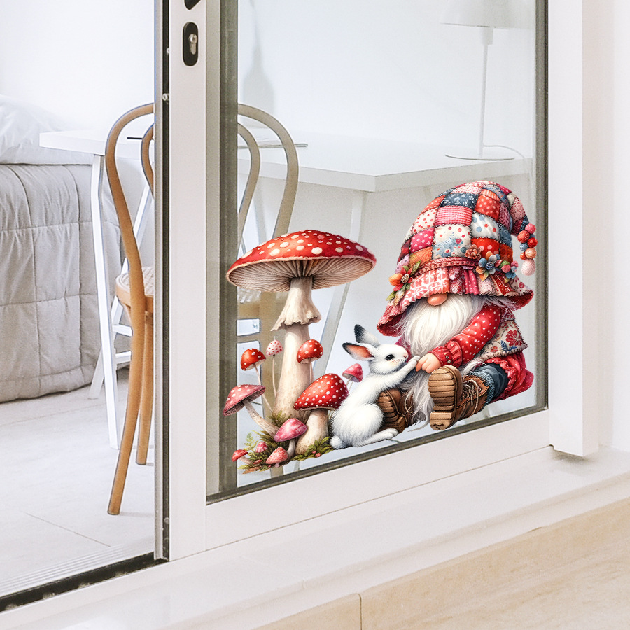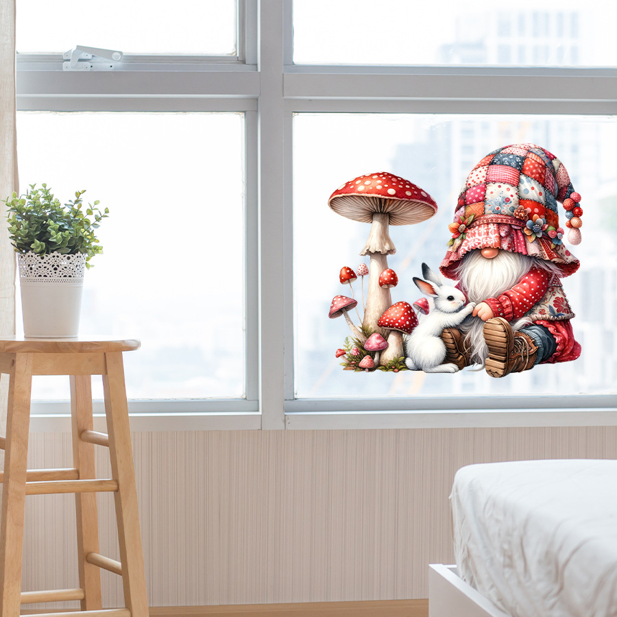 귀여운 만화 고블린 노인 버섯 토끼 자체 접착 창 스티커 유리 양면 시각적 장식 스티커 BR3397C