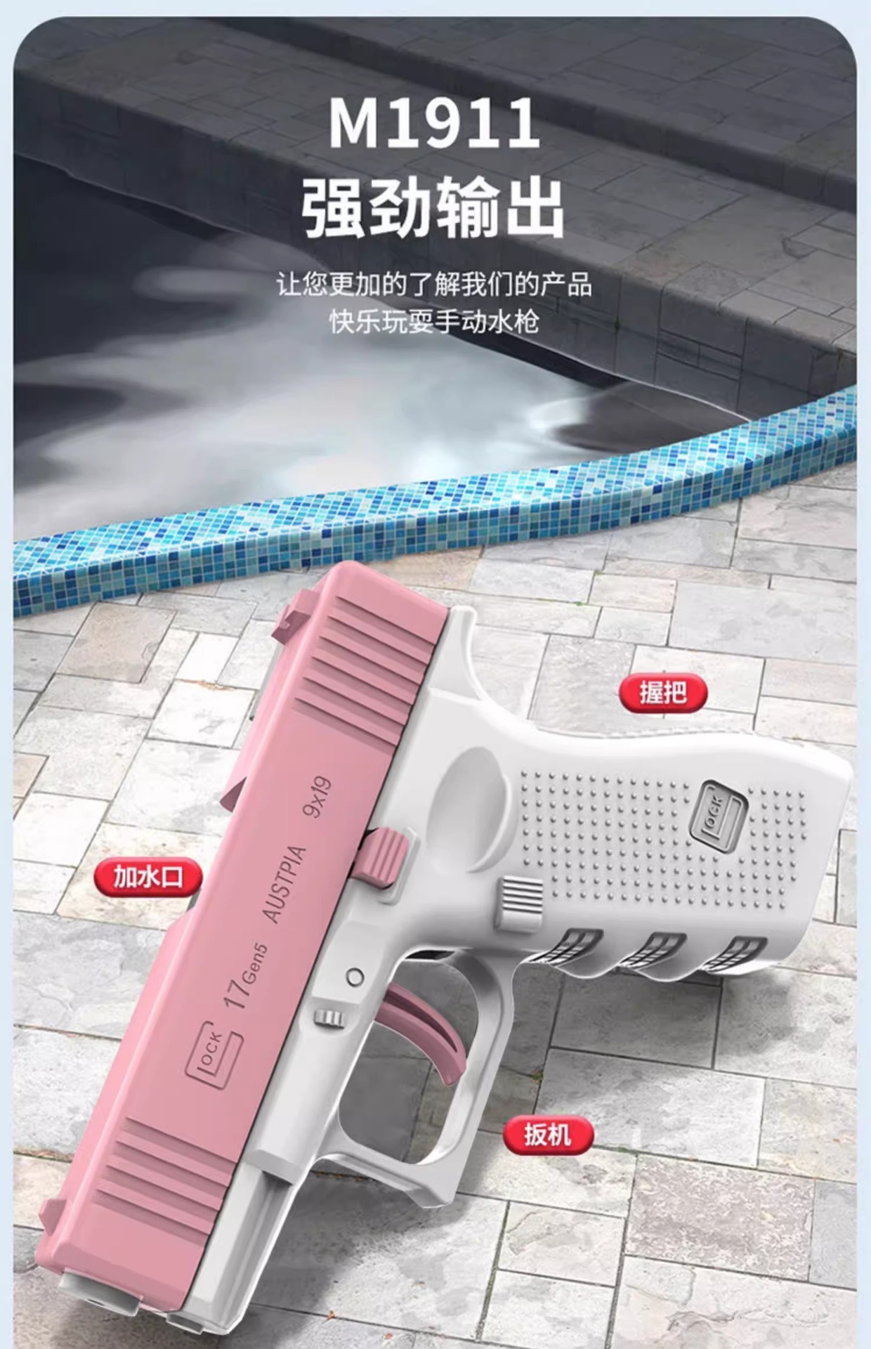 • 핑크 1911 수동 버스트 물총 [13.5cm] OPP 가방