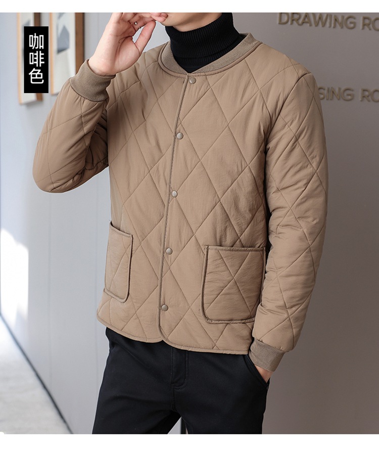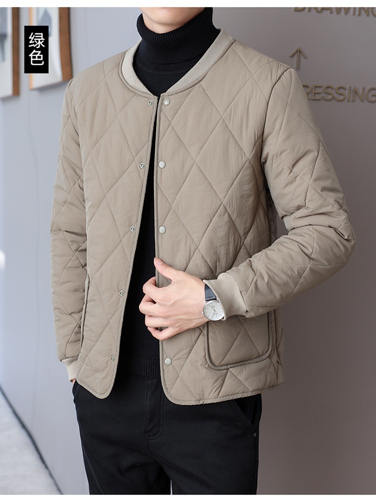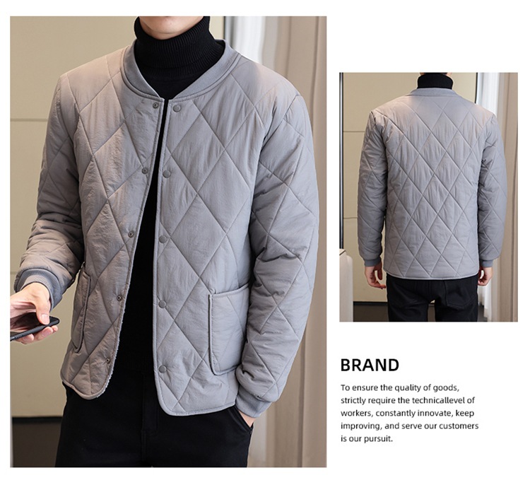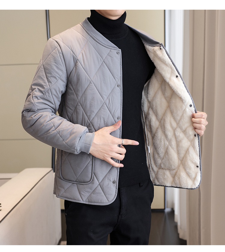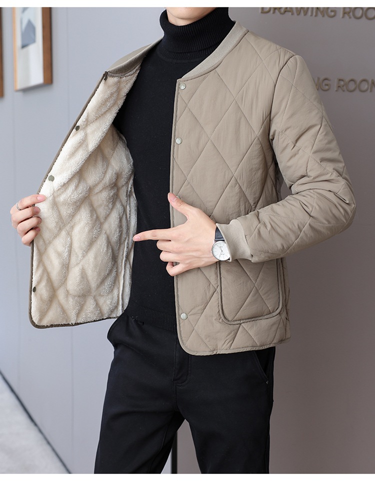 가을과 겨울 남성용 기모 내부 컨테이너 새로운 착용 가까운 피부 친화적 인 작은면 패딩 재킷 가을 단색 스탠드 칼라 카디건 코트 남성스토어 가기