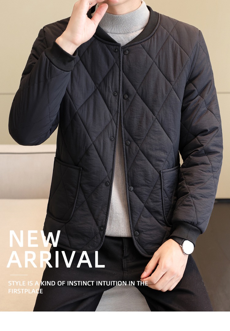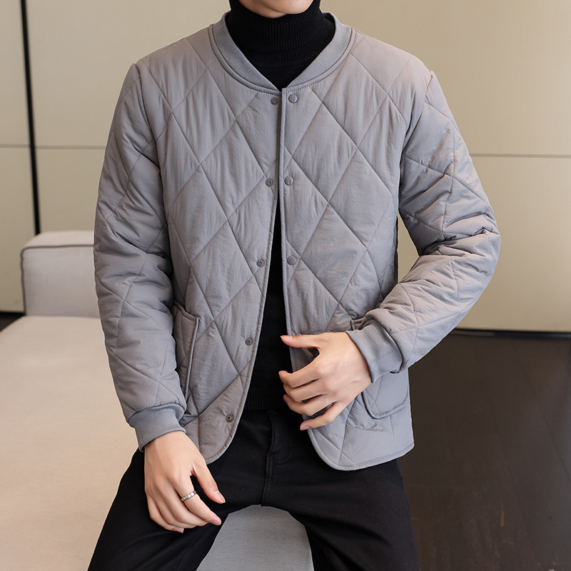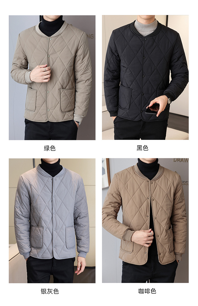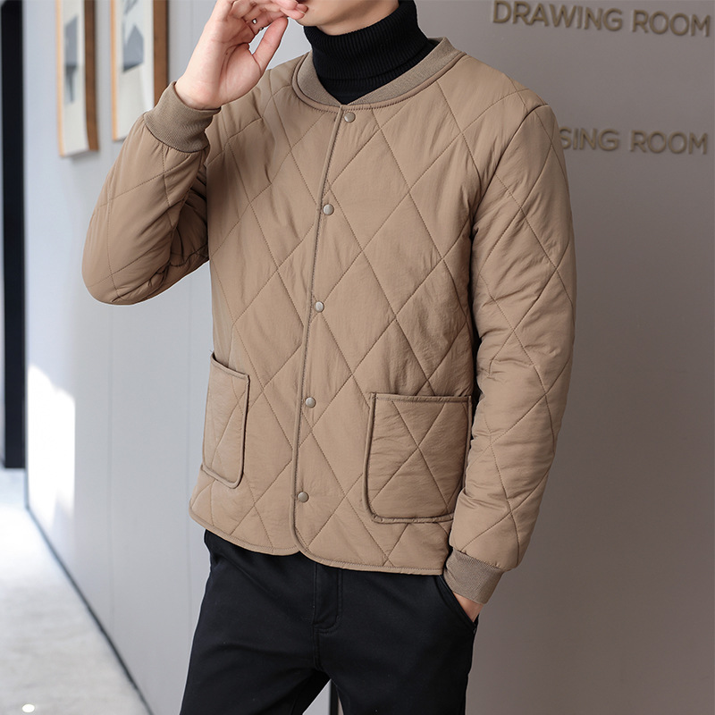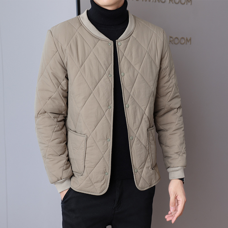 가을과 겨울 남성용 기모 내부 컨테이너 새로운 착용 가까운 피부 친화적 인 작은면 패딩 재킷 가을 단색 스탠드 칼라 카디건 코트 남성스토어 가기