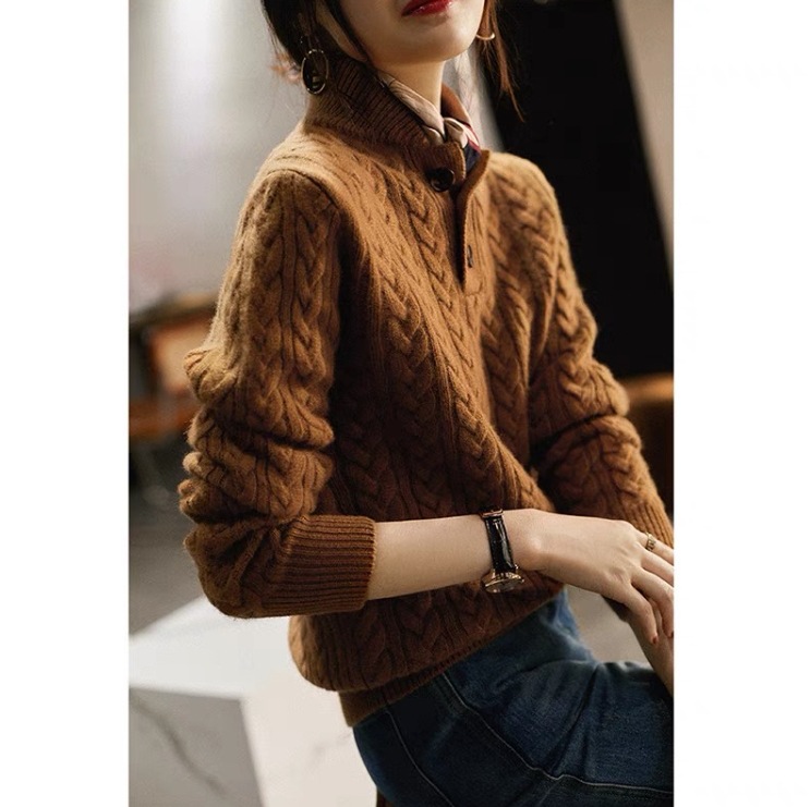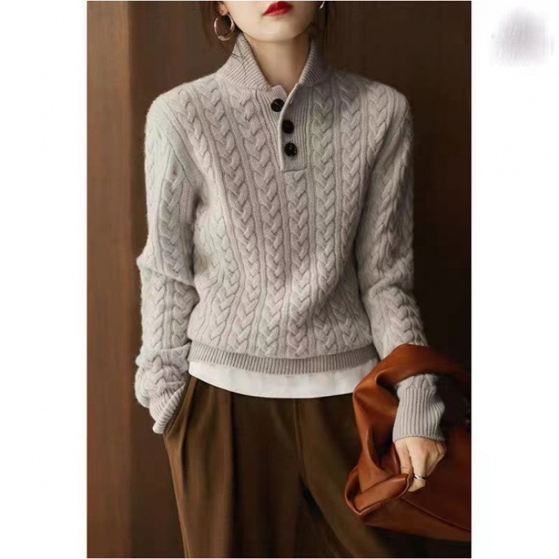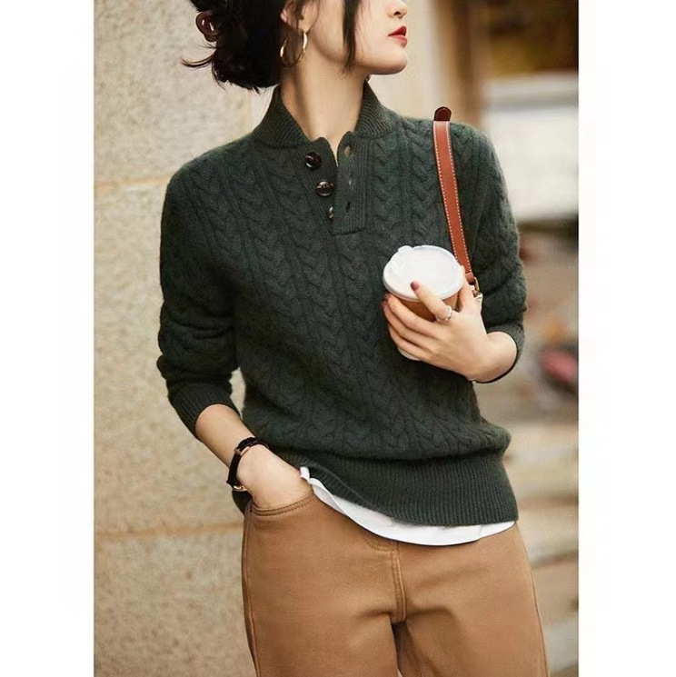 야구 칼라 트위스트 텍스처 니트 스웨터 여성용 2025 다용도 심플 솔리드 컬러 가을 겨울 신상 레트로 베이스 레이어 탑스토어 가기