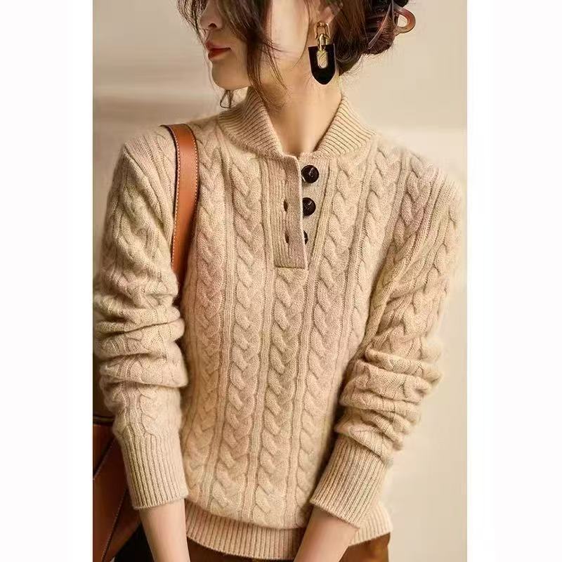 야구 칼라 트위스트 텍스처 니트 스웨터 여성용 2025 다용도 심플 솔리드 컬러 가을 겨울 신상 레트로 베이스 레이어 탑