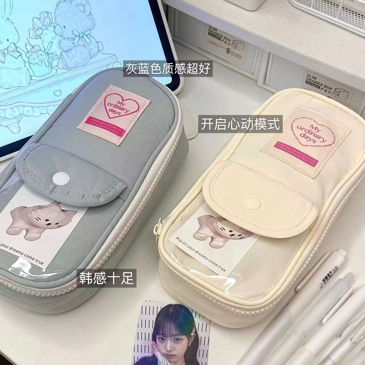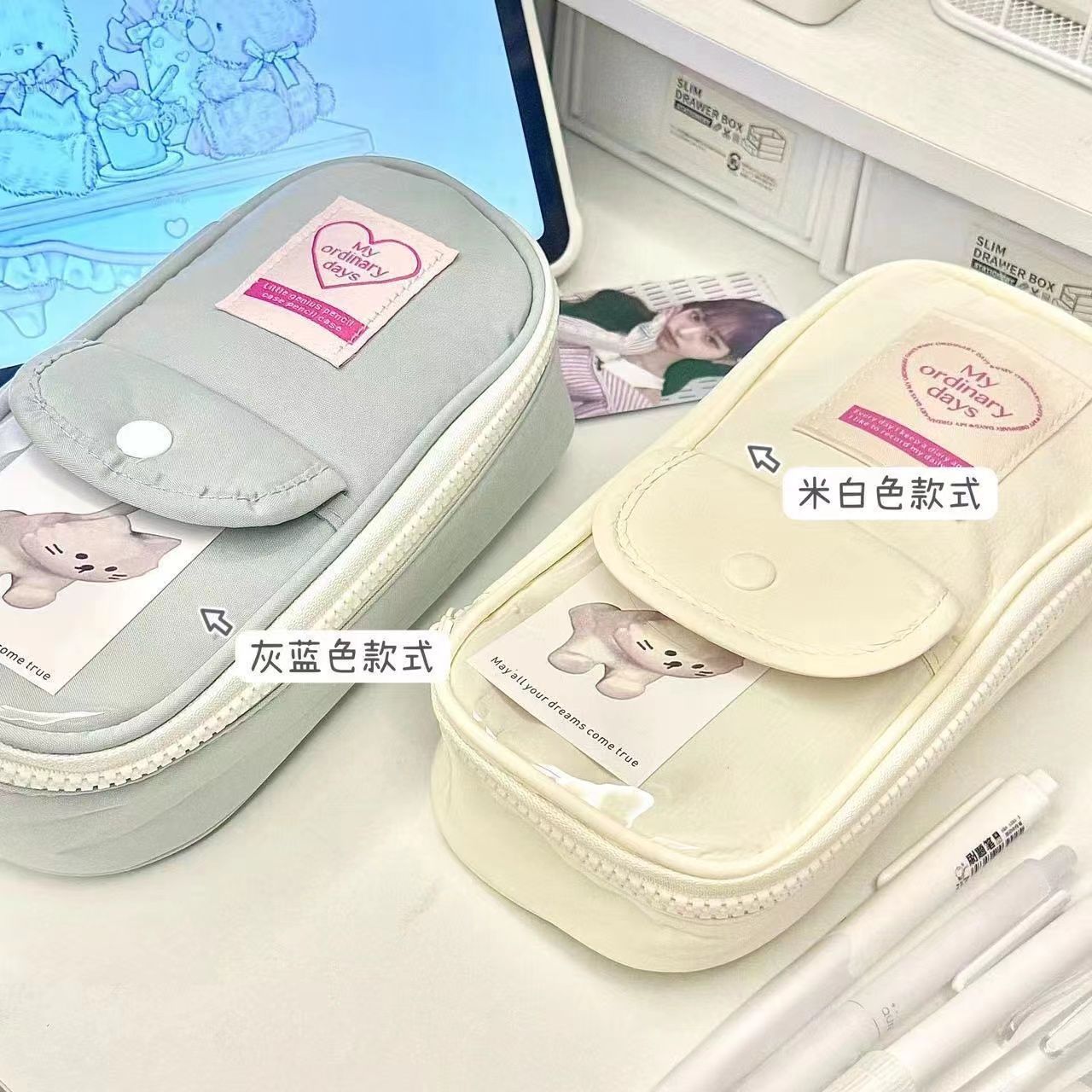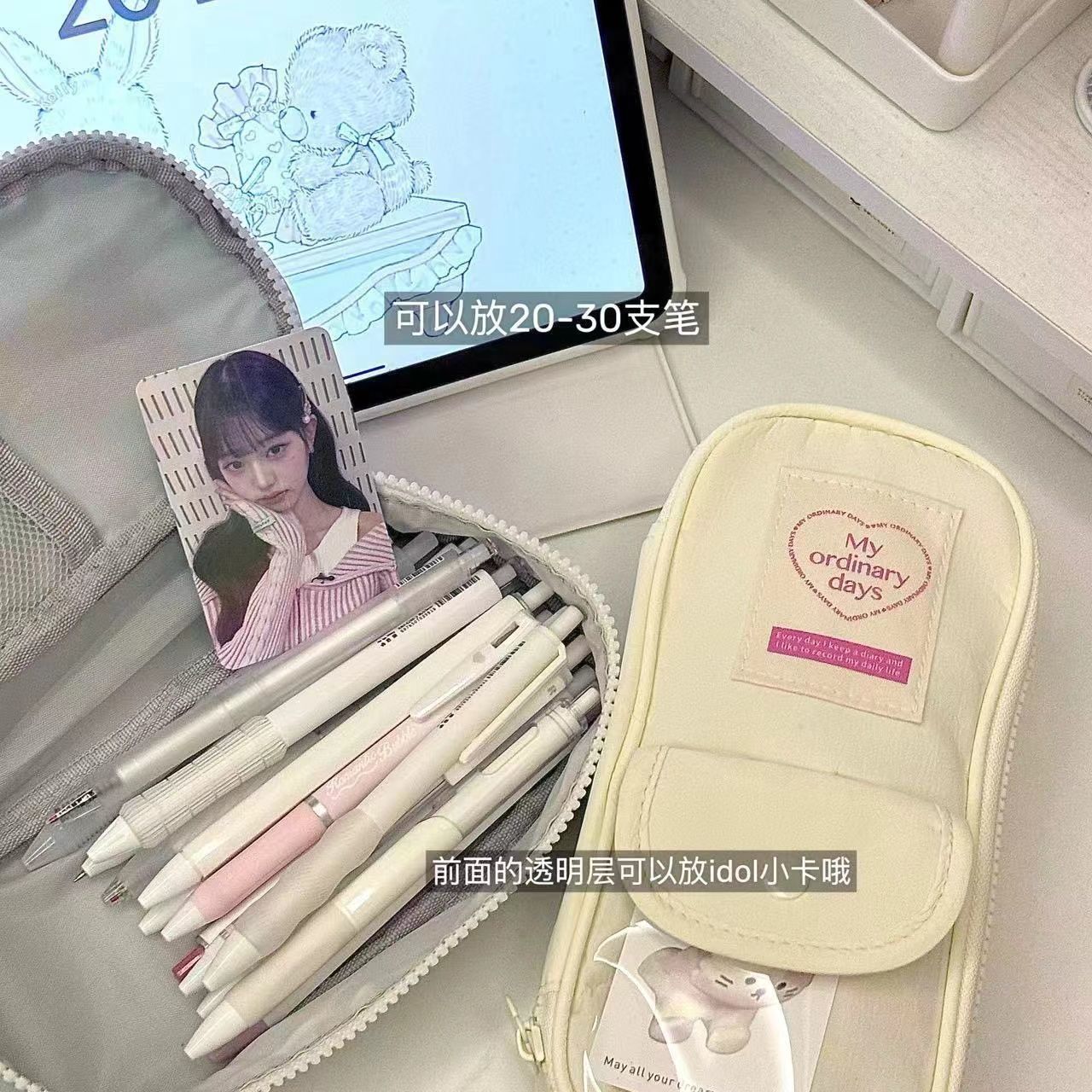 중학교 고등학생을위한 새로운 일본 레트로 더블 지퍼 연필 케이스 대용량 다층 다기능 문구 보관 연필 케이스