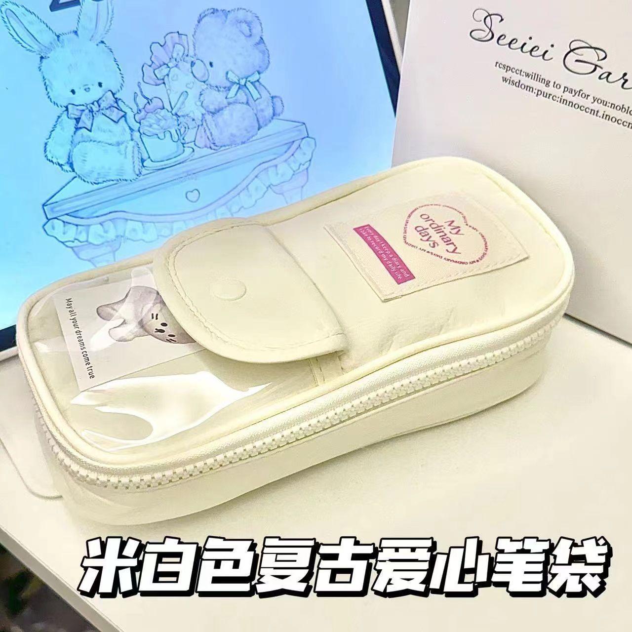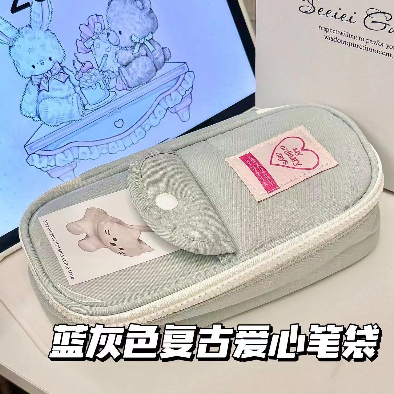 중학교 고등학생을위한 새로운 일본 레트로 더블 지퍼 연필 케이스 대용량 다층 다기능 문구 보관 연필 케이스스토어 가기