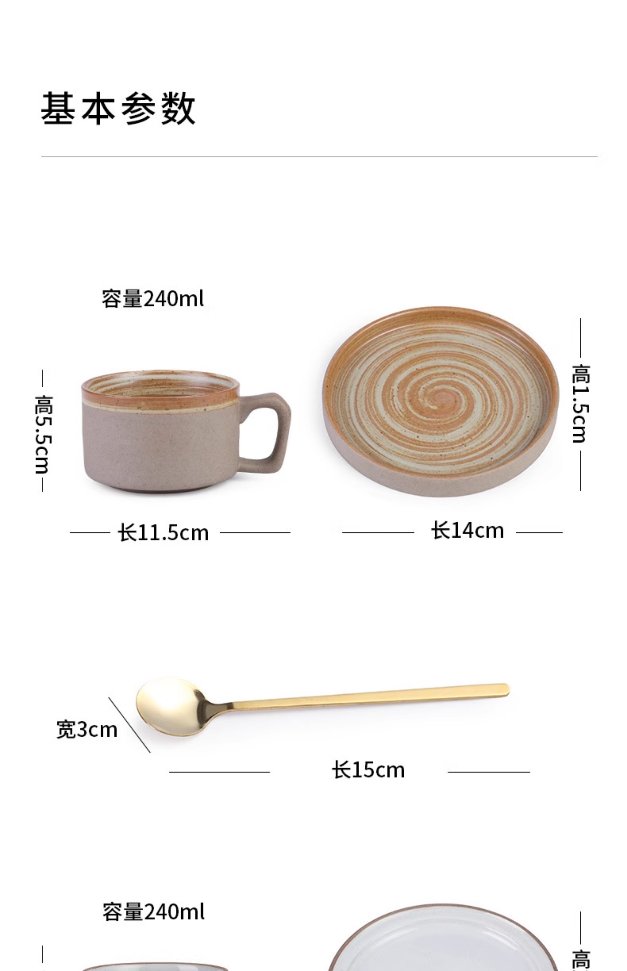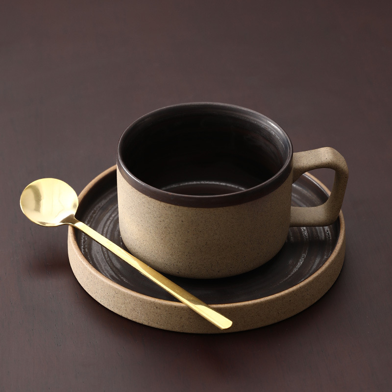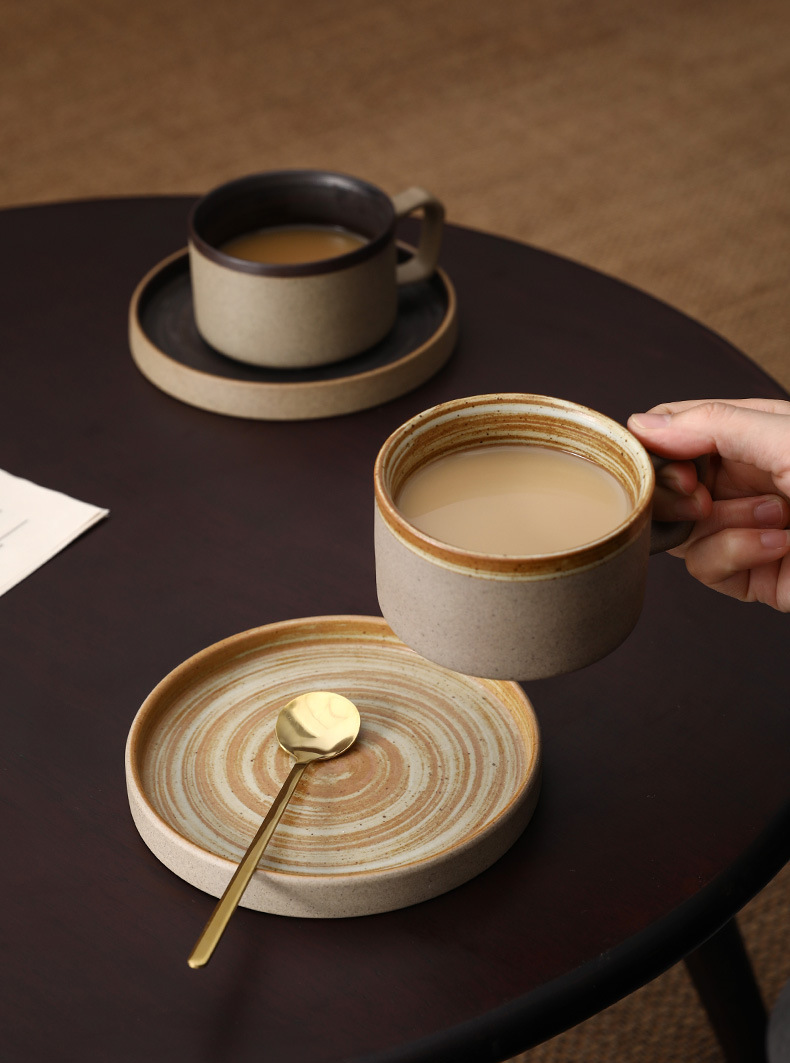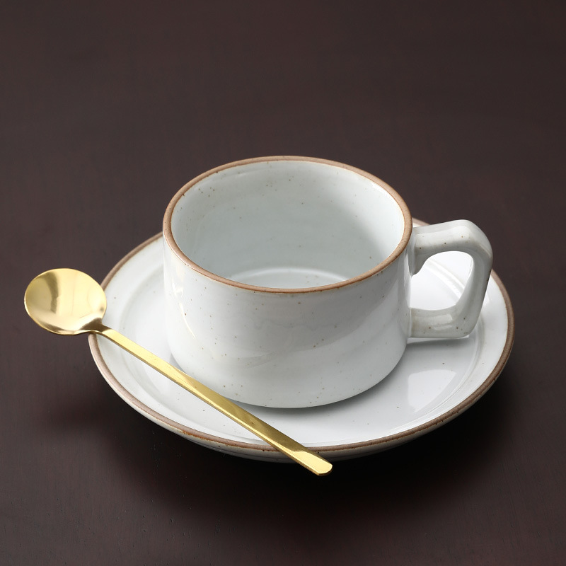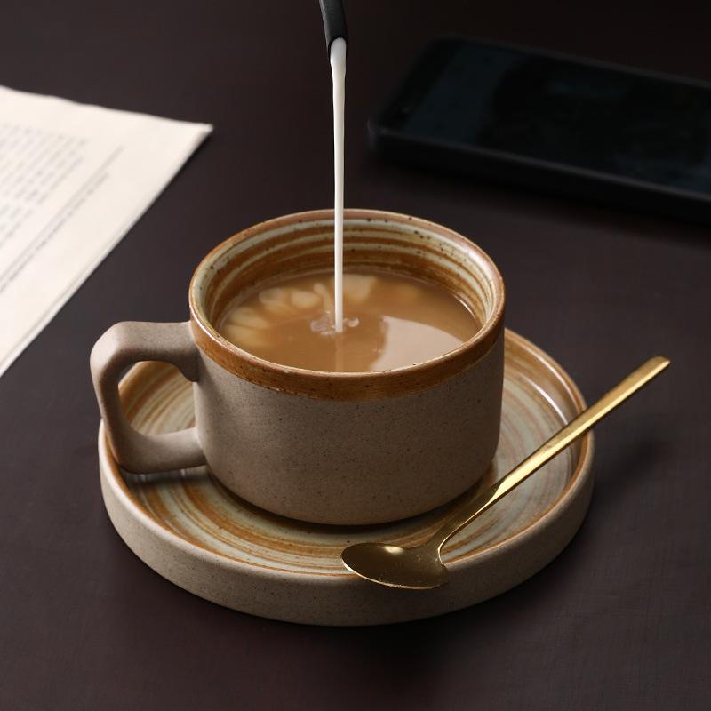♡ 스쿠프 세라믹 일본 수제 커피 컵과 접시 세트 스푼 애프터눈 티 머그잔 우유 오트밀 아침 식사 컵스토어 가기