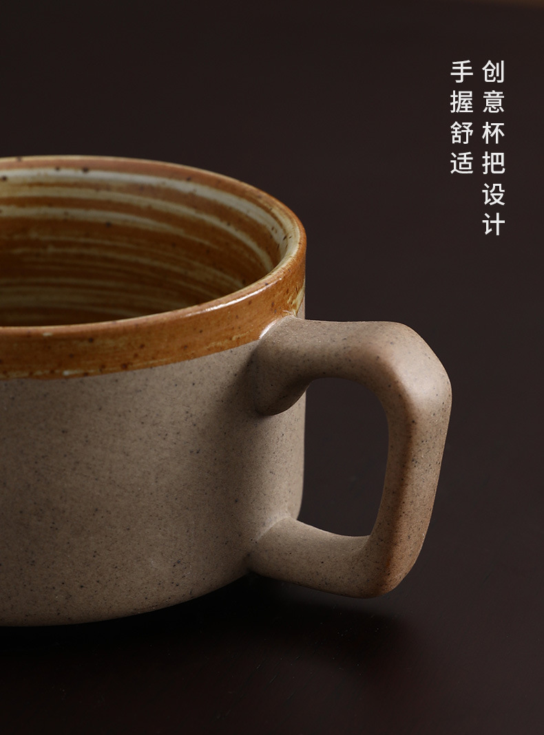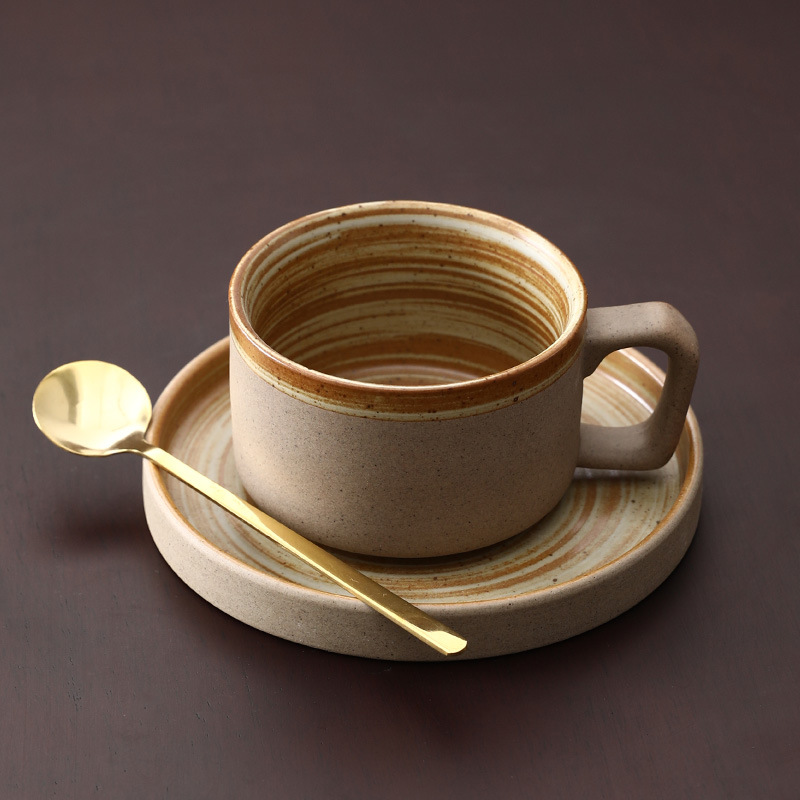 ♡ 스쿠프 세라믹 일본 수제 커피 컵과 접시 세트 스푼 애프터눈 티 머그잔 우유 오트밀 아침 식사 컵