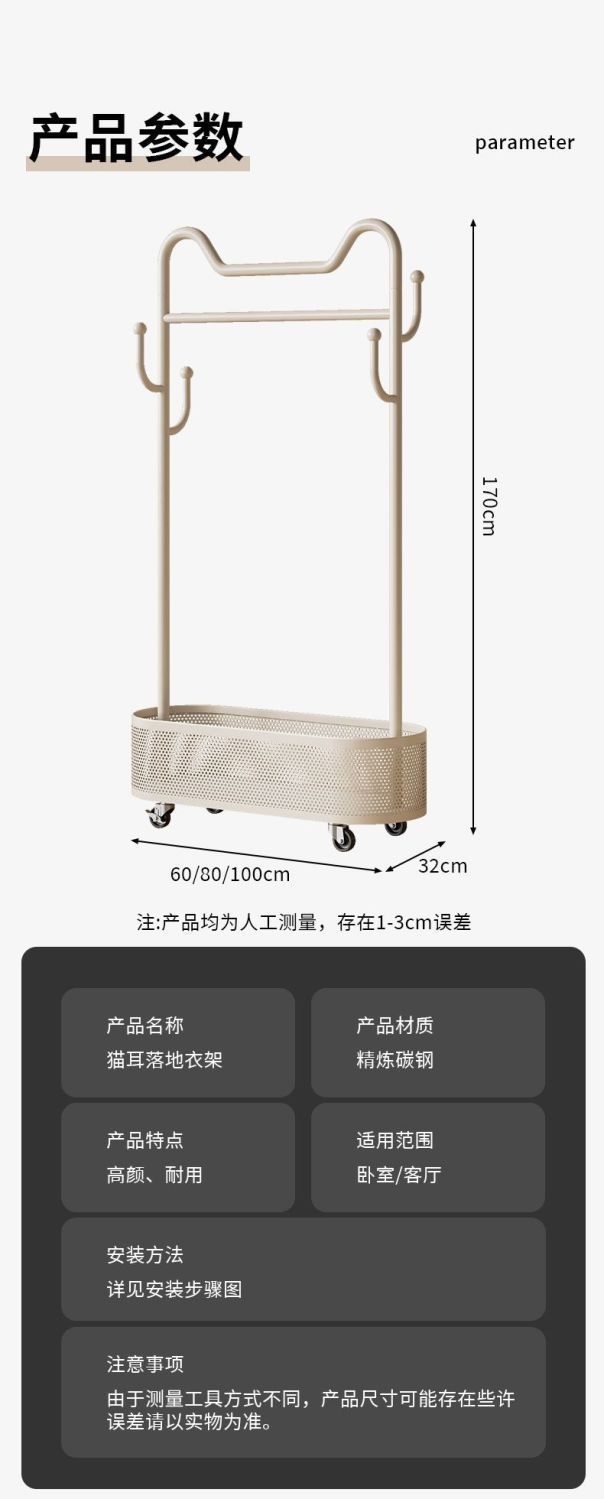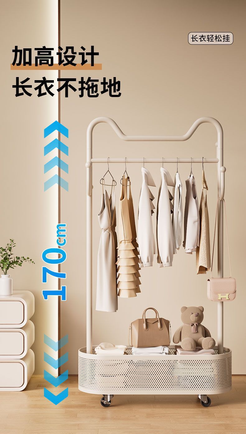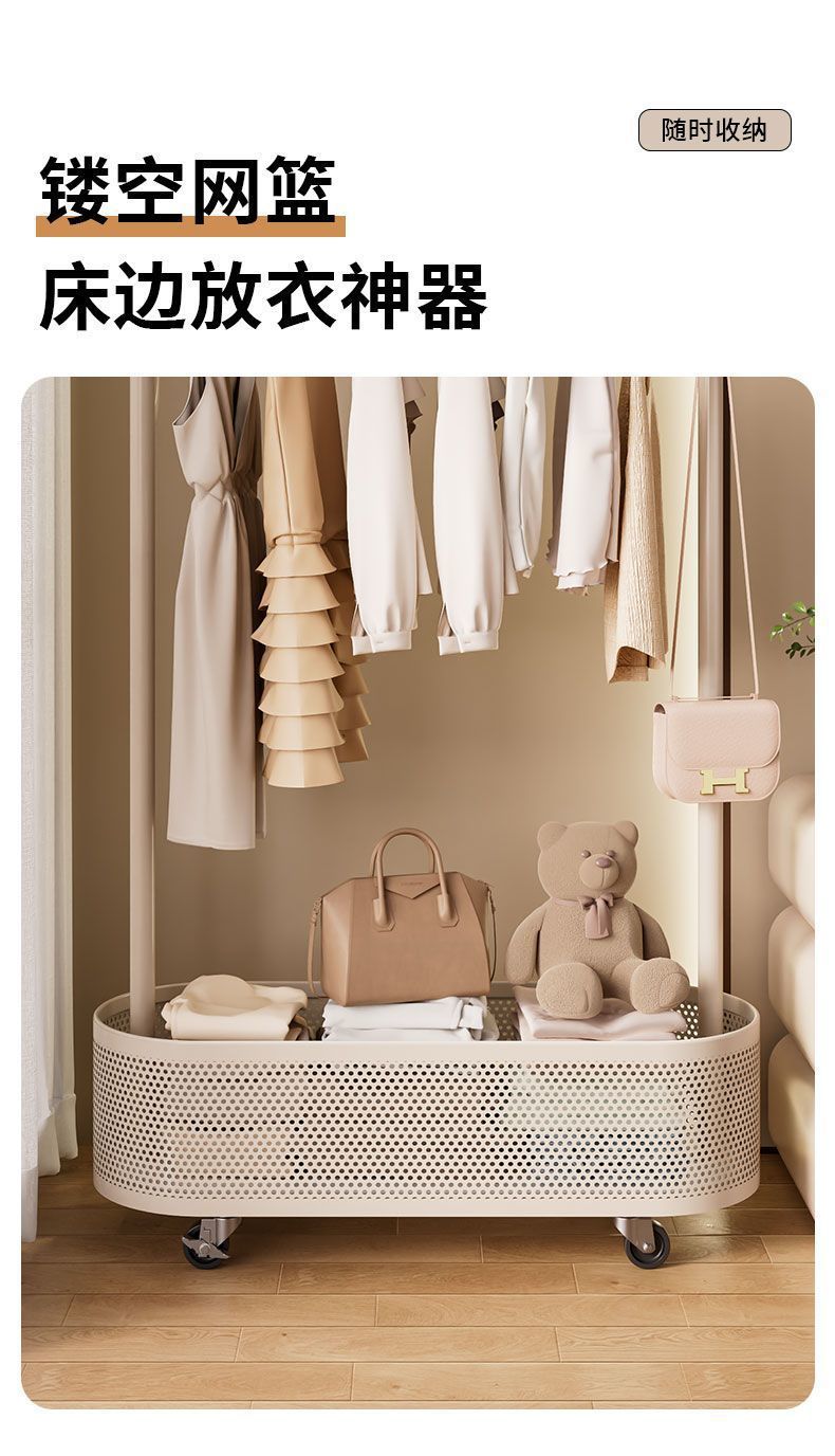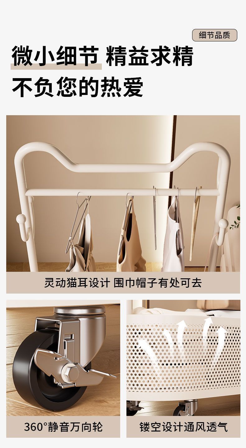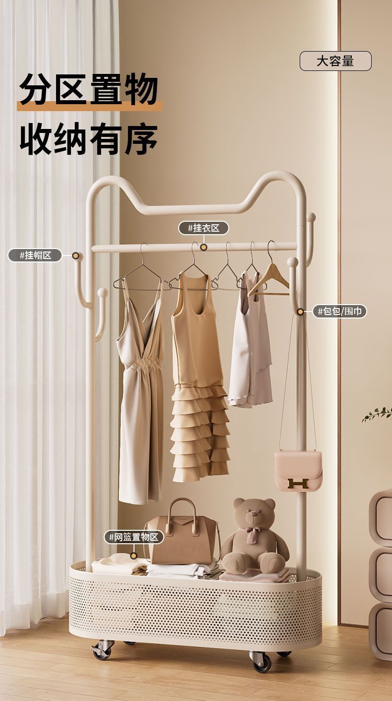 옷 옷걸이 바닥 침실 모바일 의류 옷걸이 공장 도매 저장 가정용 크림 빛 고급 간단한 코트 랙