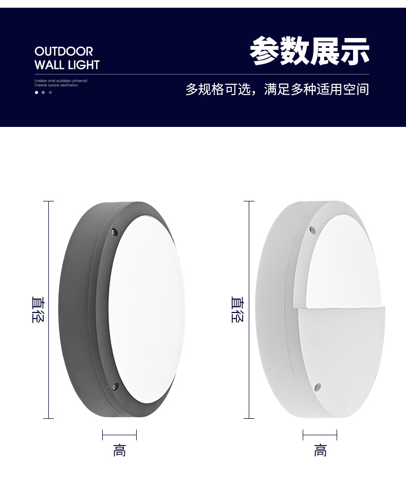 다이캐스트 알루미늄 삼중 보호 야외 발코니 IP65 20W 30W 대문 정원 원형 LED 방습 벽등 정원 벽등스토어 가기