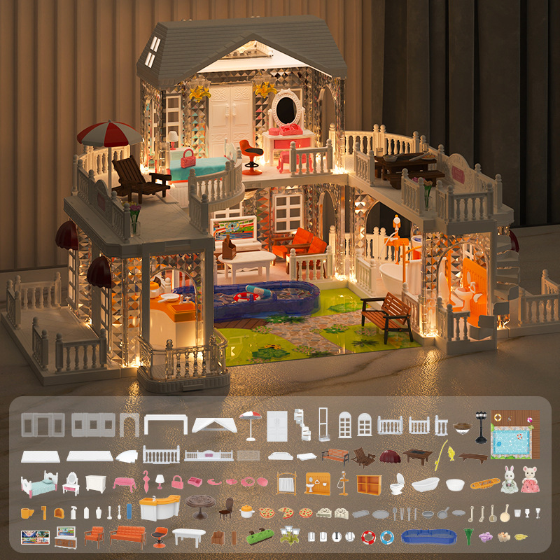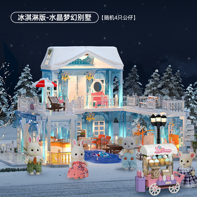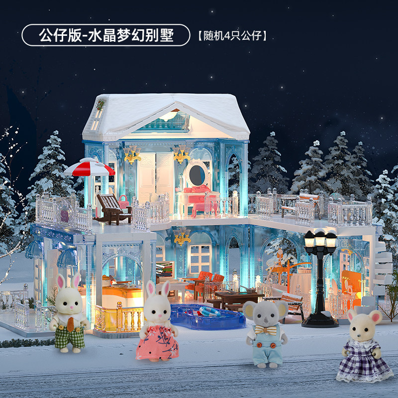 어린이 장난감 소꿉놀이 소녀 조립식 블록 장식품 크리스탈 시리즈 빌라 인형의 집 소녀 미니 하우스