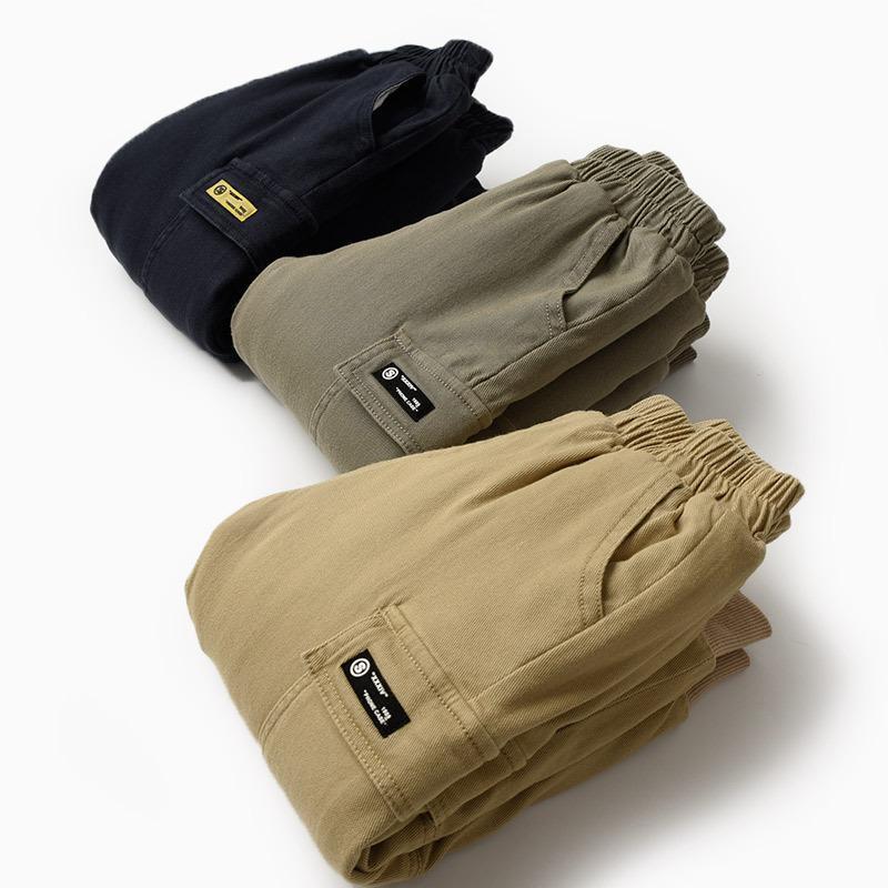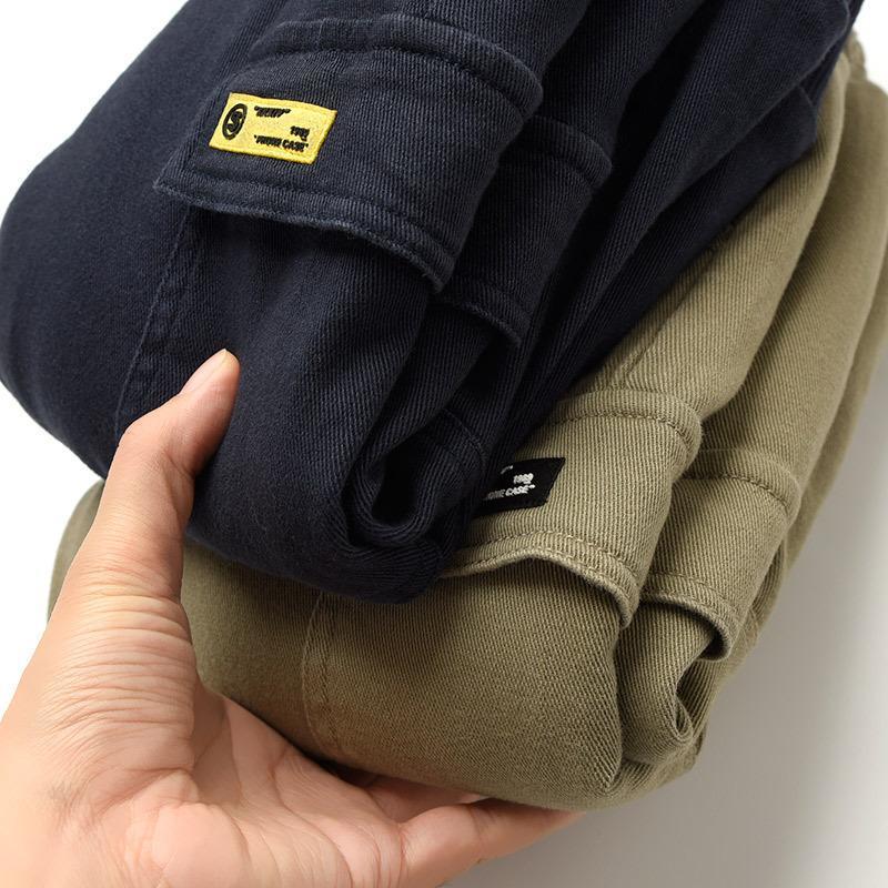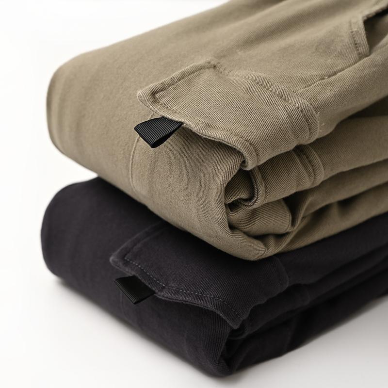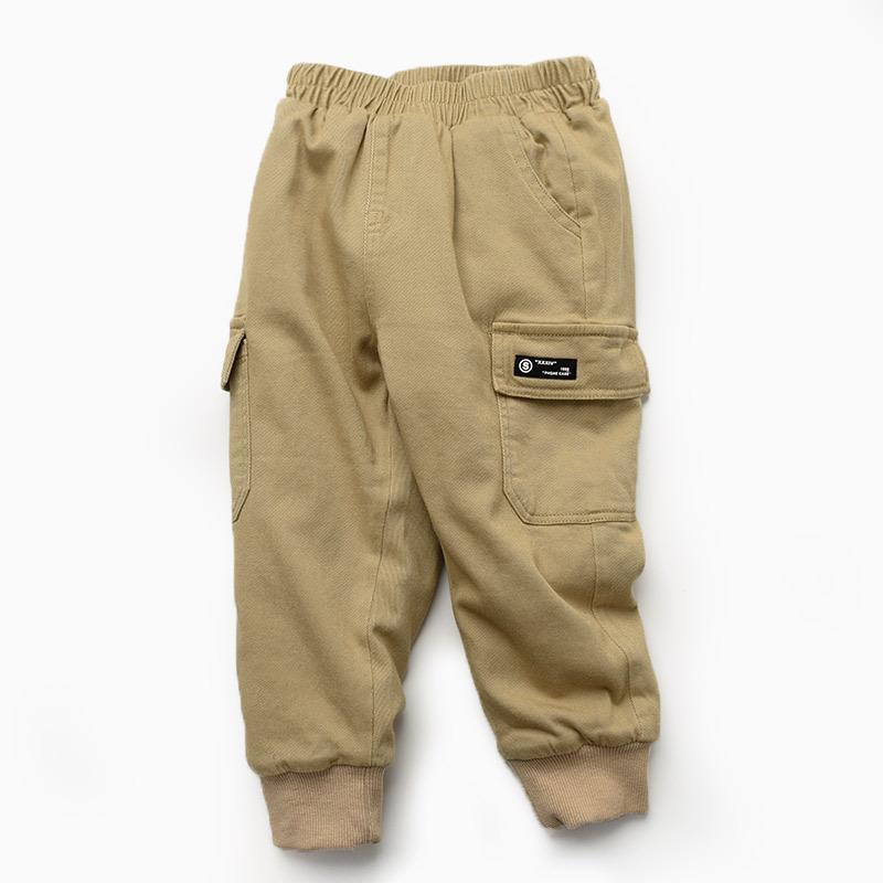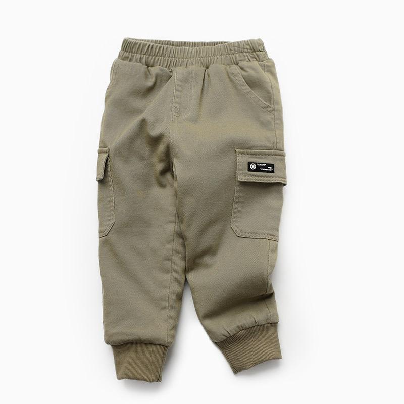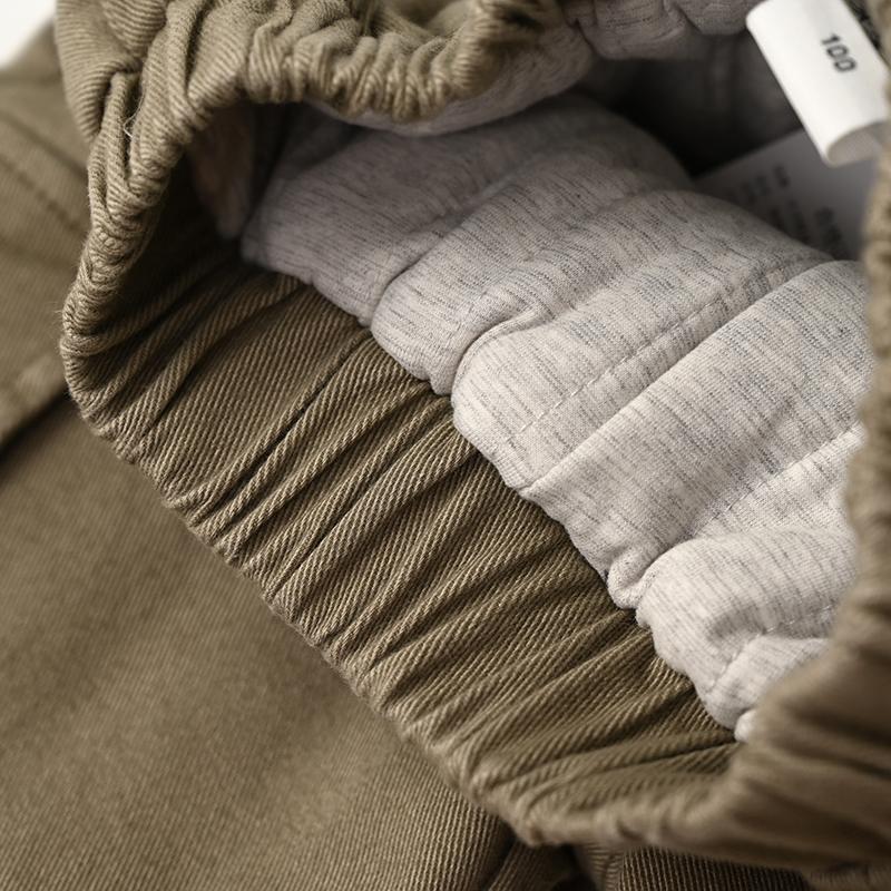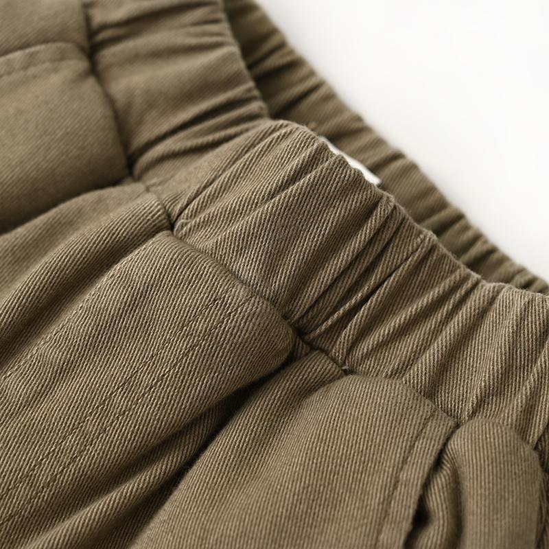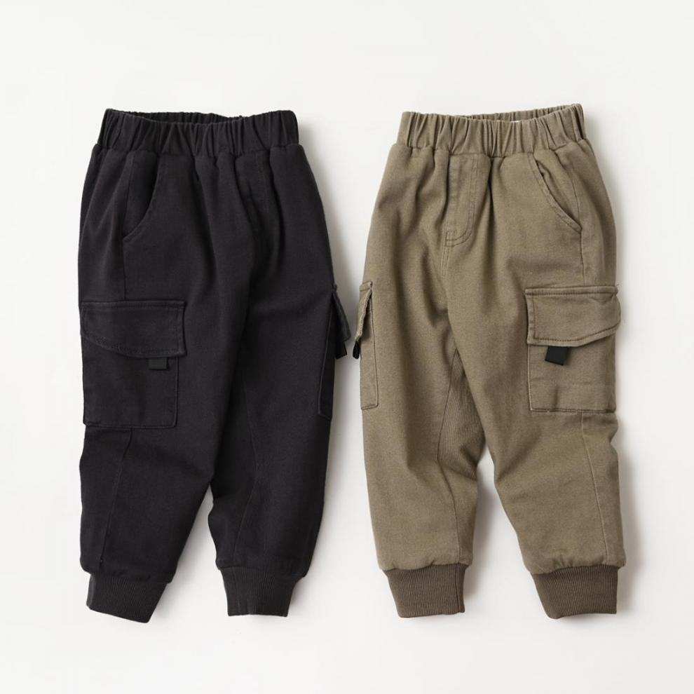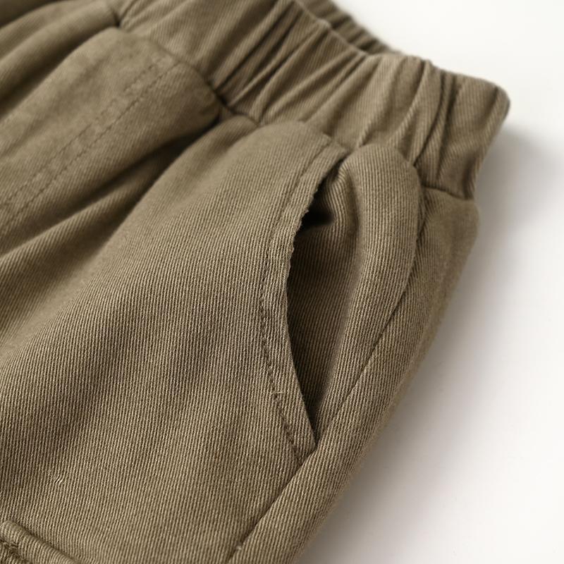 • 카키 사이드 포켓 카고 코튼 팬츠