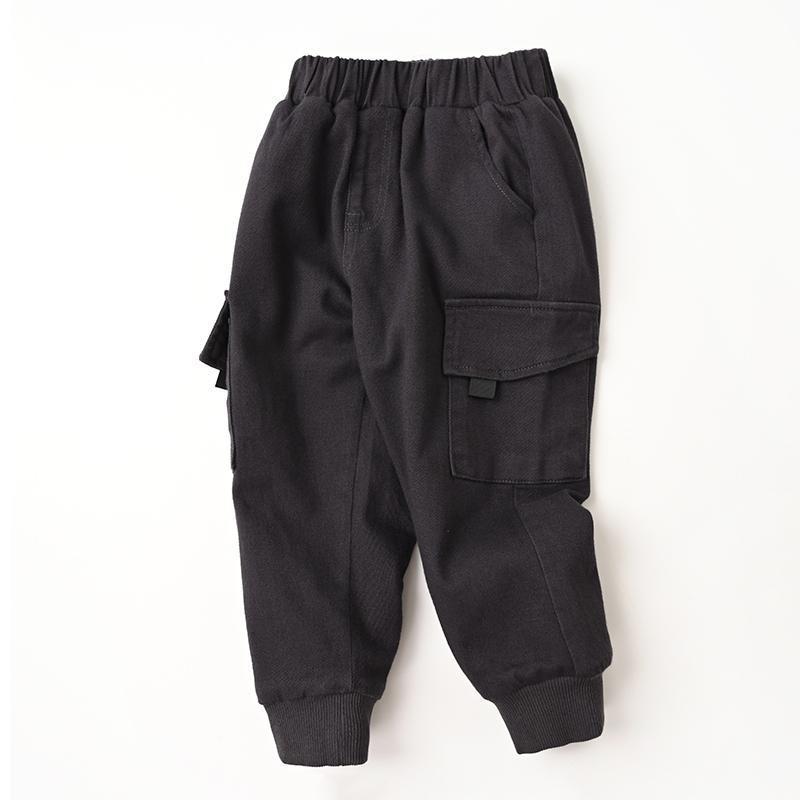 • 블랙 사이드 포켓 카고 코튼 팬츠