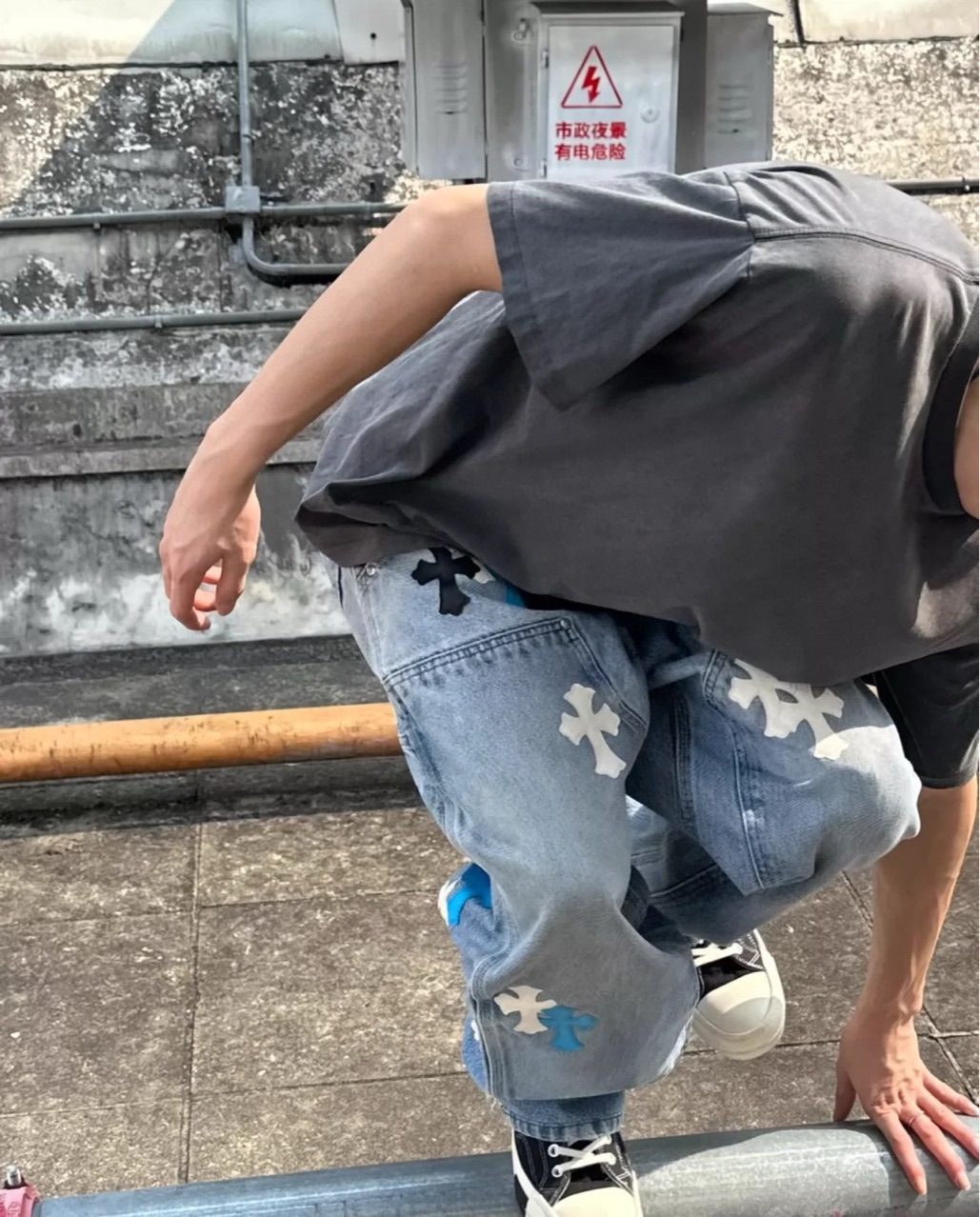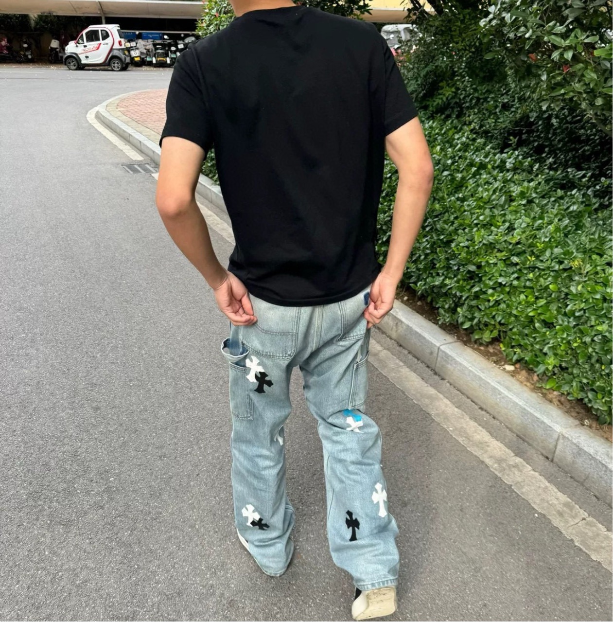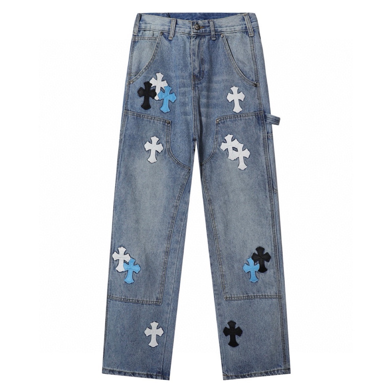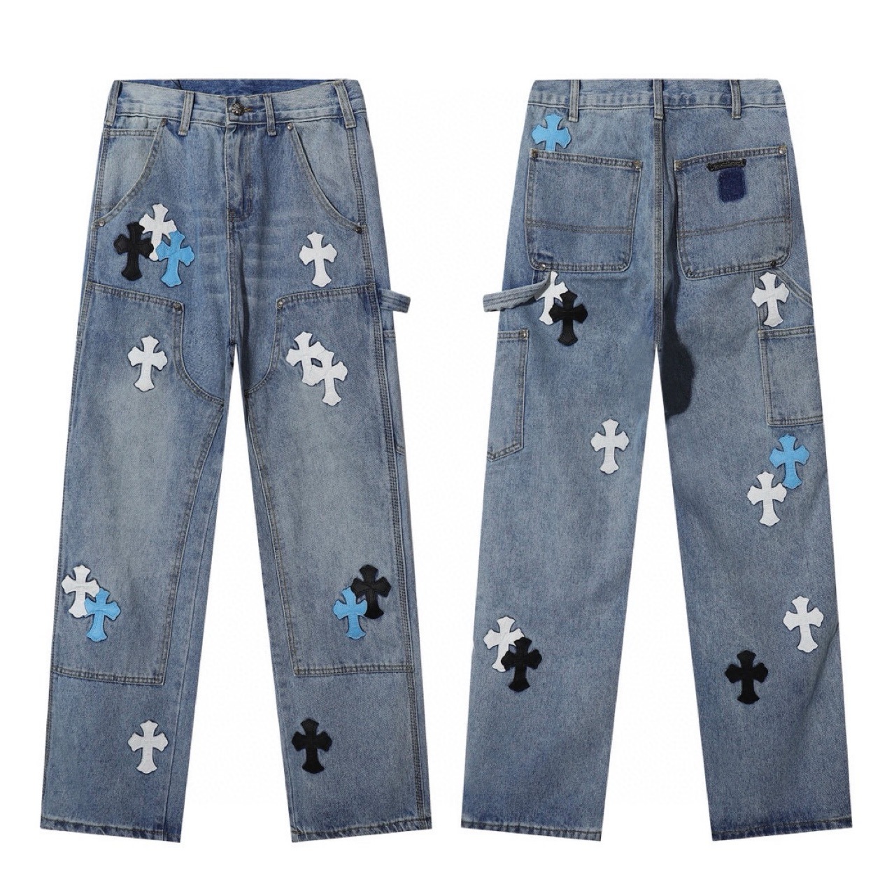 크로우 가을과 겨울 삼색 크로스 가죽 데님 툴링 로깅 소년의 부드러운 청바지 SJF스토어 가기