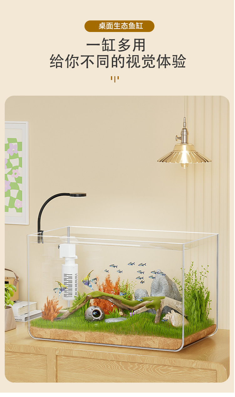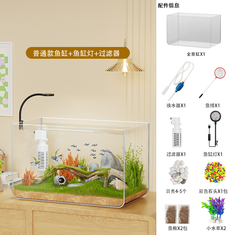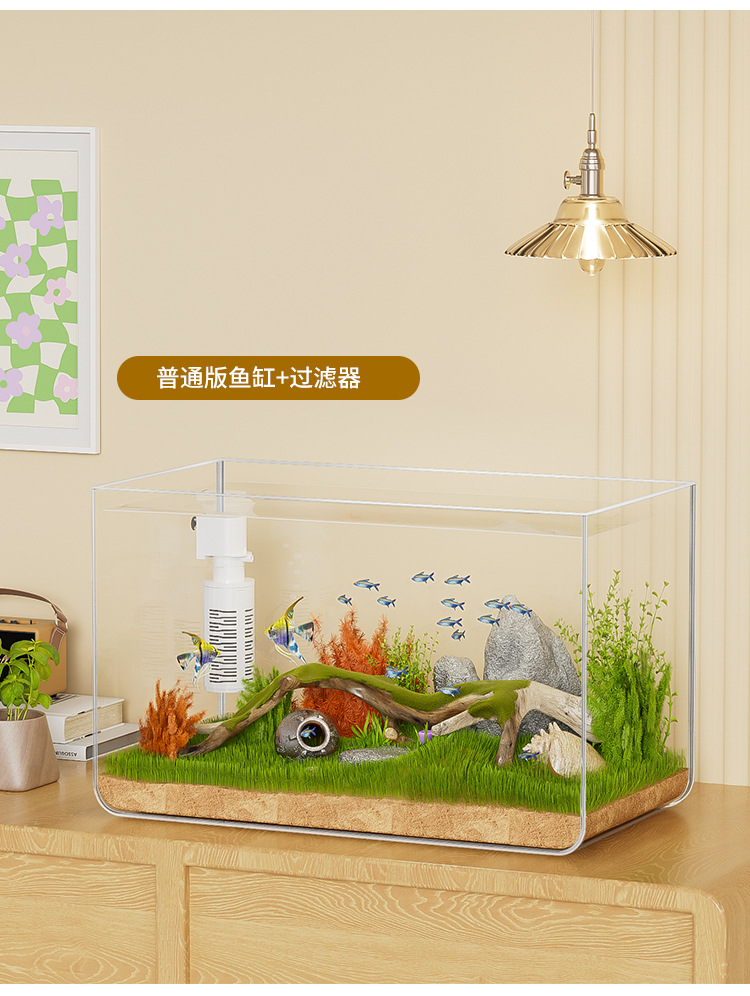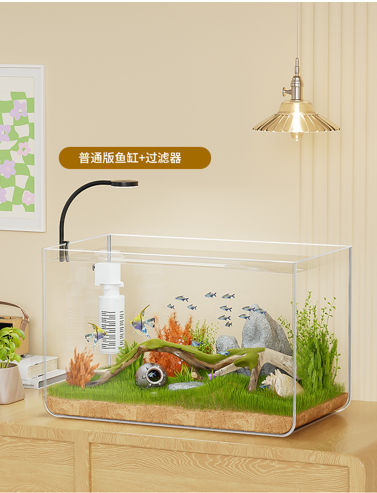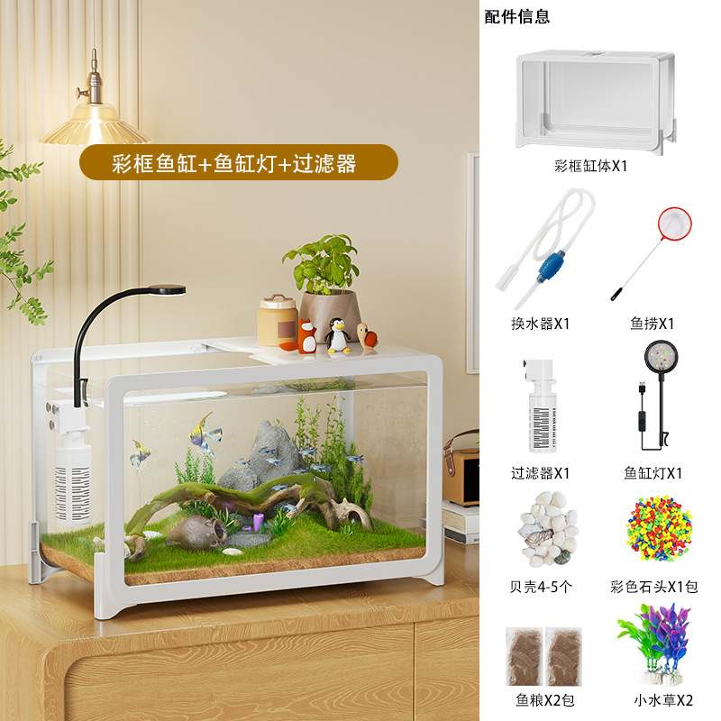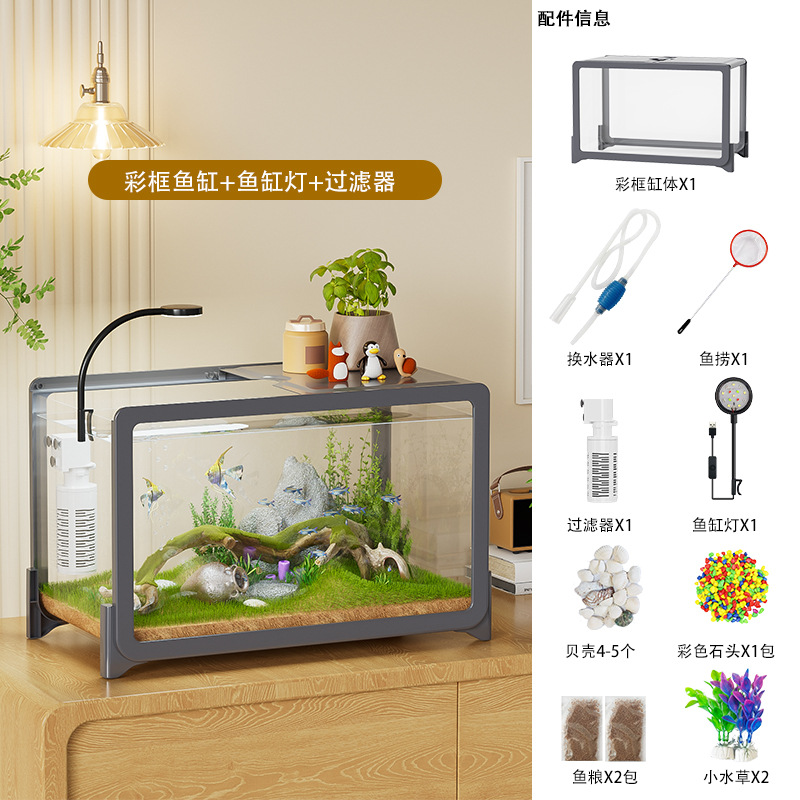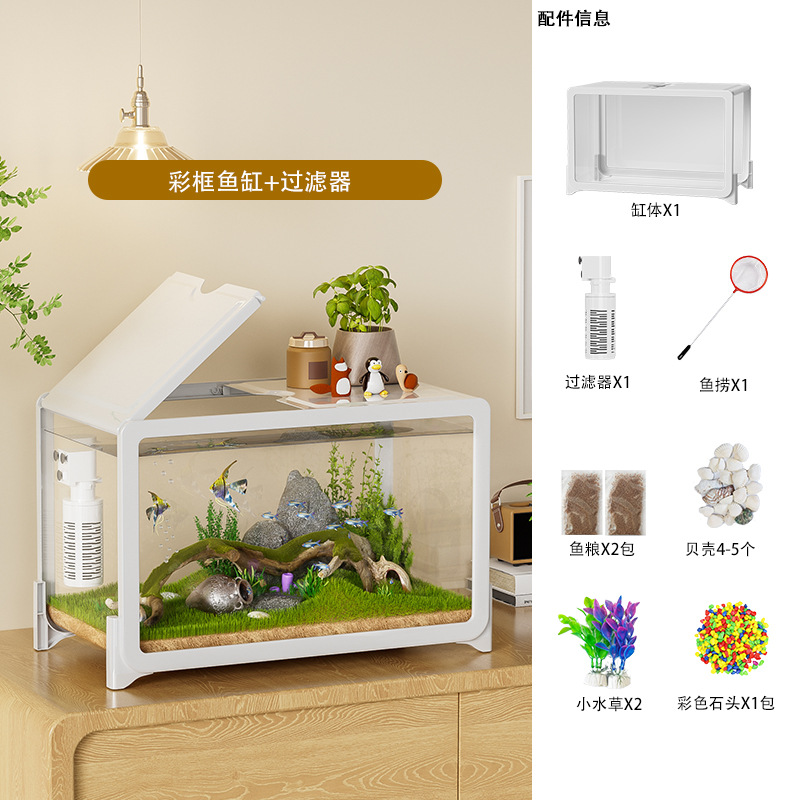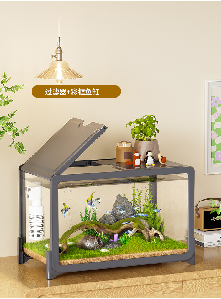 물고기 탱크 작은 거실 생태 조경 데스크탑 작은 물고기 탱크 필터 산소 통합 수족관 거북이 실린더 헤드스토어 가기