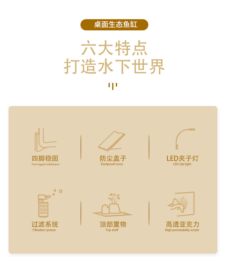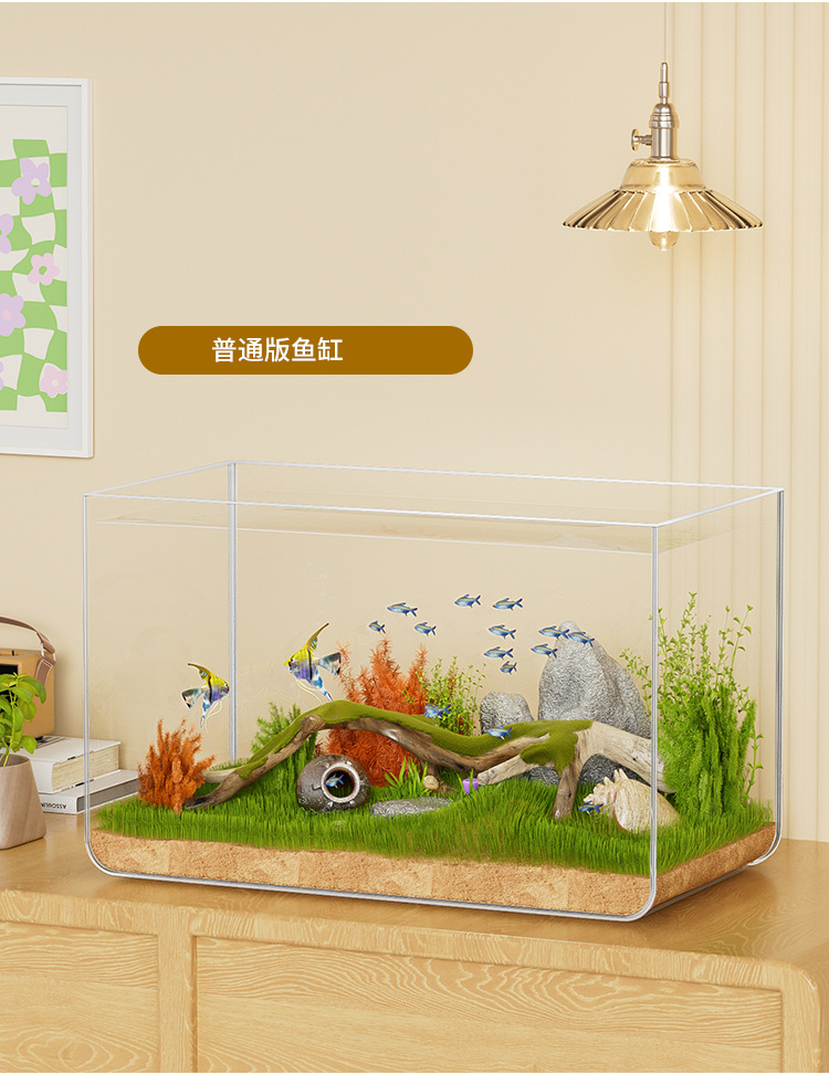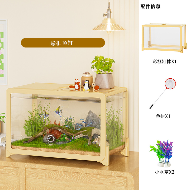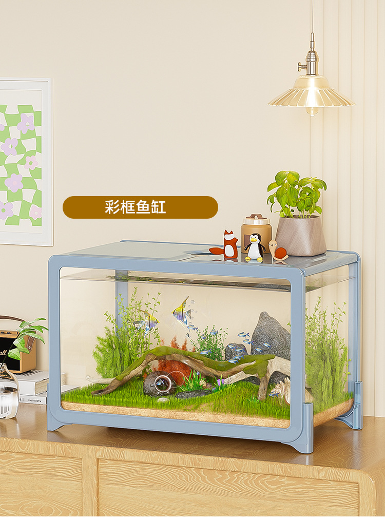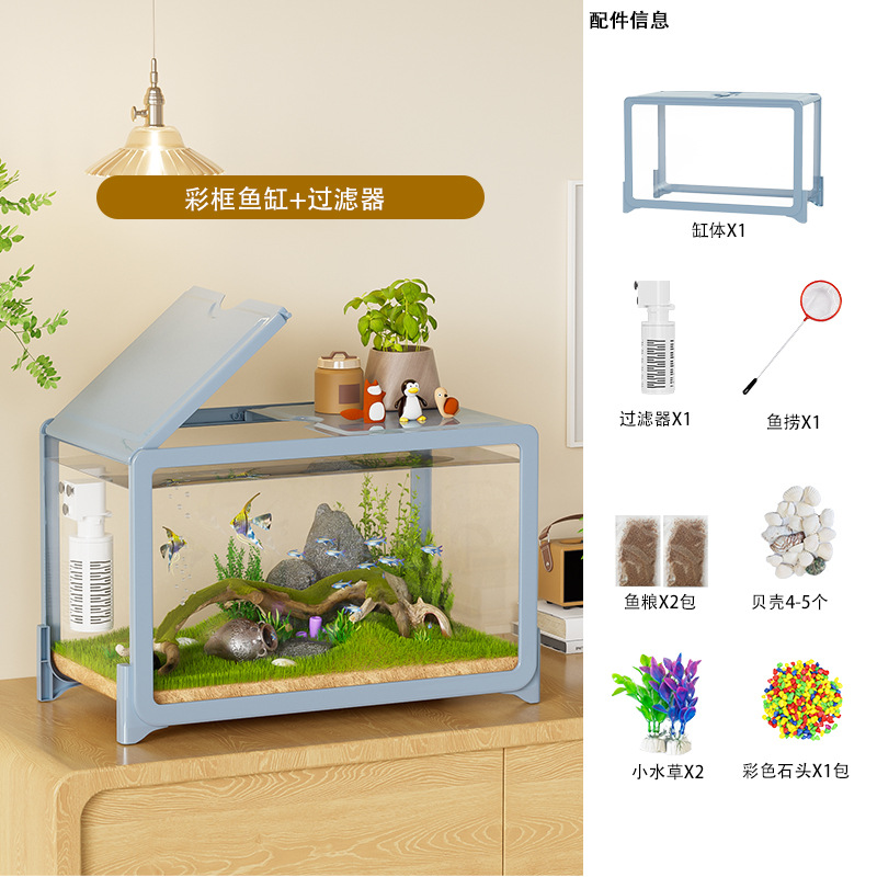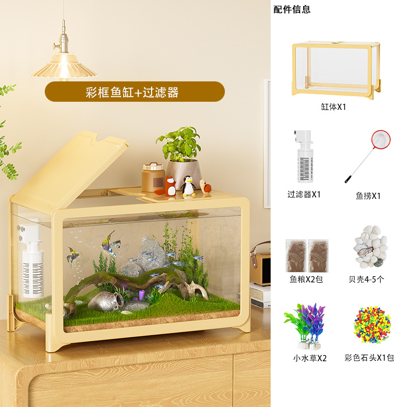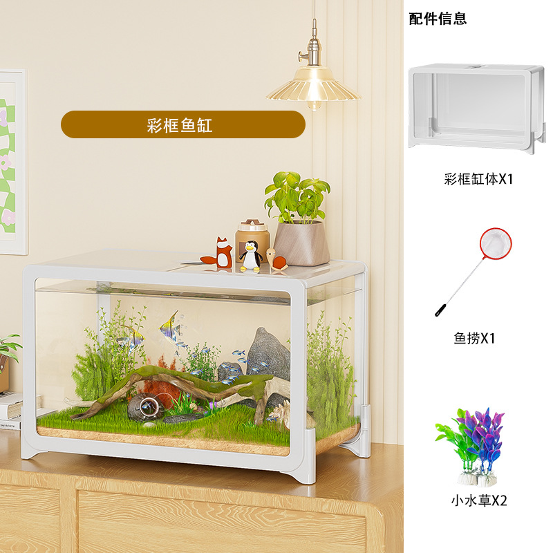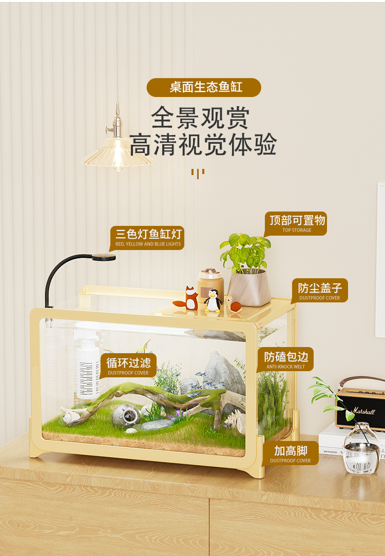 물고기 탱크 작은 거실 생태 조경 데스크탑 작은 물고기 탱크 필터 산소 통합 수족관 거북이 실린더 헤드스토어 가기