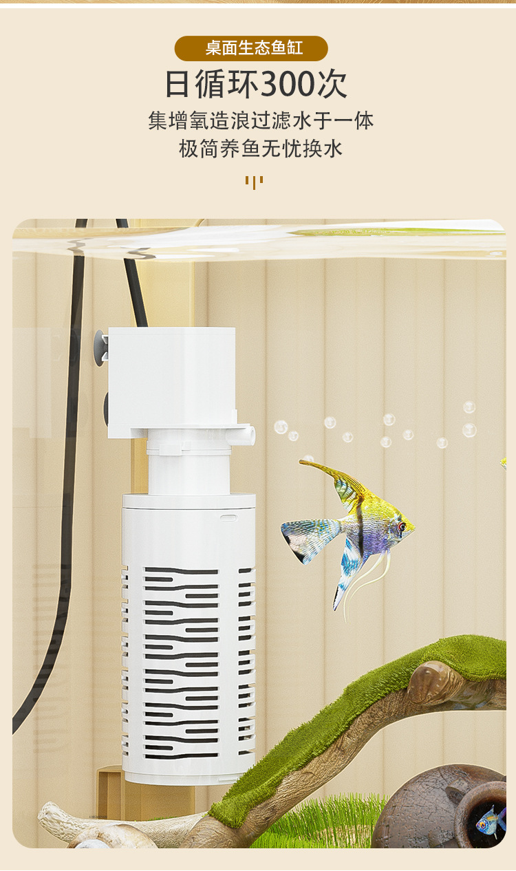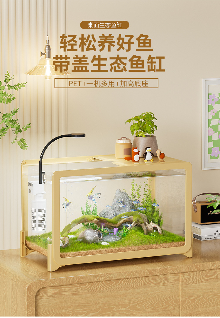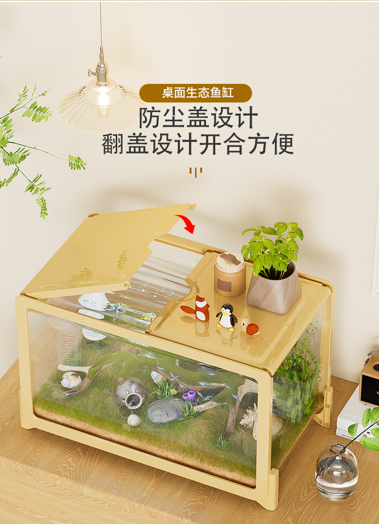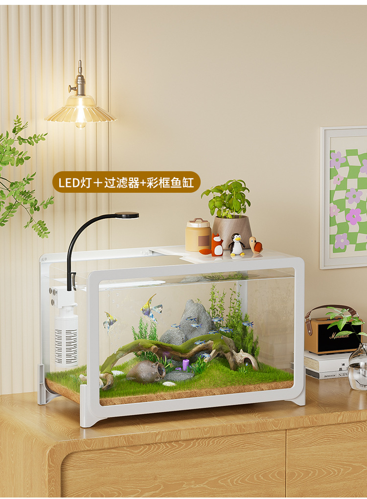 물고기 탱크 작은 거실 생태 조경 데스크탑 작은 물고기 탱크 필터 산소 통합 수족관 거북이 실린더 헤드