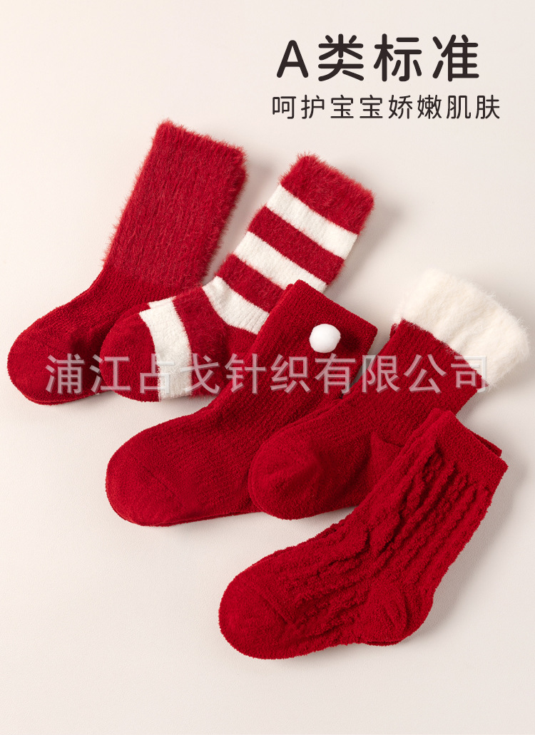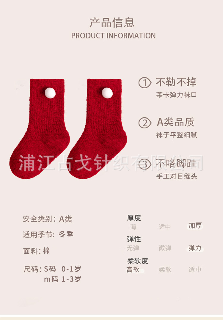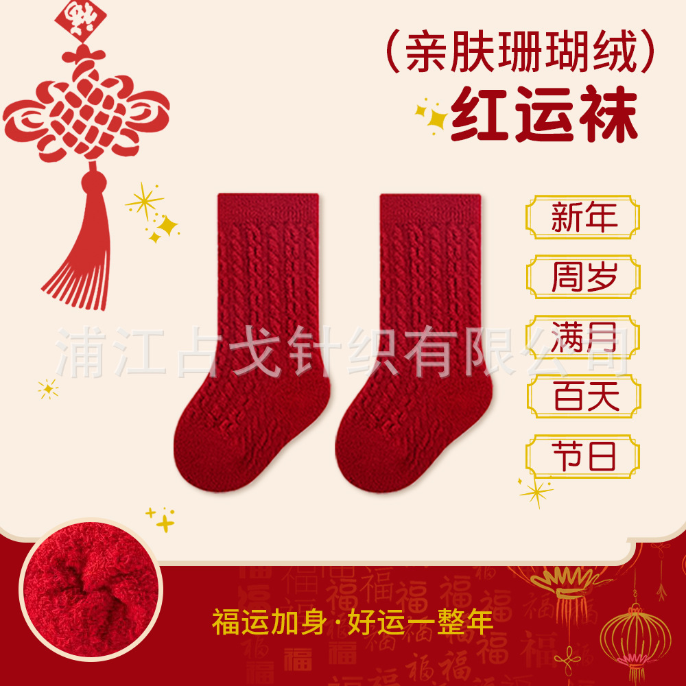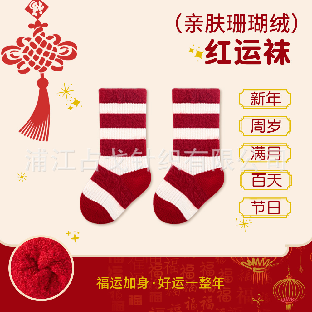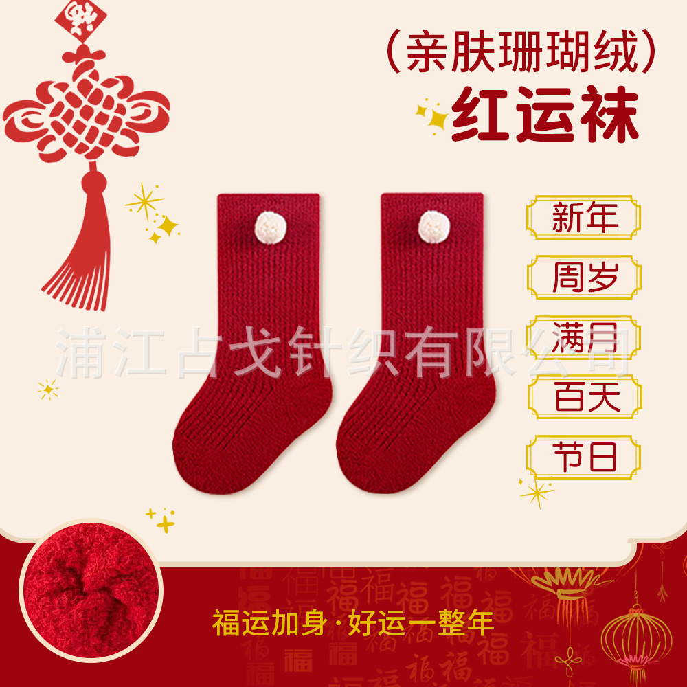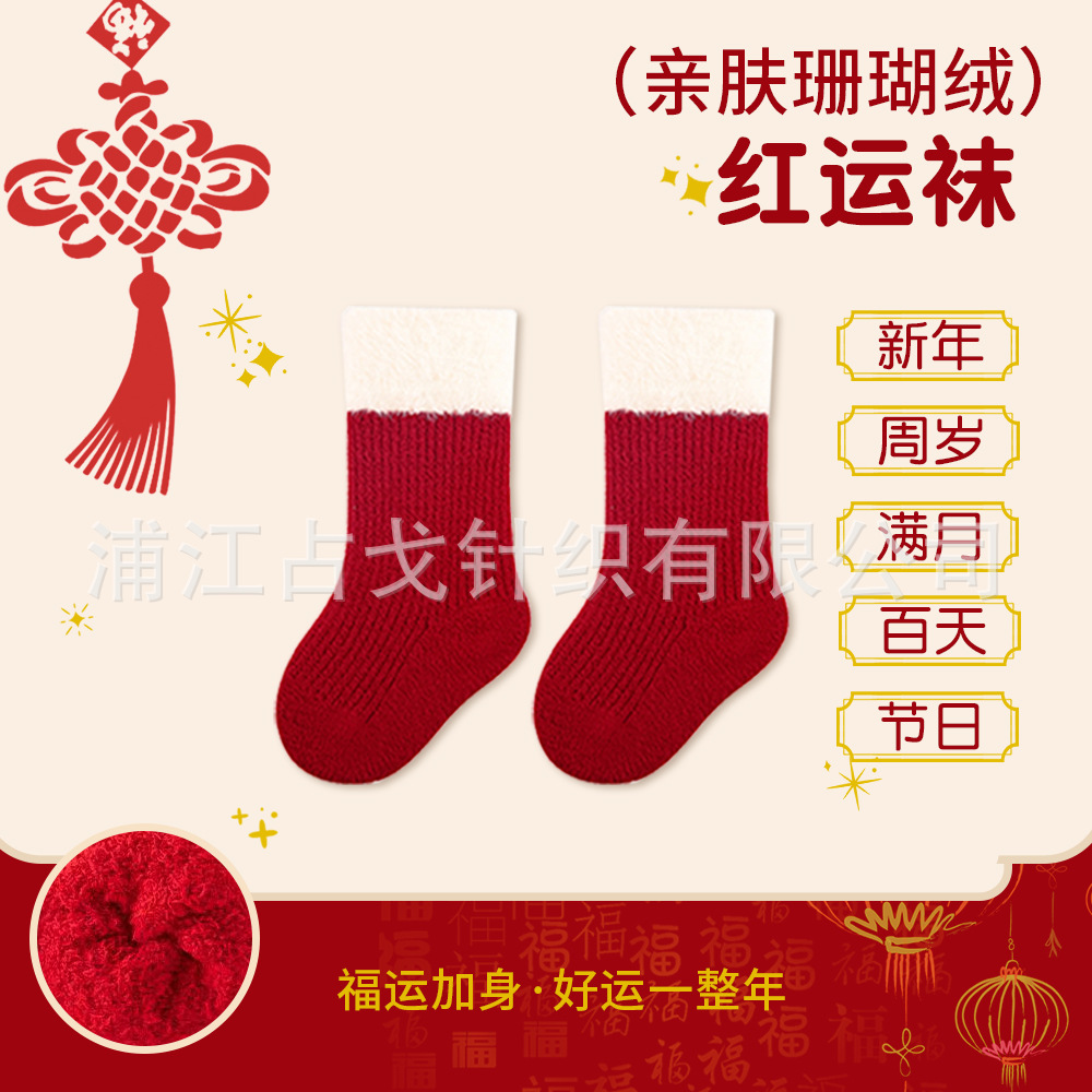 가을 겨울 신생아 보름달 기모 붉은 양말에 두꺼운 아기 양말