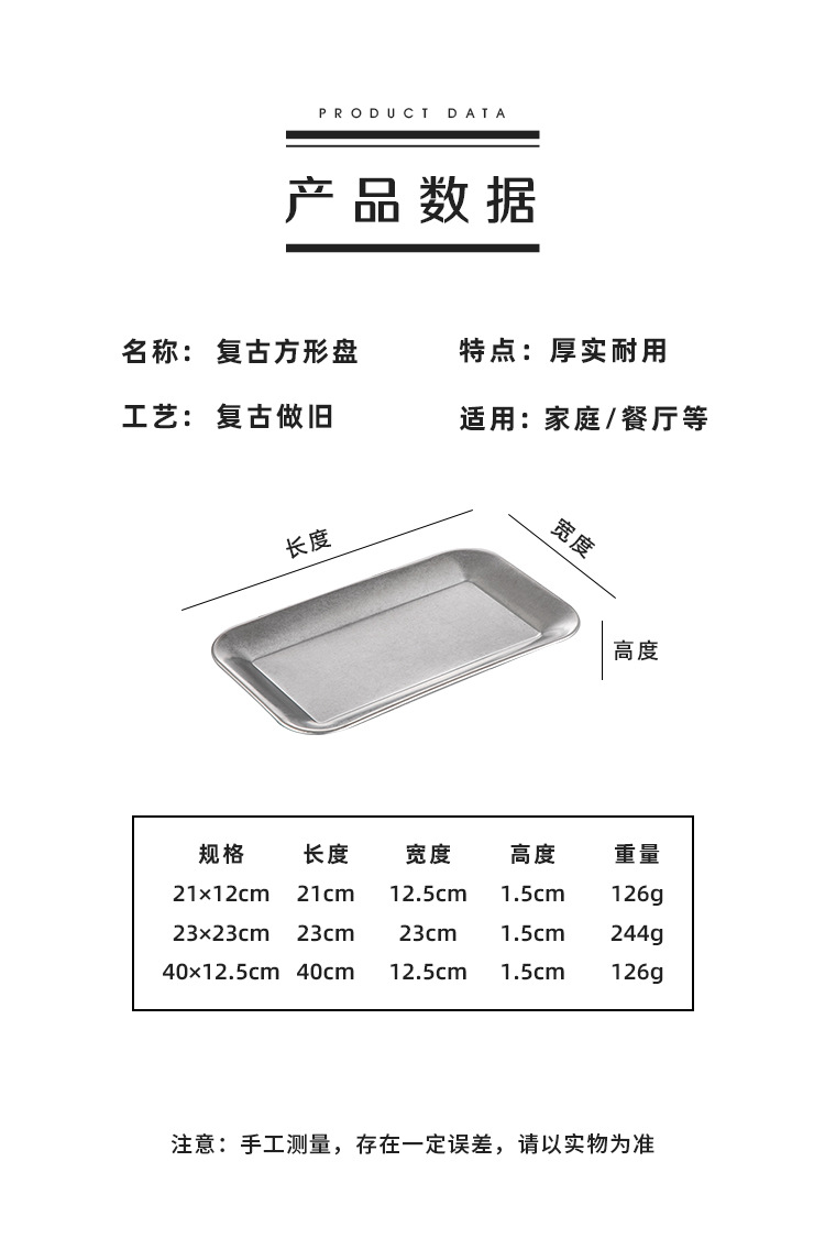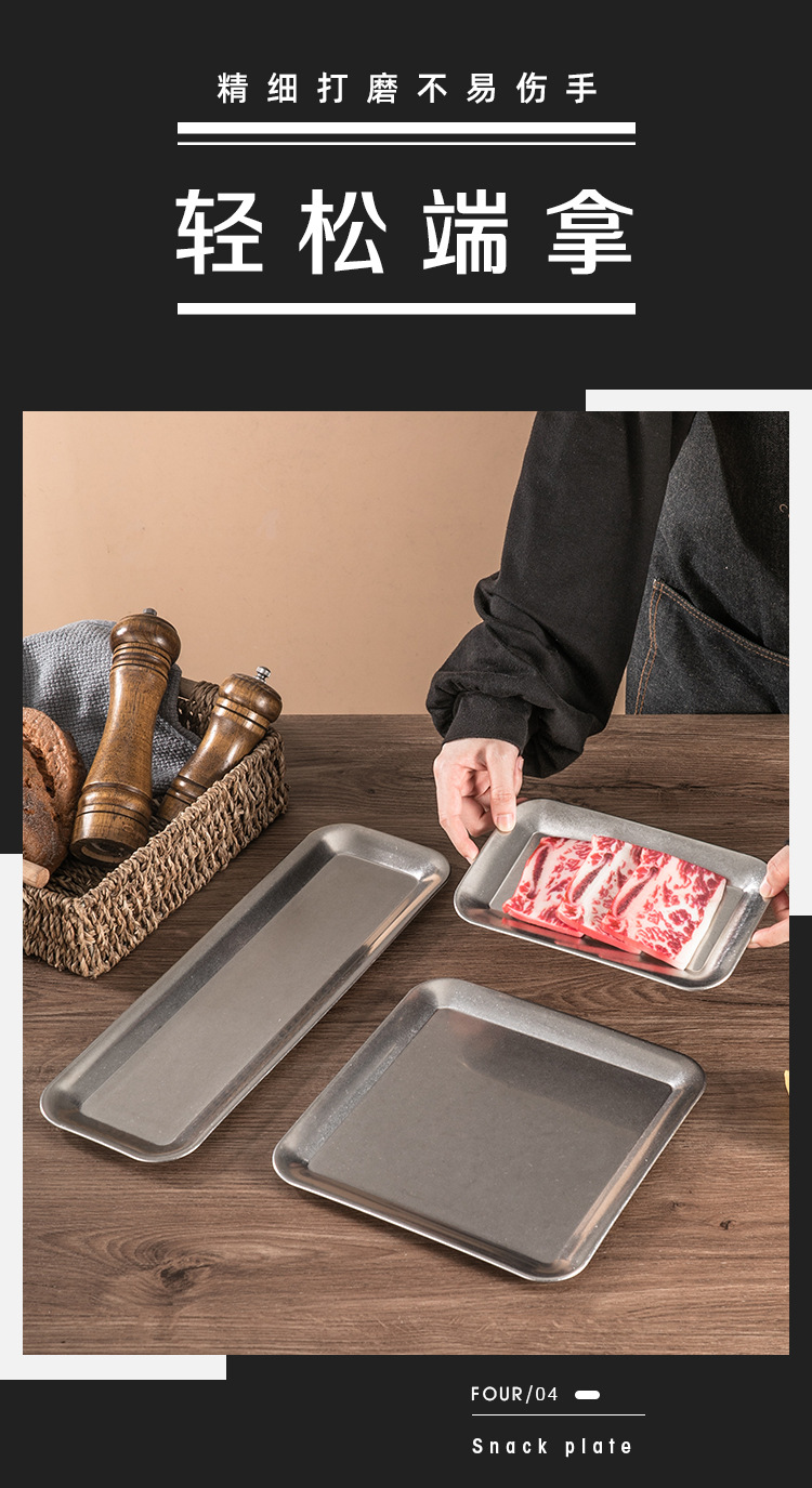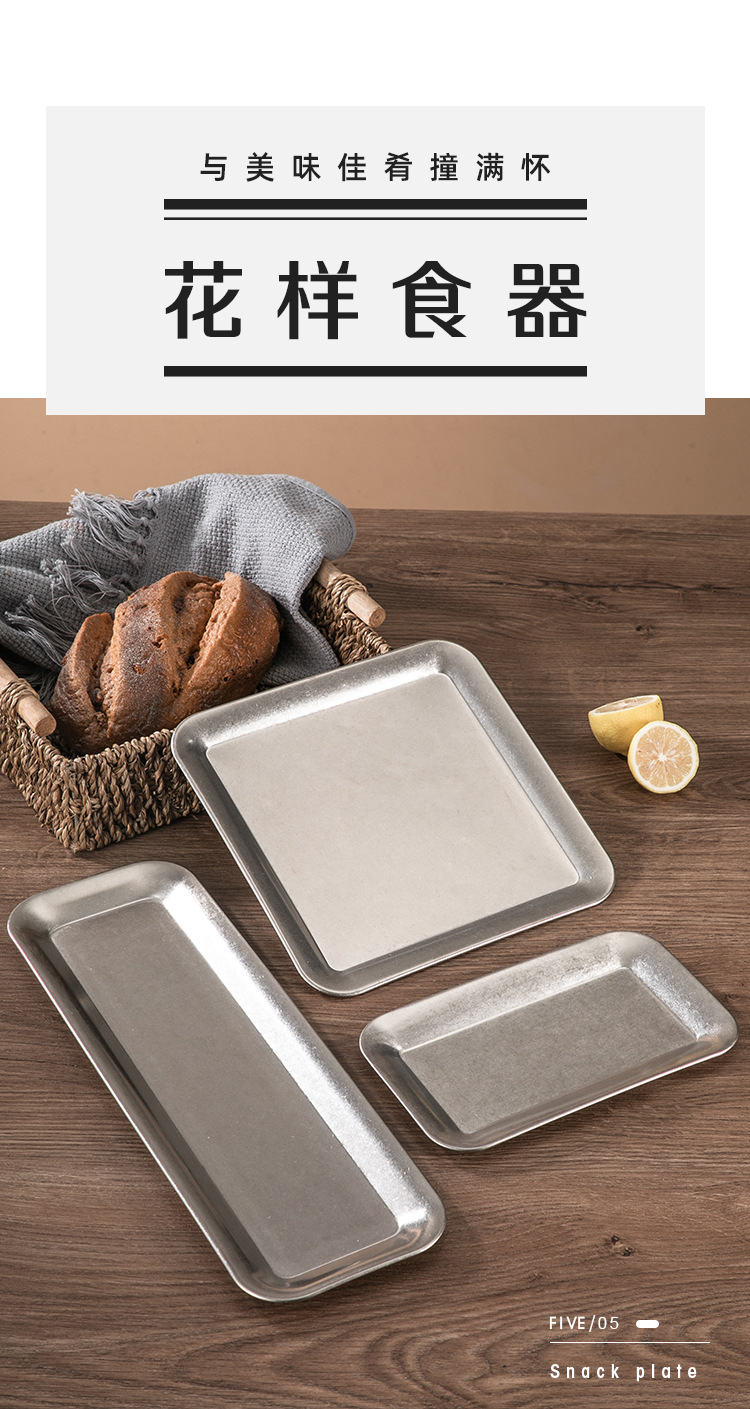 레트로 일본식 스테인레스 스틸 플레이트 만들기 오래된 향수 스낵 플레이트 직사각형 딤트레이 바베큐 플레이트 콜드 야채 플레이트스토어 가기
