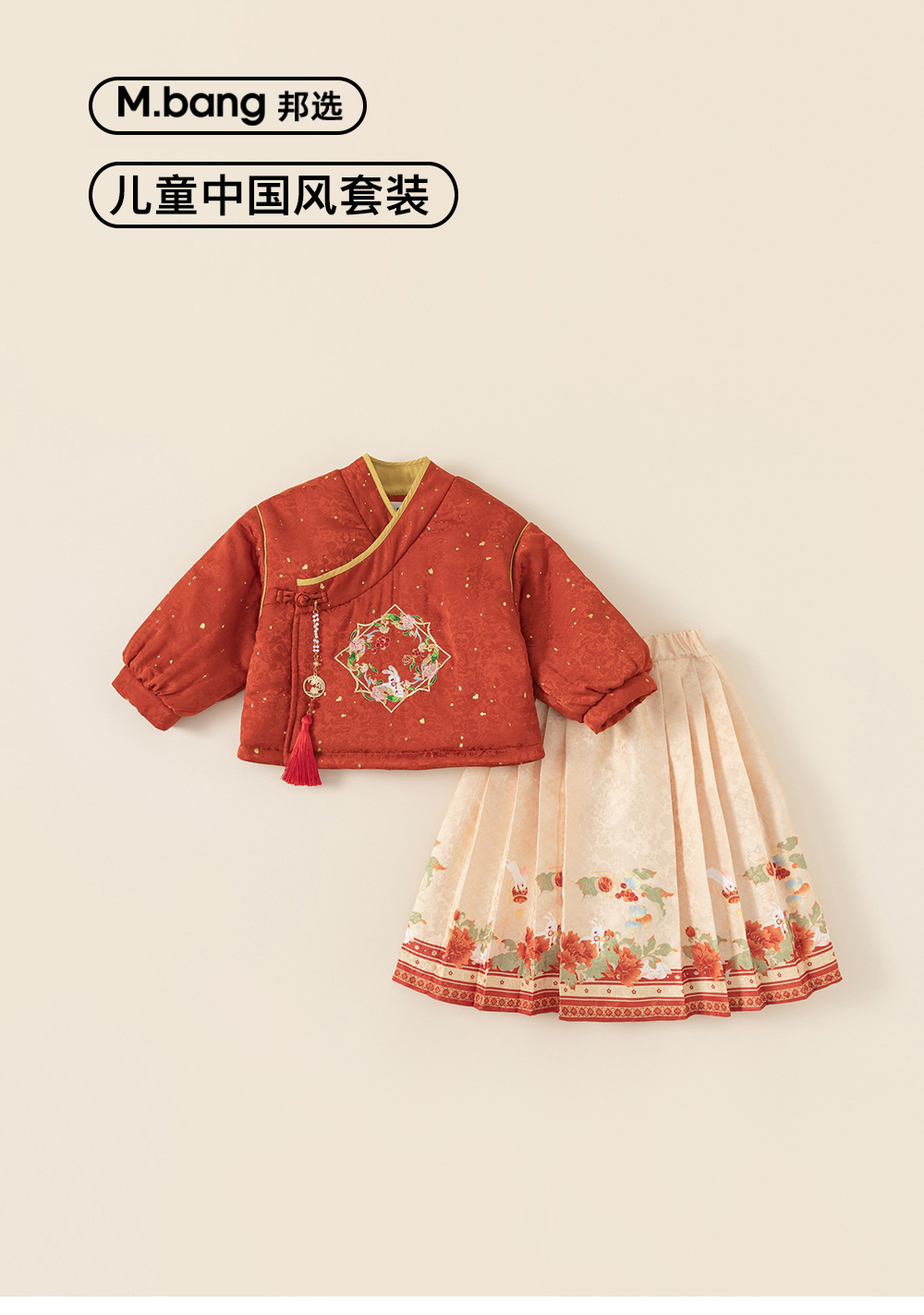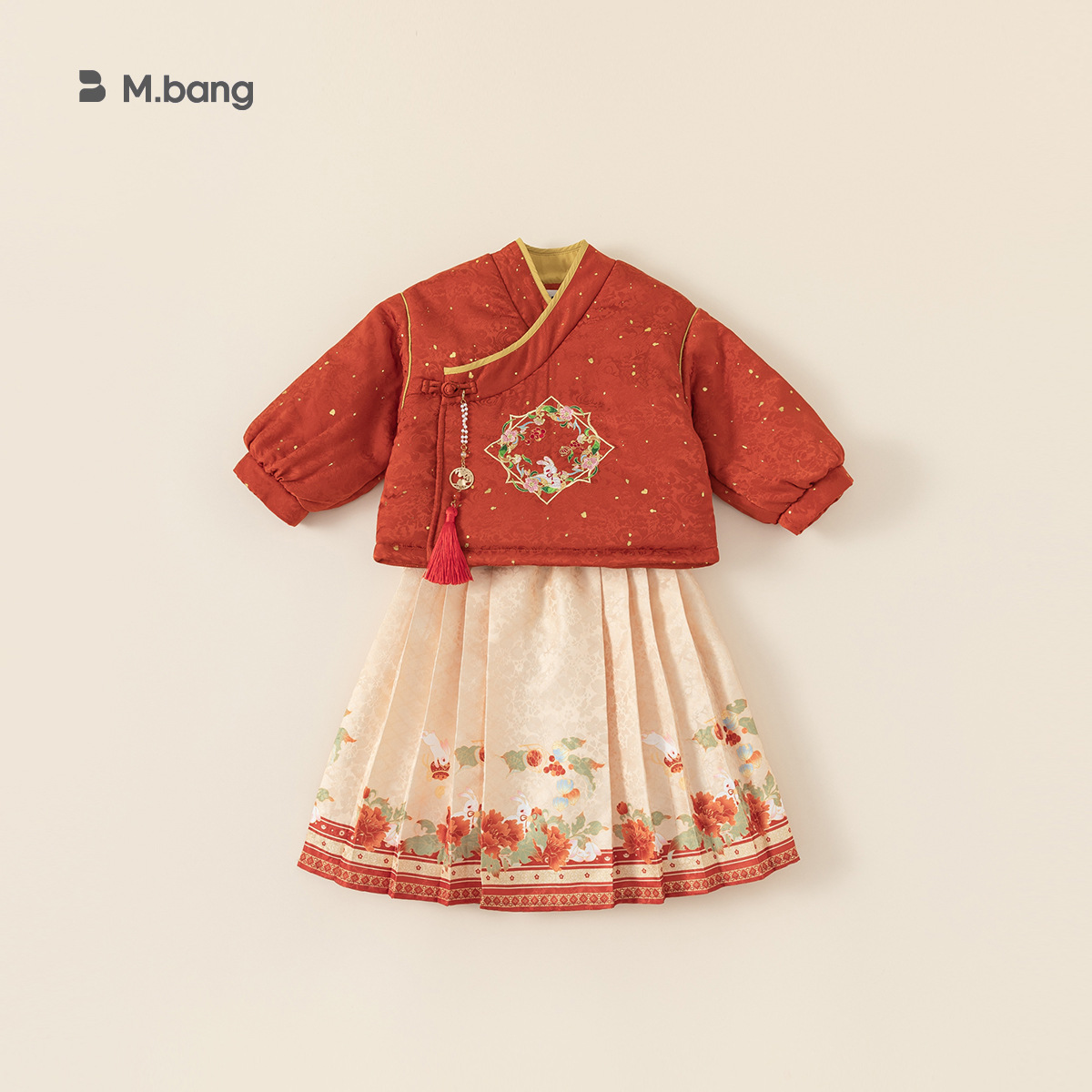 봉 선정 된 아기 소녀 한푸 세트 중국 스타일 버클 코튼 재킷 새해 인사 원피스 소녀 말 얼굴 원피스 신년 2 피스 세트