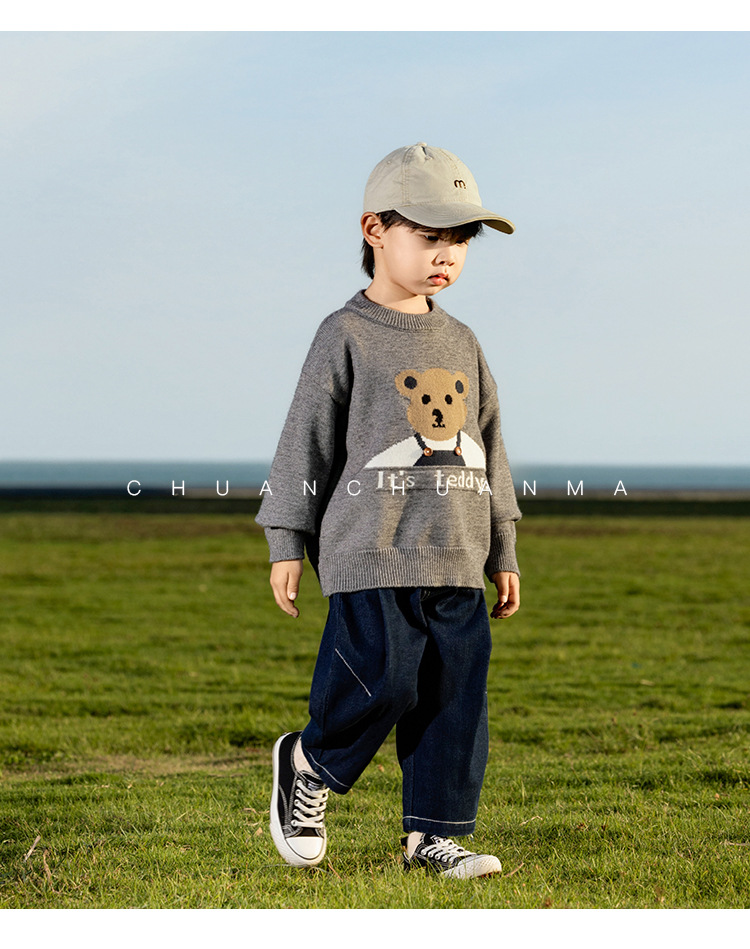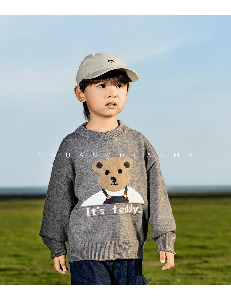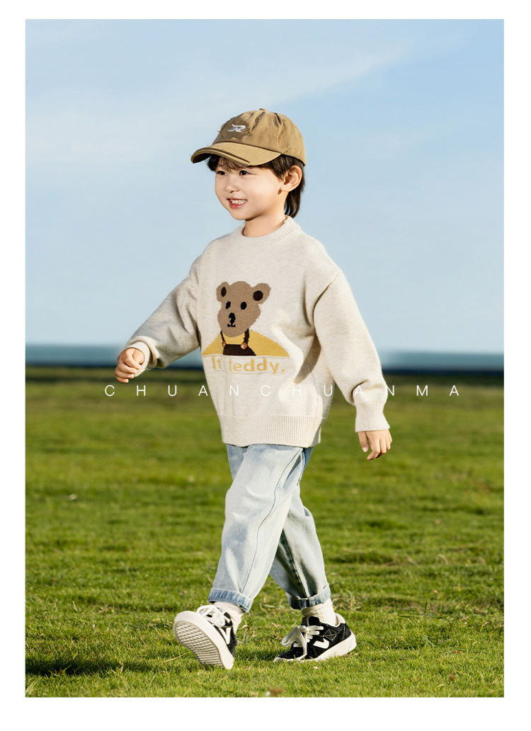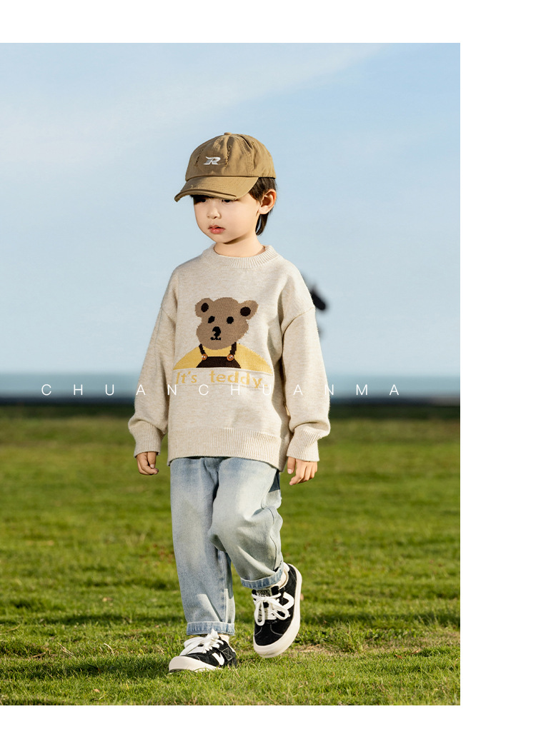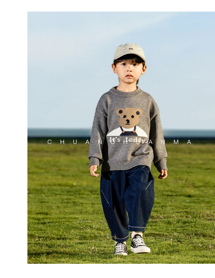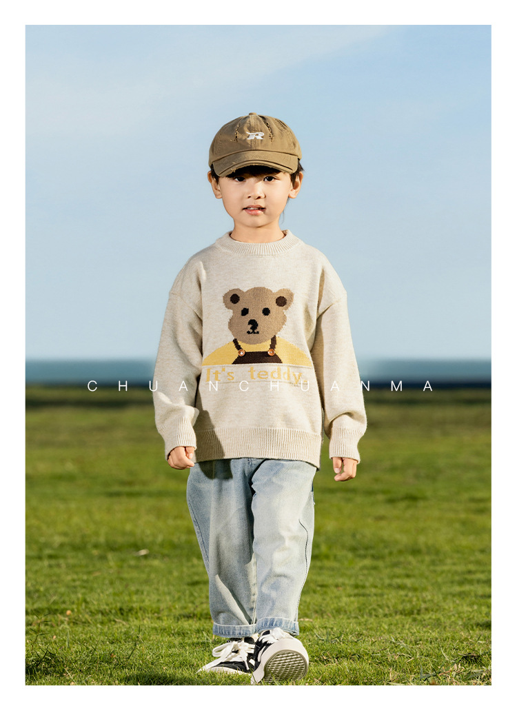 바람의 계곡 2025 봄 새 아동복 어린이 한국식 곰 스웨터 소년과 소녀의 봄과 가을 자카드 스웨터 트렌디스토어 가기