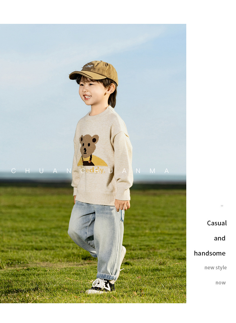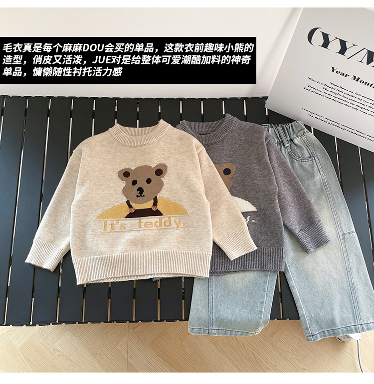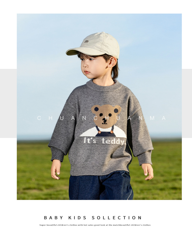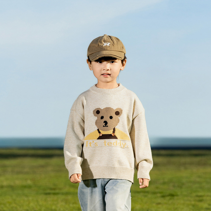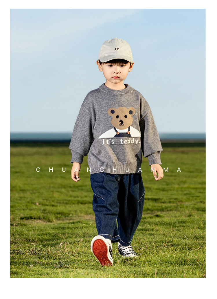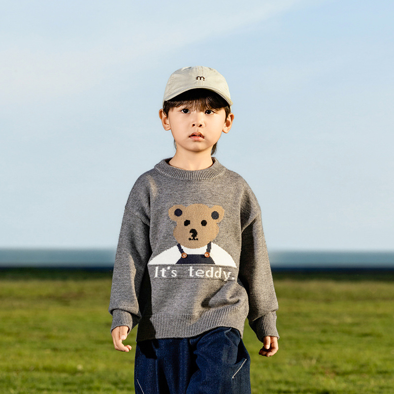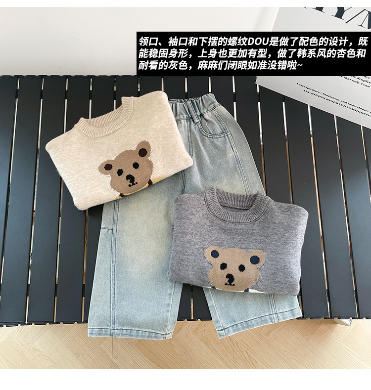 바람의 계곡 2025 봄 새 아동복 어린이 한국식 곰 스웨터 소년과 소녀의 봄과 가을 자카드 스웨터 트렌디스토어 가기