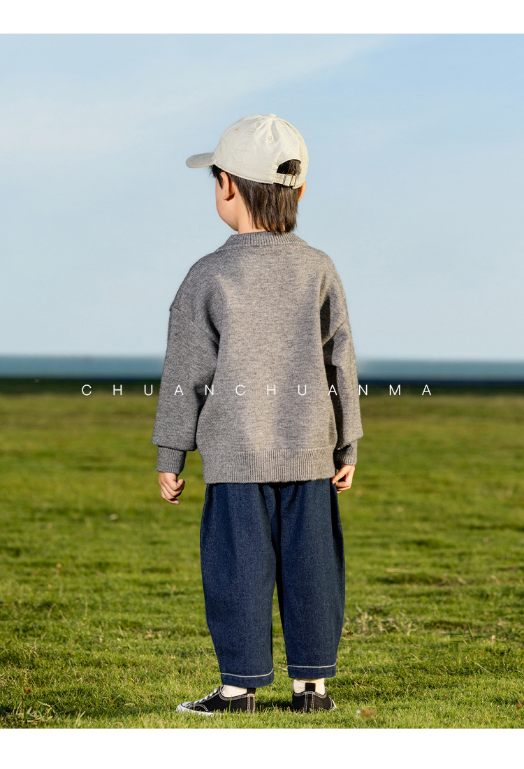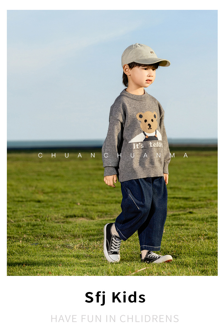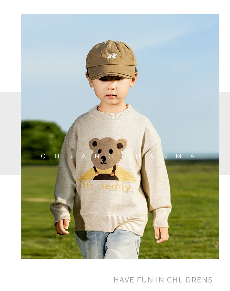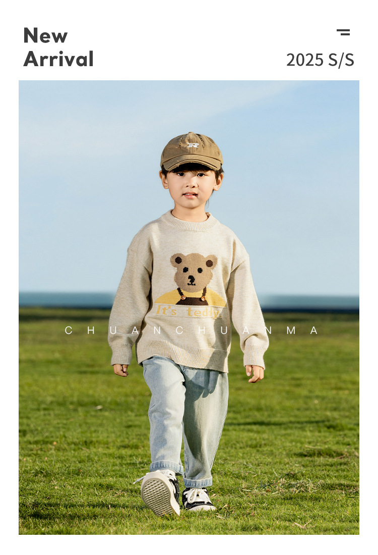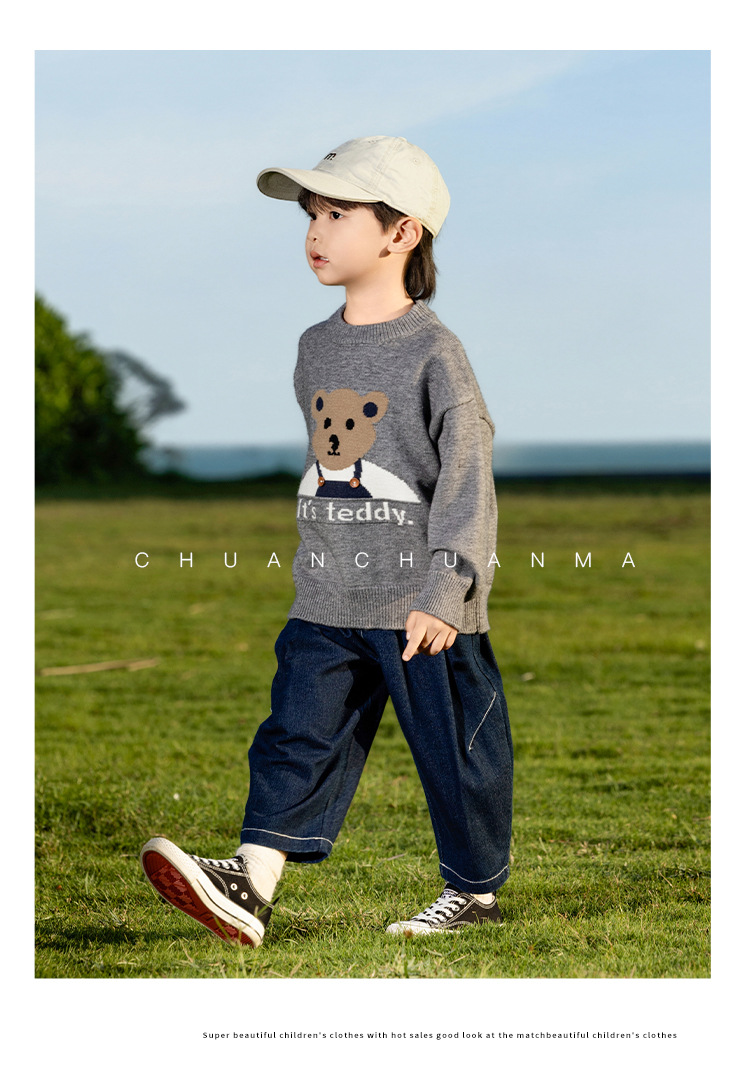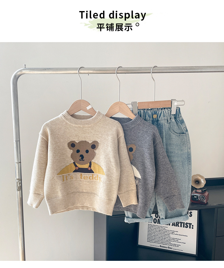 바람의 계곡 2025 봄 새 아동복 어린이 한국식 곰 스웨터 소년과 소녀의 봄과 가을 자카드 스웨터 트렌디스토어 가기